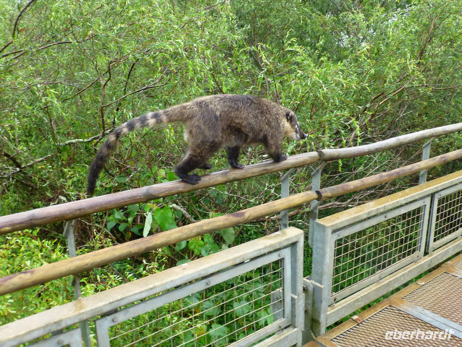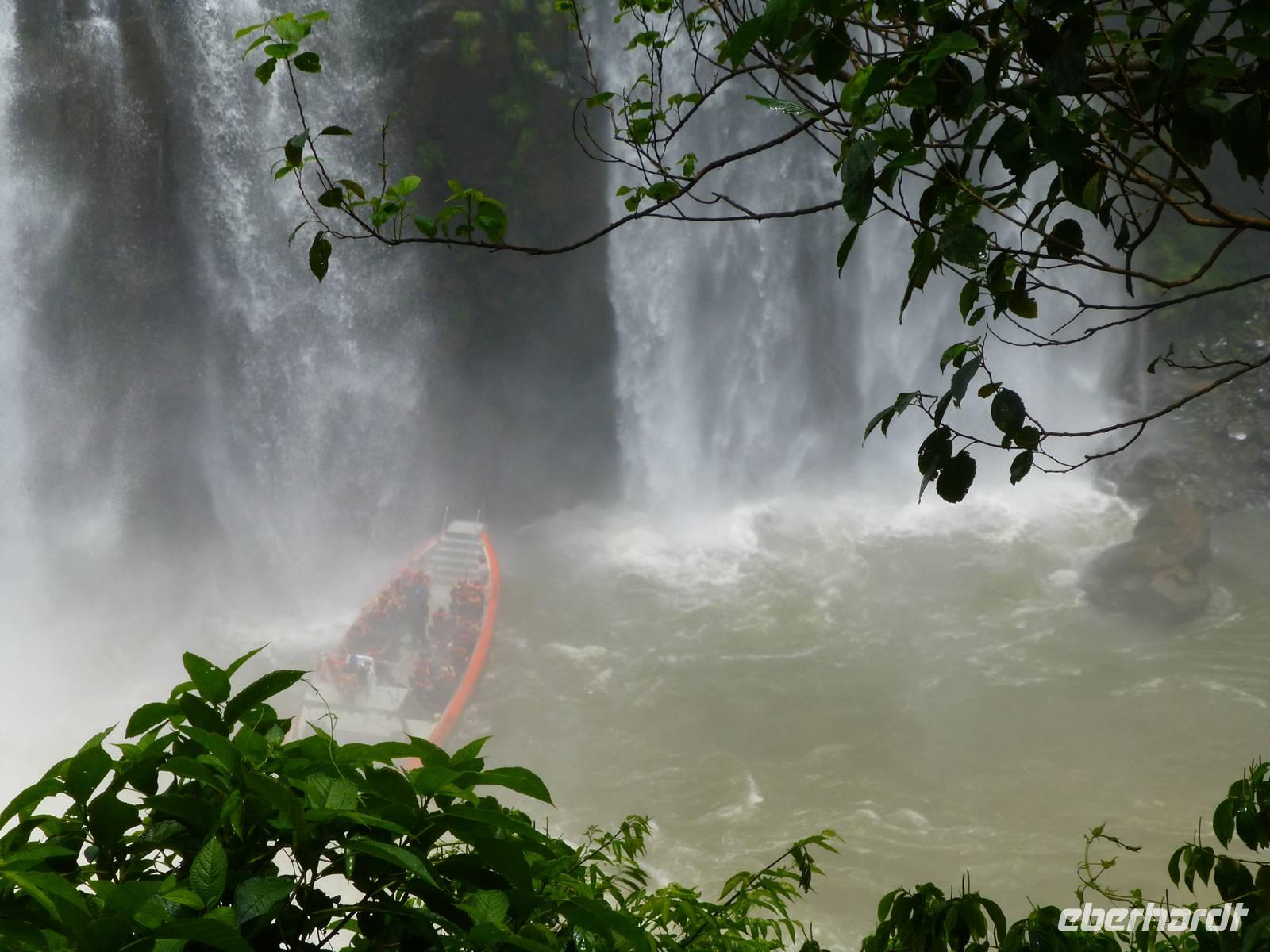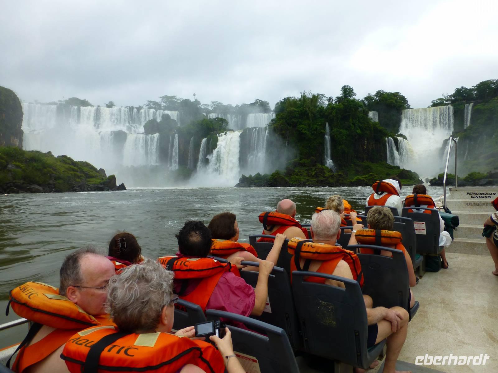 Heute fahren wir mit dem Bus zur argentinischen Landesgrenze. Zur Begrüßung gibt es erstmal einen kräftigen Regenschauer mit Blitz und Donner. Zum Glück lässt der Regen bald nach, so dass wir noch einmal tolle Eindrücke von den gewaltigen Wasserfällen bekommen. Mit der kleinen Bahn fahren wir durch den Regenwald und begeben uns anschließend auf einen Spaziergang über Brücken und Stege über den Paraná-Fluss. Am Ende stehen wir genau über der Kante, wo die Wassermassen mit viel Getöse in die Tiefe stürzen. Der Anblick dieser Naturgewalt ist einfach beeindruckend! Beim nächsten Rundgang haben wir einen Ausblick auf fast die gesamte Breite der Fälle und es bieten sich unendlich viele Fotomotive - neben der grandiosen Landschaft stehen uns auch Nasenbären und Tucane Porträt. Etwas abenteuerlich geht es für einen Teil der Gruppe weiter - per Boot kommen wir den Wassermassen ganz nah! Eine Dusche ist dabei vorprogrammiert! Mit einem Geländewagen fahren wir schließlich durch den herrlich grünen Regenwald zum Restaurant, wo wir unser Mittagessen genießen. Nun können wir sagen, dass wir die Iguazú-Wasserfälle wirklich aus jeder Perspektive gesehen haben! Es waren unvergessliche Eindrücke!