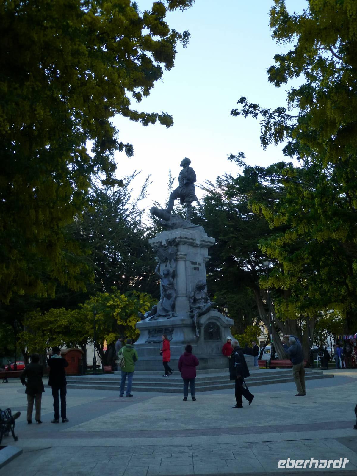 Am Morgen fahren wir in die Magellanstraße ein, die uns endlich Windschutz und ruhigere See beschert. Endlich Land in Sicht! Bei dem Lektorenvortrag erfahren wir bereits viel Wissenswertes über Chile und den bevorstehenden Hafen Punta Arenas. Nach dem Mittagessen kann man sich bei Sonnenschein und 7° C warm eingepackt auf dem Pooldeck die Seeluft um die Nase wehen lassen oder Karten spielen oder in der Sauna entspannen oder oder oder. Ein bisschen Zeit konnten wir doch aufholen und legen etwas früher als geplant in Punta Arenas an. Nun haben wir wieder festen Boden unter den Füßen und nutzen diese Gelegenheit gleich für eine abendliche Stippvisite der Innenstadt von Punta Arenas.