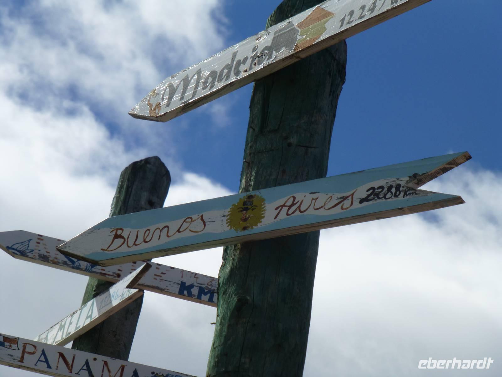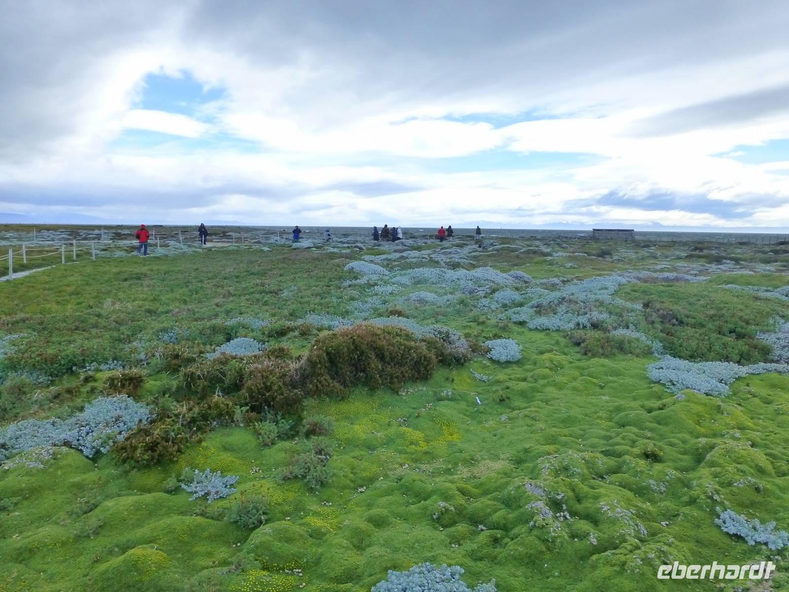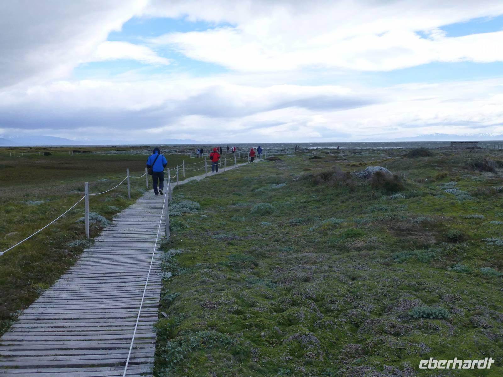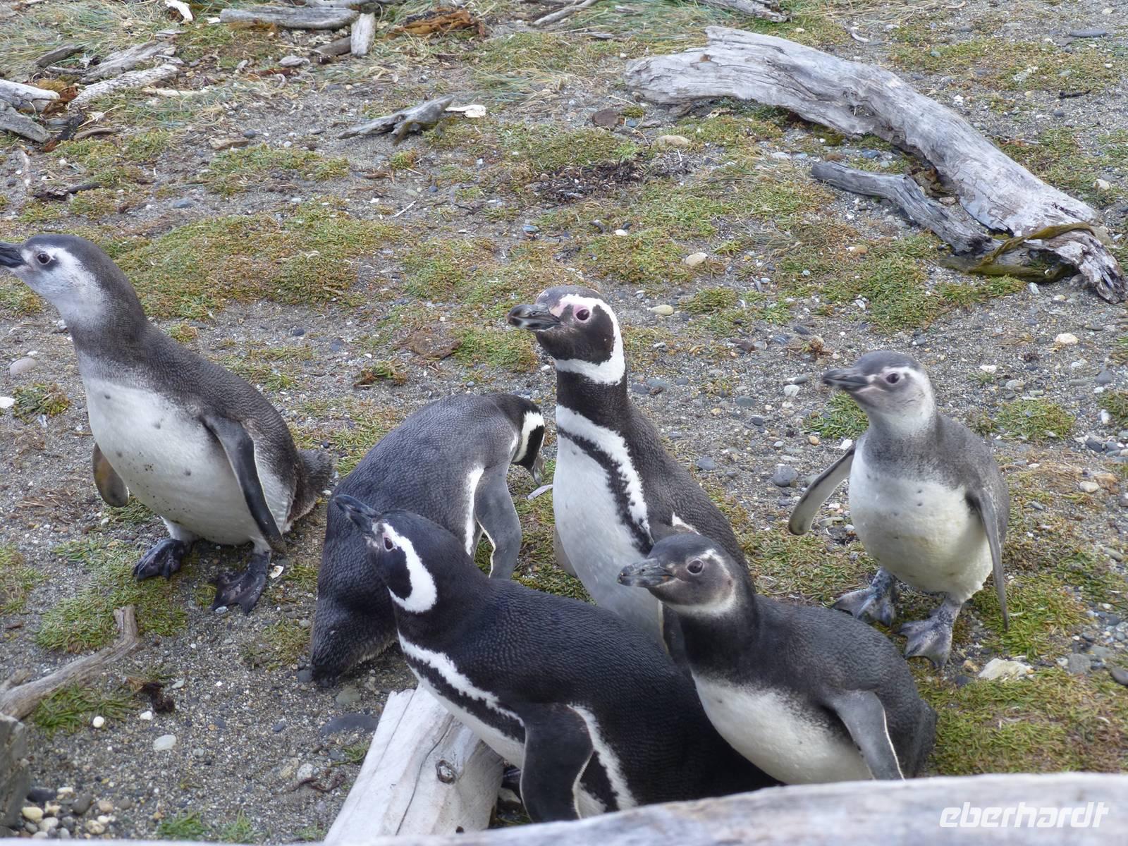 Noch ein Höhepunkt steht uns anschließend bevor - über eine Schotterpiste fahren wir durch die patagonische Steppe zum Seno Otway, wo wir die Bewohner des Strandabschnittes besuchen - die possierlichen Magellan-Pinguine. Ein kräftiger Wind weht uns um die Ohren, aber wir bahnen uns den Weg bis zum Strand, wo uns die putzigen "Frack-Träger" erwarten und uns Porträt stehen.