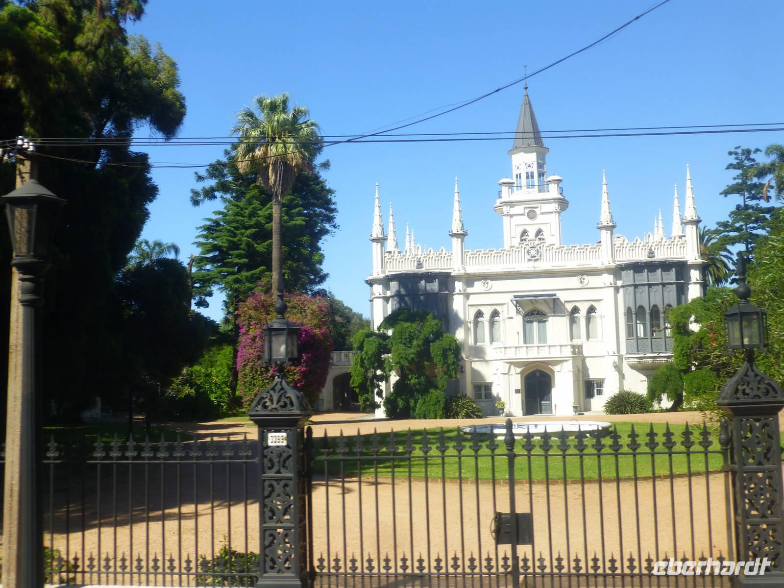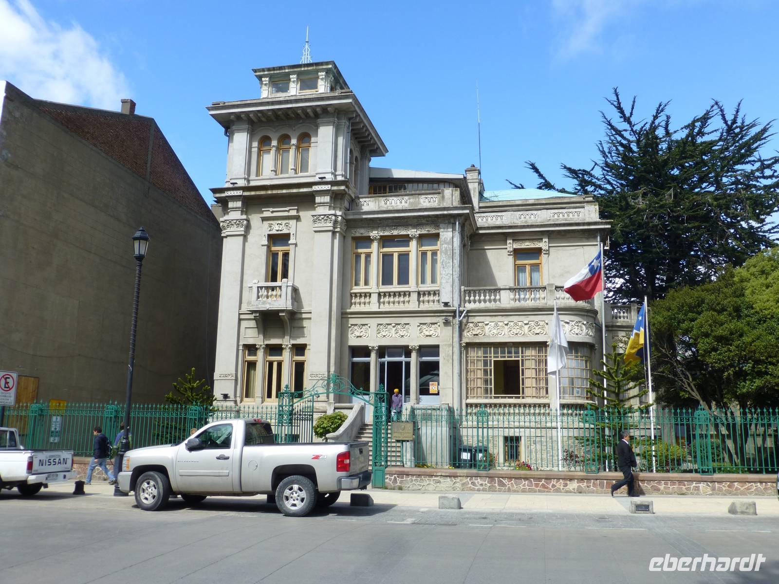 Im Hafen von Punta Arenas erwartet uns unsere Reiseleiterin Tatiana. Punta Arenas ist in erster Linie Versorgungshafen für die Antarktis-Schiffe und die Marine. Unser erstes Ziel ist der wohl schönste Friedhof Südamerikas, wo über 100 Jahre alte Zypressen die Wege zwischen den prächtigen Mausoleen und Gräbern zieren. Besonders hübsch ist das große Mausoleum mit der Engels-Statue, das José Menendez gehört. Selbst im Tod zelebrieren die Schafsbarone ihren Reichtum! Wir staunen über das Grab „Deutsche Krankenkasse" und verharren am Denkmal des „unbekannten Indianers", welches mit zahlreichen Dankesnachrichten und künstlichen Blumen plakatiert ist. Nach einem Stopp beim Denkmal des Schäfers von Grimaldi, das als Symbol der Stadt gilt, fahren wir in die Innenstadt zum Plaza de Armas. Rundherum säumen die prächtigen Häuser der Schafbarone die Straßen und in der Mitte des Platzes wurde zum 400jährigen Jubiläum den Indianern und Magellan ein Denkmal gesetzt. Es heißt, wenn man den Fuß des Indianers küsst, kommt man zurück nach Patagonien. Wer hat es wohl probiert?? Im edlen Wintergarten des "Palacio Sara Braun" essen wir zu Mittag - ein wunderbares, herrschaftliches Ambiente! Auf Kosten von Eberhardt TRAVEL lade ich meine Gäste zum Pisco Sour ein, denn wir dürfen den chilenischen Boden auf keinen Fall verlassen, ohne das Nationalgetränk der Chilen wenigstens einmal probiert zu haben!