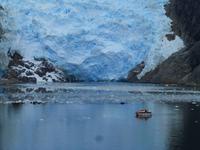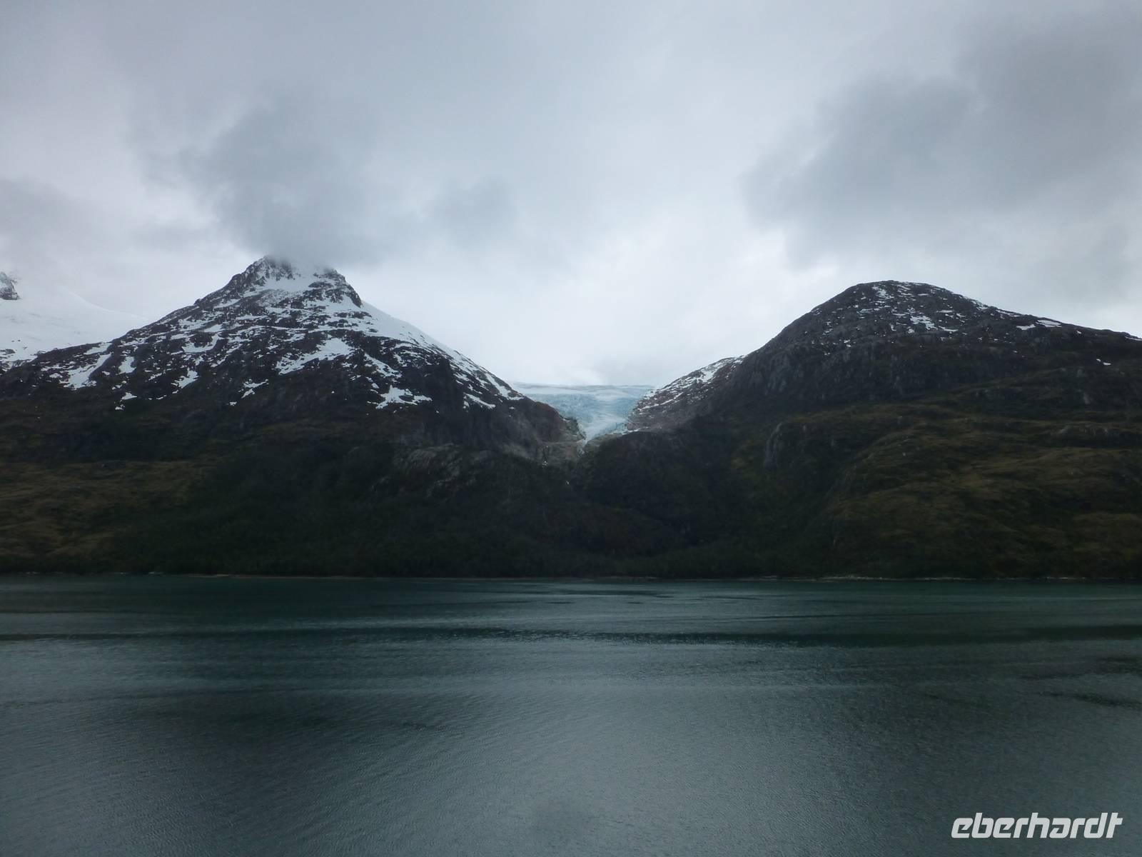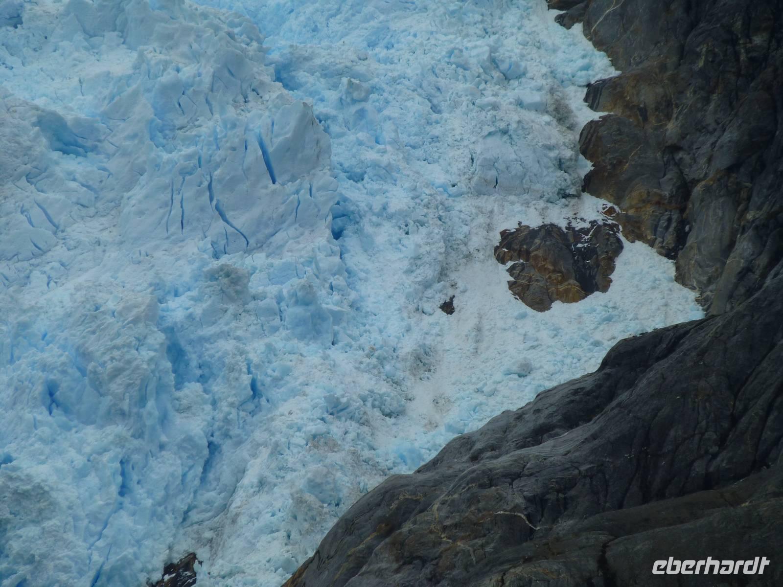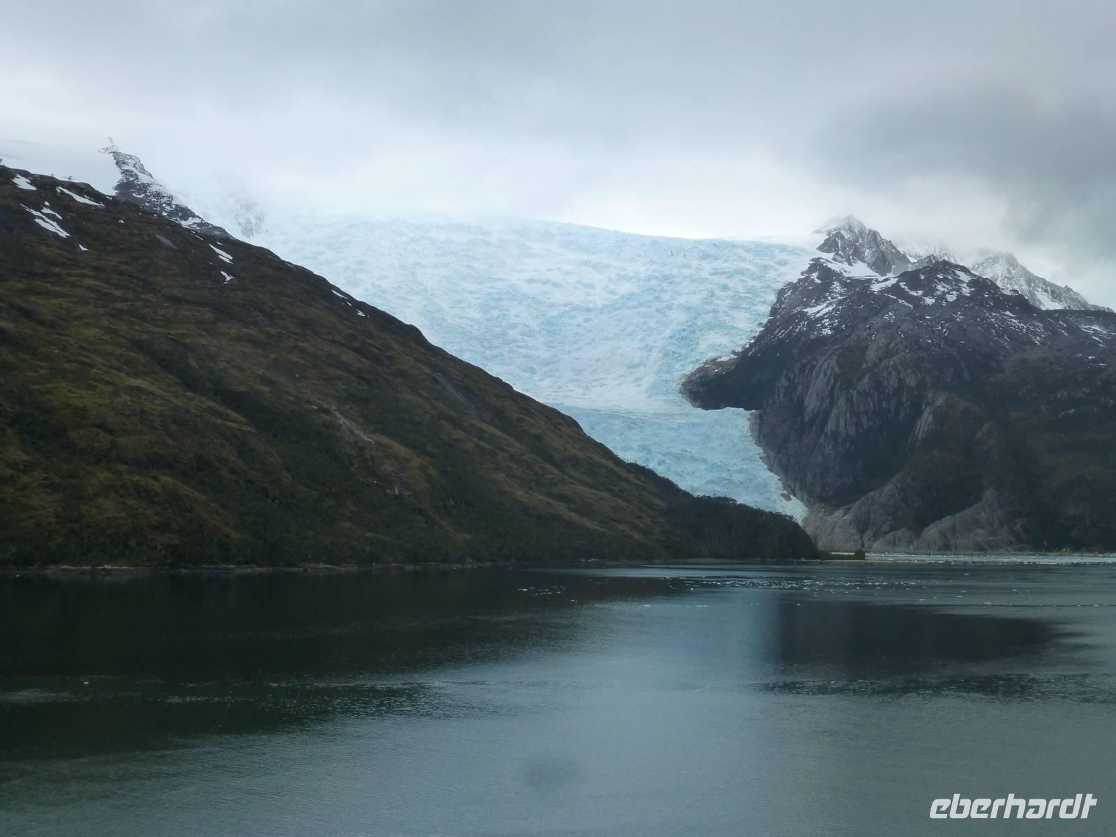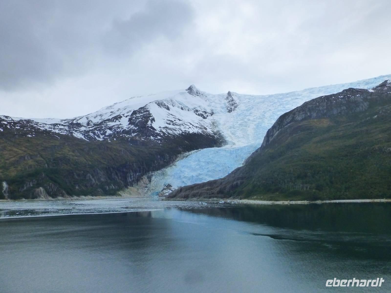 Am Vormittag gibt sich unser Kapitän die Ehre und lädt zum Eberhardt-Gruppenfoto. Bitte recht freundlich ! Angesichts der bevorstehenden Ereignisse fällt uns dies gar nicht schwer, denn zweifelsohne ist heute ein unvergesslicher Tag: AIDAcara manövriert durch die Straße der Gletscher in der Magellanstraße hinein in den Beagle-Kanal. Man kommt aus dem Staunen gar nicht mehr heraus! Auf der Backbordseite präsentieren sich uns nacheinander die unterschiedlichen Gletscher. Wir passieren den Roma-Gletscher, den Holländischen Gletscher, den Deutschen Gletscher und erreichen schließlich den Italienischen Gletscher, den größten und wohl eindrucksvollsten der eisigen Giganten. Als besonderes Highlight wird ein Tenderboot zu Wasser gelassen, das ganz nah an das Eis heran fährt. Der Bootsmann kommt nicht mit leeren Händen zurück und die Bar-Crew reicht auf dem Pooldeck Whiskey und Baileys on the Rocks mit echtem, tausende Jahre alten Gletschereis. WOW!