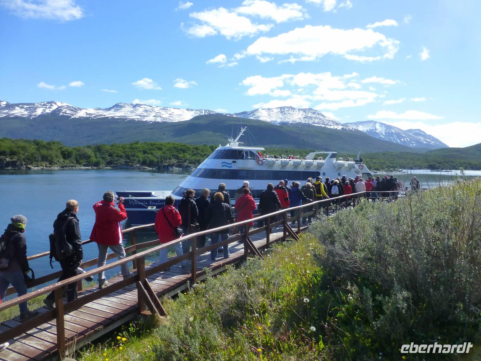 Es gibt wohl nur 20 Tage im Jahr, wo in Ushuaia die Sonne scheint - und genau heute ist so ein wundervoller Tag. Bei Bilderbuchwetter starten wir auf die Ausflüge, um die atemberaubenden Landschaften von Feuerland zu erleben. Wir befinden uns tatsächlich am "Ende der Welt", am südlichsten Punkt der legendären Panamericana. Zum Beweis können wir am südlichsten Postamt der Welt in der Ensenada Bucht Postkarten an die Lieben daheim verschicken. Es bietet sich uns ein fantastisches Panorama auf den See, die schneebedeckten Gipfel der Anden und tiefgrünen Südbuchenwald. Am malerischen Roca-See unternehmen wir einen kurzen Spaziergang bevor ein Teil der Ausflügler den Motorkatamaran entert. Bei glücklicherweise ruhiger See können wir die Fahrt durch den Beagle-Kanal in vollen Zügen genießen. Auf kleinen Felseninseln sonnen sich Kormorane und Seelöwen vor einer überwältigenden Naturkulisse. Viele Dinge rühmen sich ja der, die, das südlichste der Welt zu sein - nun haben wir auch den südlichsten Leuchtturm der Welt umrundet: „Les Éclaireurs". Es war ein Tag, wie kaum hätte schöner sein können!