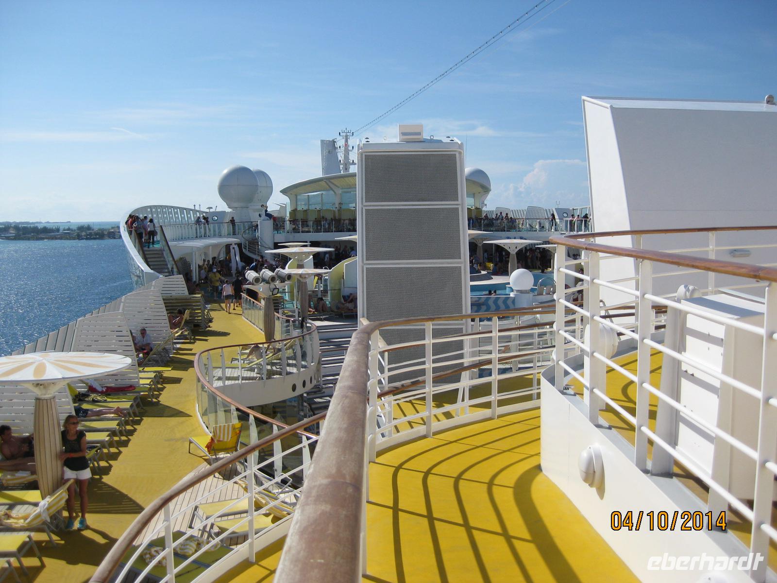 Die nächsten zwei Tage stehen ganz unter dem Motto: "Erholung auf See". Zwei Seetage brauchen wir, um unser nächstes Ziel, die Bahamas, zu erreichen. Jeder kann diese Zeit noch einmal ganz individuell für sich nutzen. Traumhaftes Wetter mit Temperaturen bis zu 30 Grad laden zu einem Sonnenbad auf Deck ein. Vorträge zu den nachfolgenden Destinationen sind eine informative und gute Abwechslung für zwischendurch und wer eher gern etwas aktiv sein möchte, unternimmt eine Runde Shuffleboard. Die Shows des Schiffes, welche uns Musik, Tanz und auch Akrobatik bieten runden das Abendprogramm entsprechend ab und bringen uns viele gemeinsame schöne Stunden.