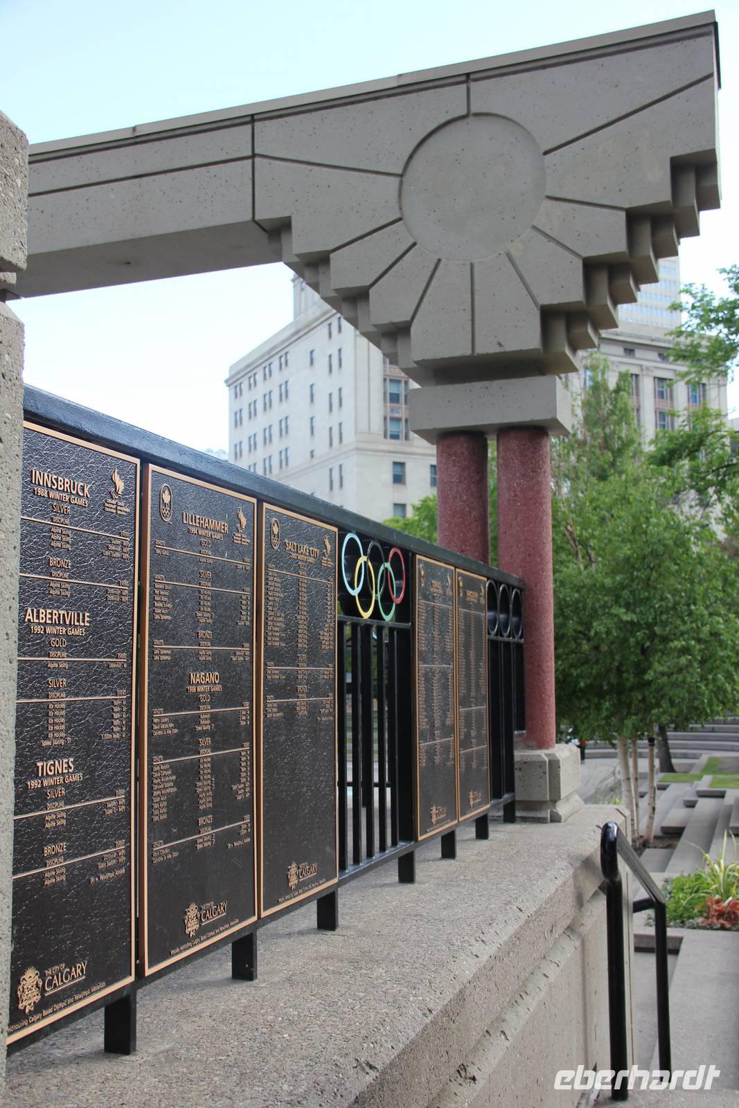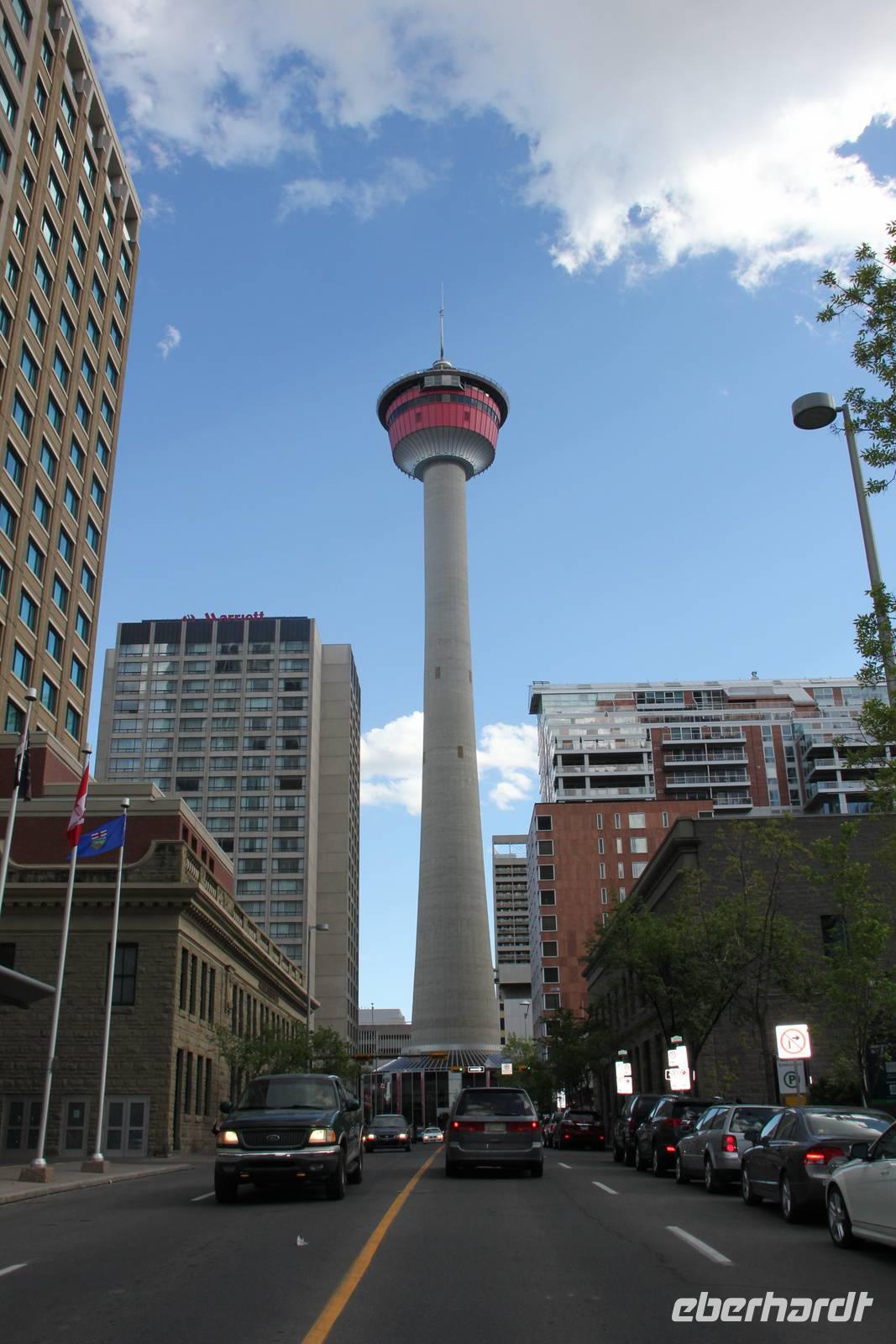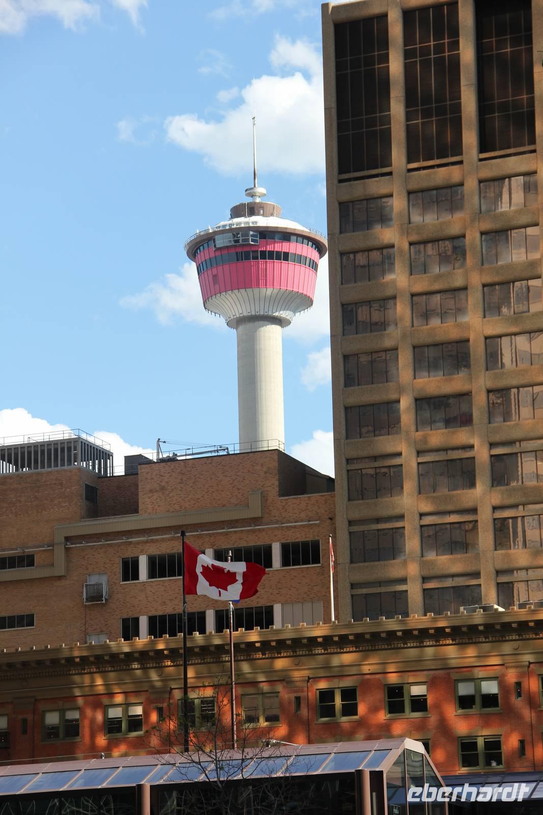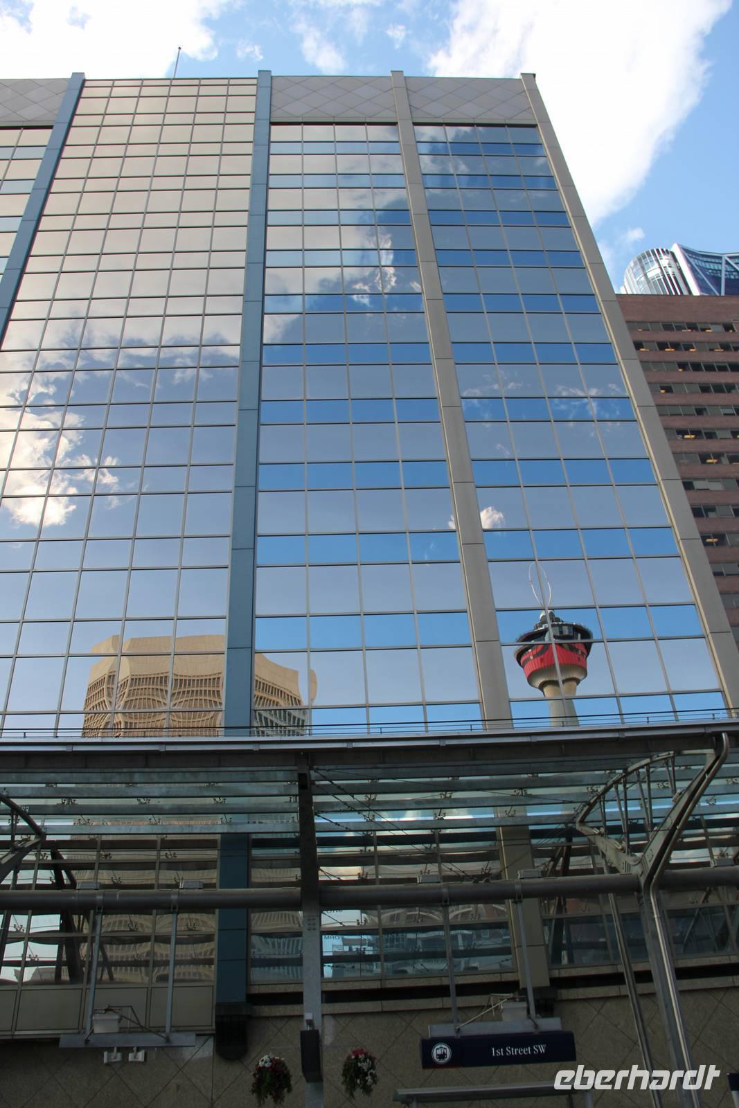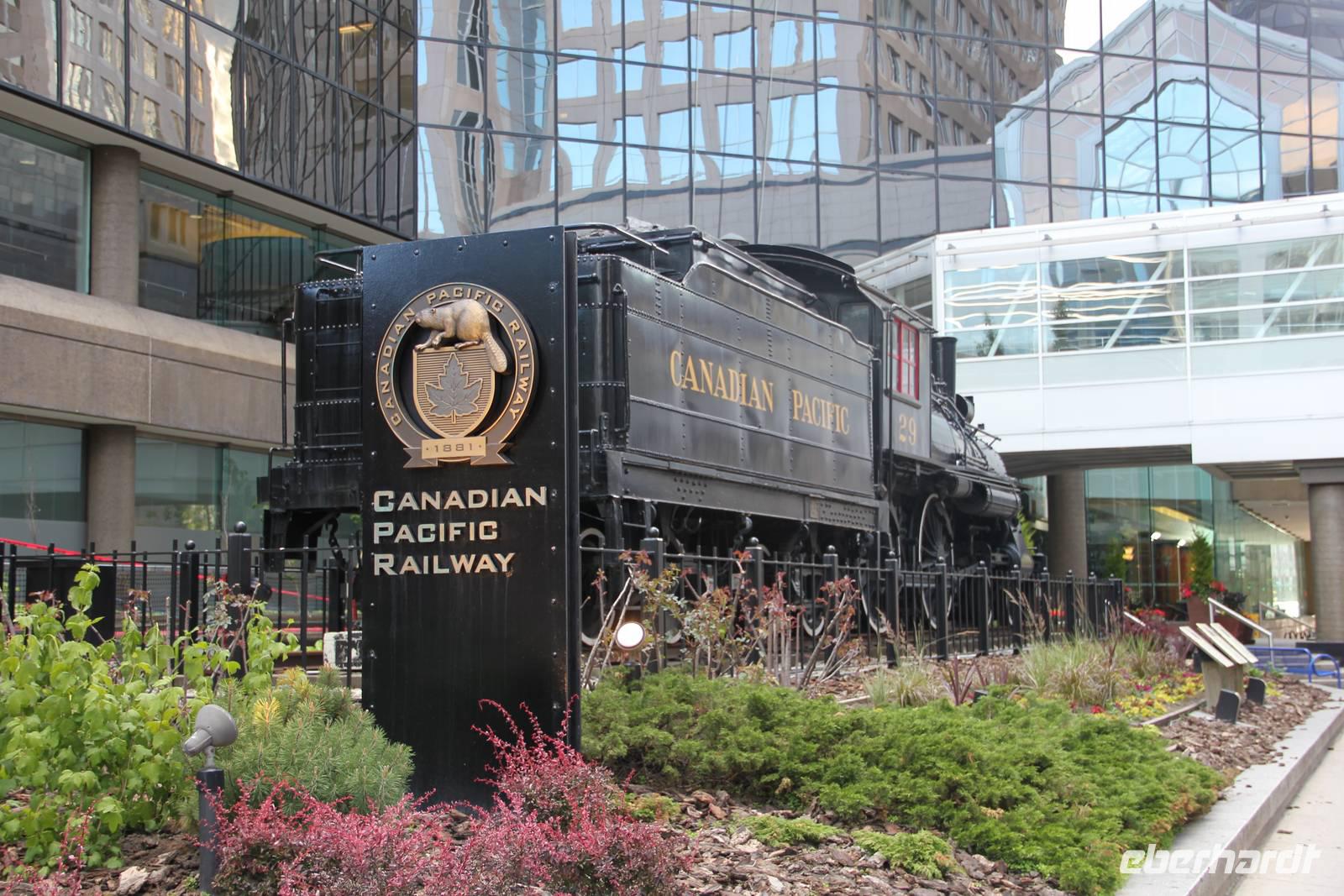 Alle hatten ein wenig Zeit für sich, bevor wir einen Stadtrundgang durch Calgary unternahmen. Wir fuhren mit der Straßenbahn „C-Train", sahen den Olympic Plaza mit Widmungssteinen für Olympiasieger aus Kanada sowie denen, die in Calgary Olympia gewonnen hatten. Auch am Denkmal der sogenannten Famous Five kamen wir vorbei, Skulpturen von fünf Frauen, die für mehr Rechte für Frauen in Kanada kämpften. Entlang der Fußgängerzone der Stephen Avenue führte unser örtlicher Reiseleiter uns weiter durch die Stadt bis wir zur Lokomotive des Canadian Pacific Railway. Unser Rundgang endete schließlich am knapp 191 Meter hohen Calgary Tower, wo wir zu Abend essen wollten.