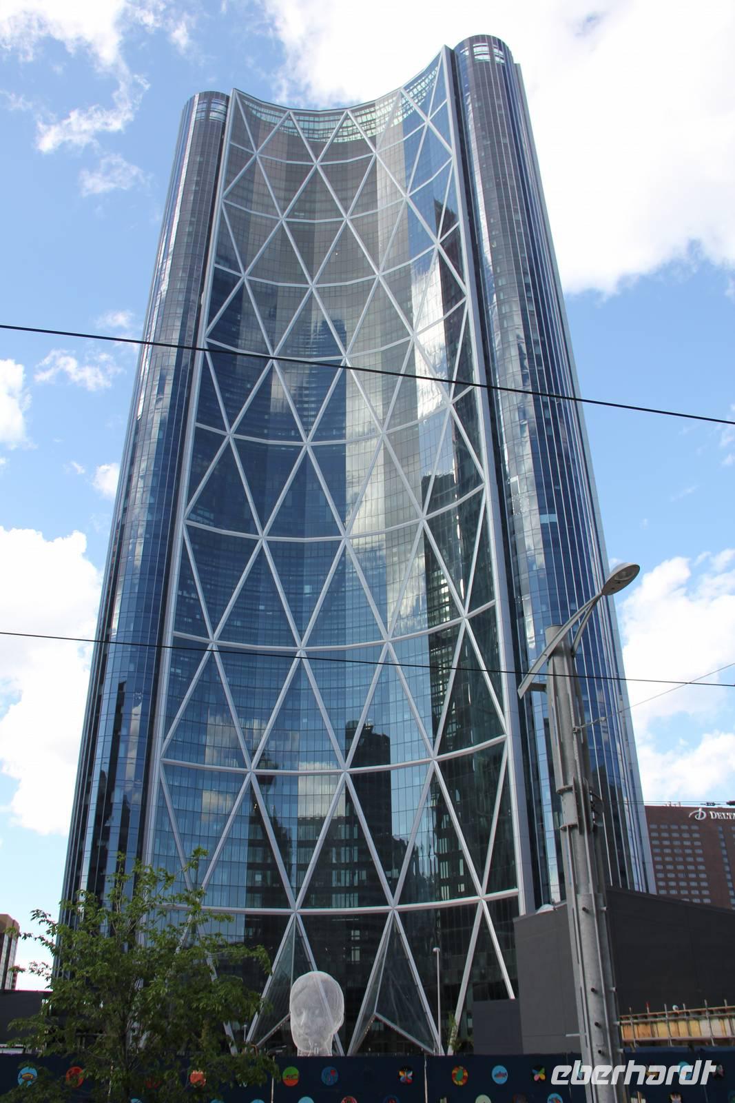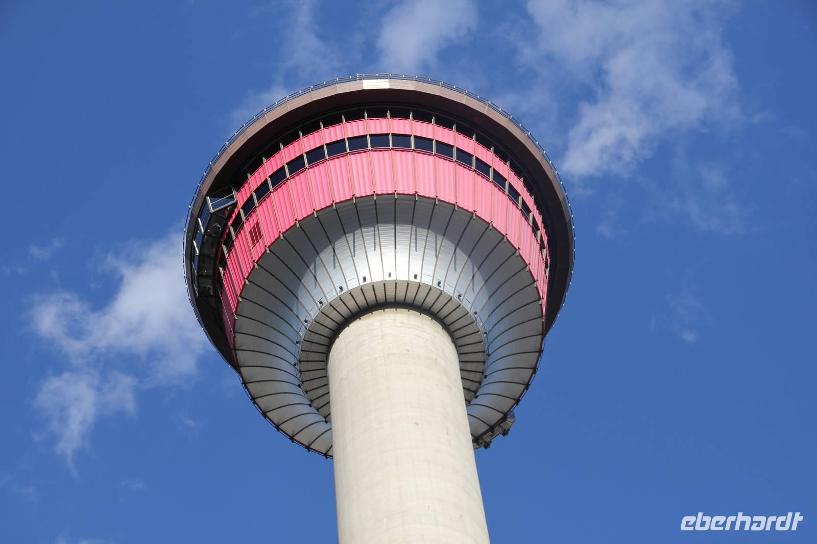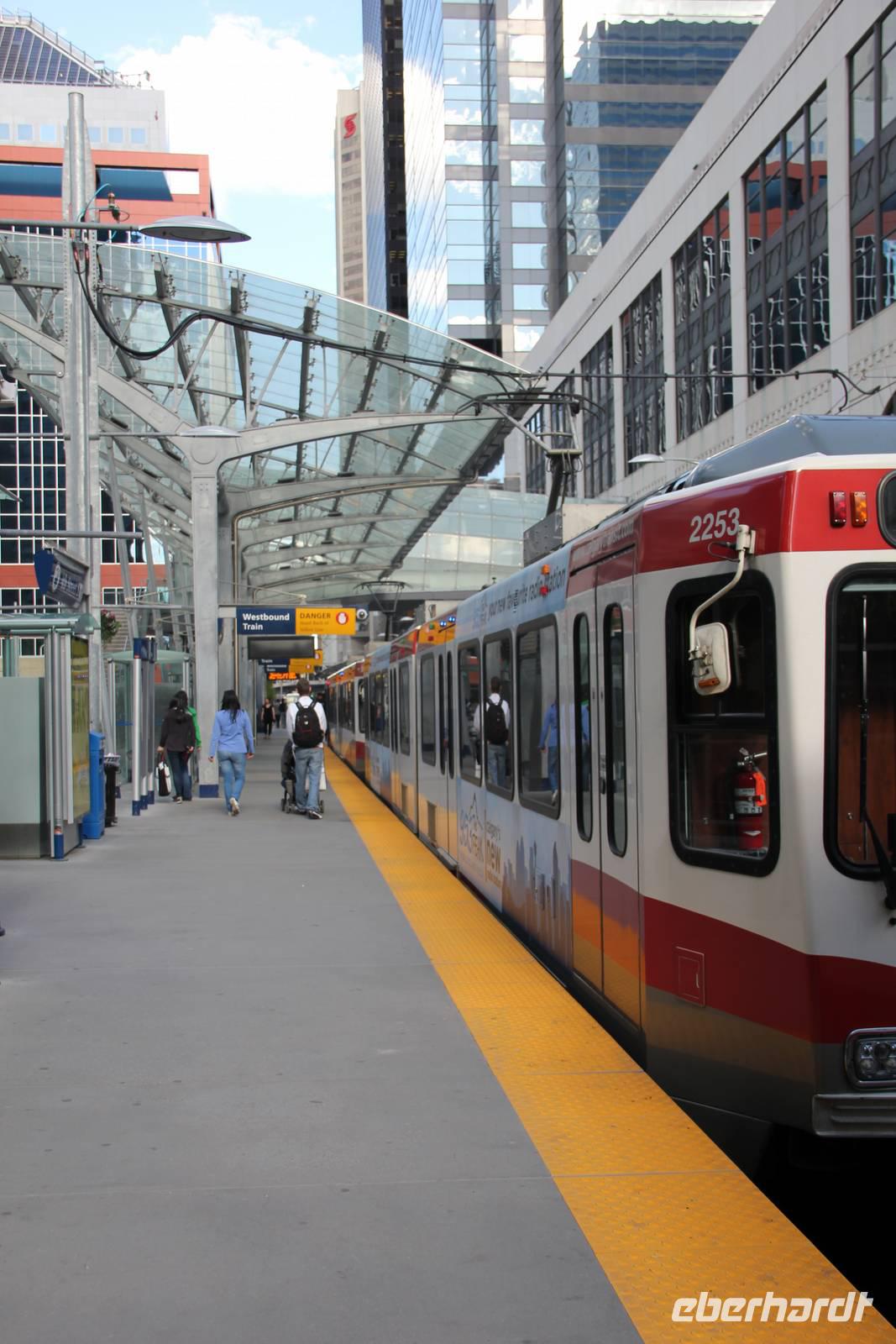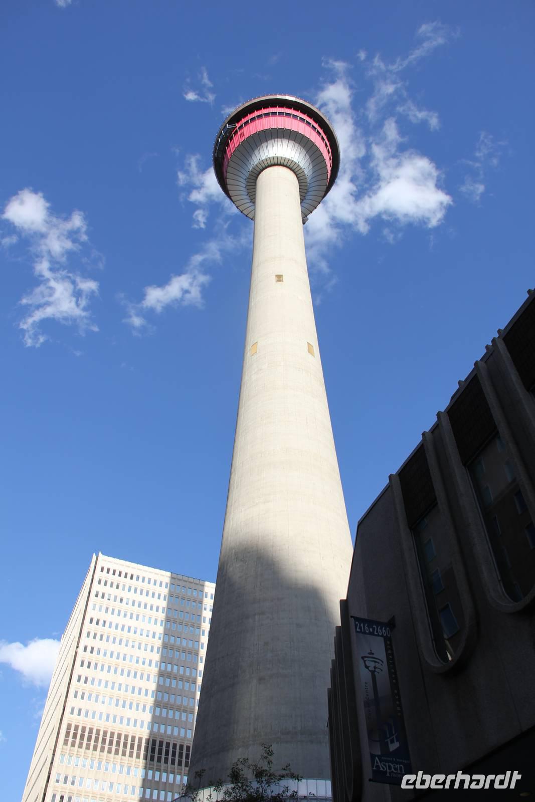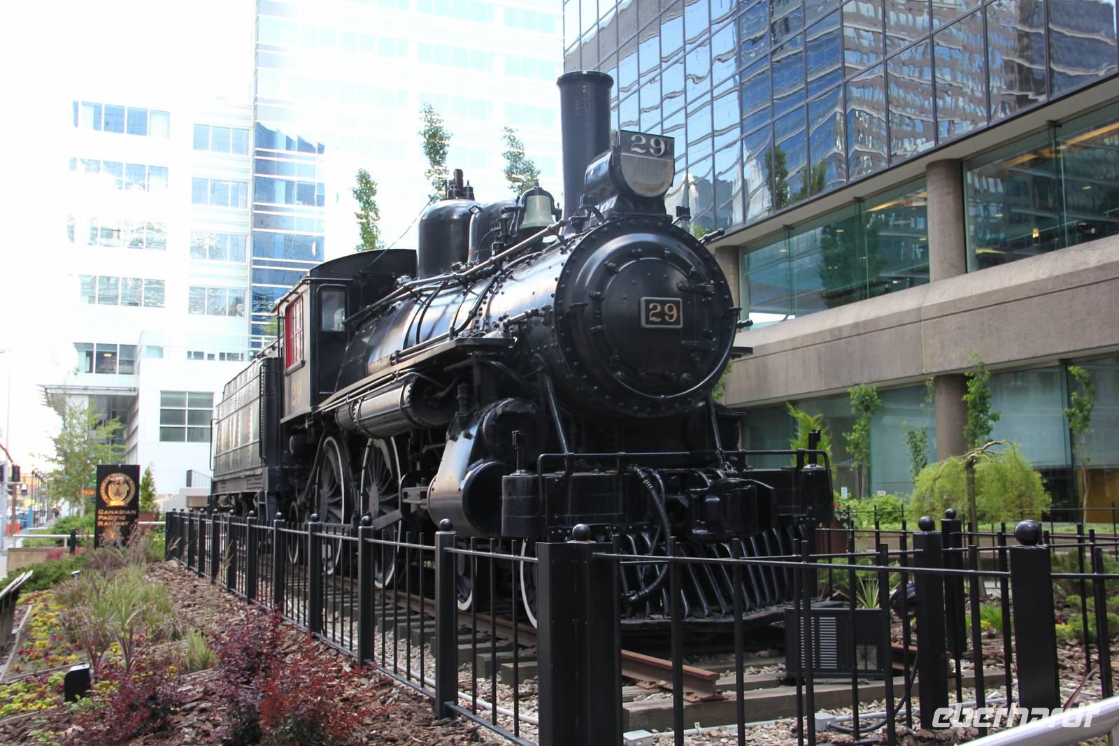 Alle hatten ein wenig Zeit für sich, bevor wir einen Stadtrundgang durch Calgary unternahmen. Wir fuhren mit der Straßenbahn „C-Train", sahen den Olympic Plaza mit Widmungssteinen für Olympiasieger aus Kanada sowie denen, die in Calgary Olympia gewonnen hatten. Auch am Denkmal der sogenannten Famous Five kamen wir vorbei, Skulpturen von fünf Frauen, die für mehr Rechte für Frauen in Kanada kämpften. Entlang der Fußgängerzone der Stephen Avenue führte unser örtlicher Reiseleiter uns weiter durch die Stadt bis wir zur Lokomotive des Canadian Pacific Railway. Unser Rundgang endete schließlich am knapp 191 Meter hohen Calgary Tower, wo wir zu Abend essen wollten.