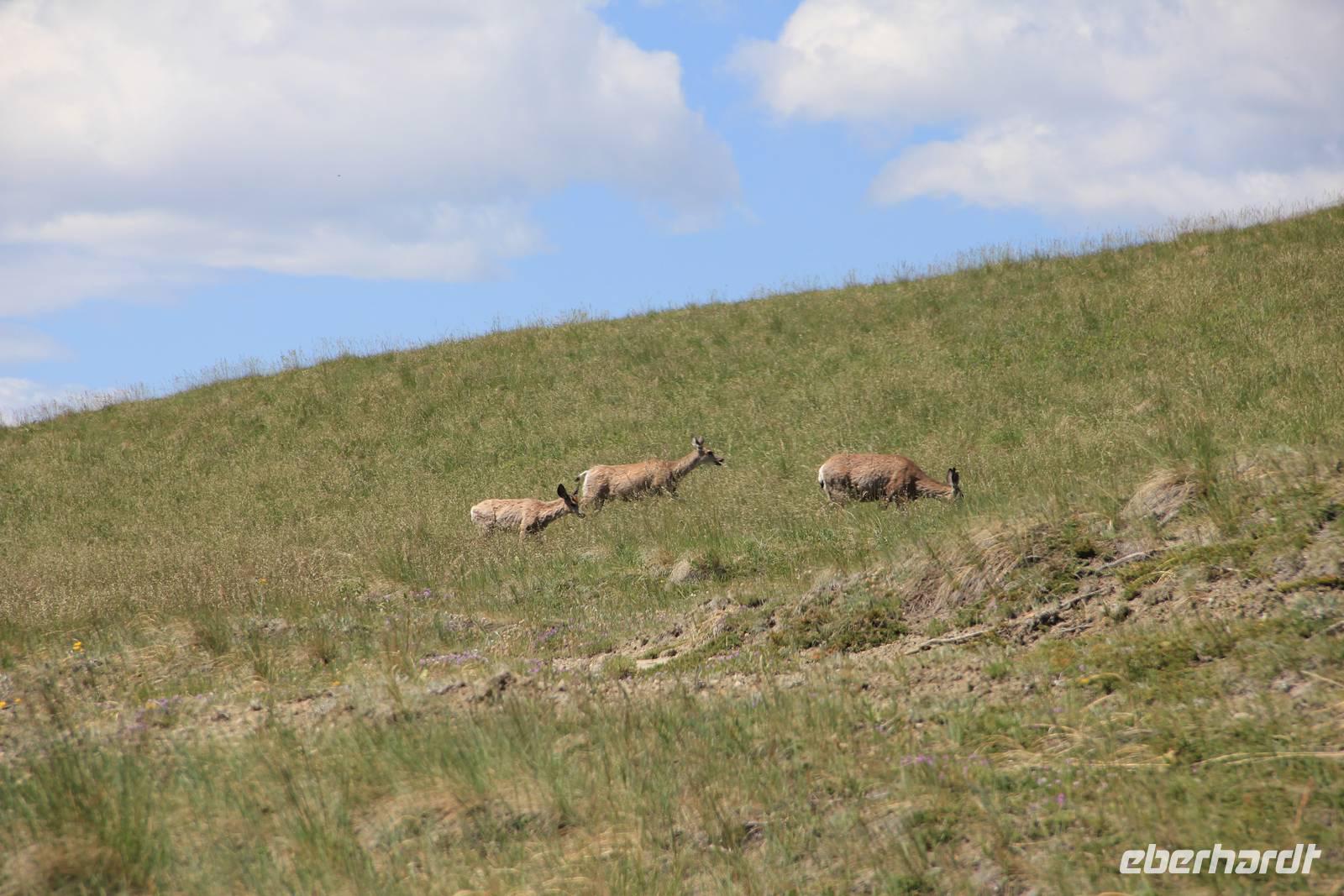Natürlich machten wir daher auch hier einen Stopp und genossen unser Mittagessen mit Aussicht auf die Berge. Beim anschließenden kleinen Spaziergang bekamen wir Unterhaltung von einigen Murmeltieren geboten und konnten die Kleinen aus nächster Nähe fotografieren.