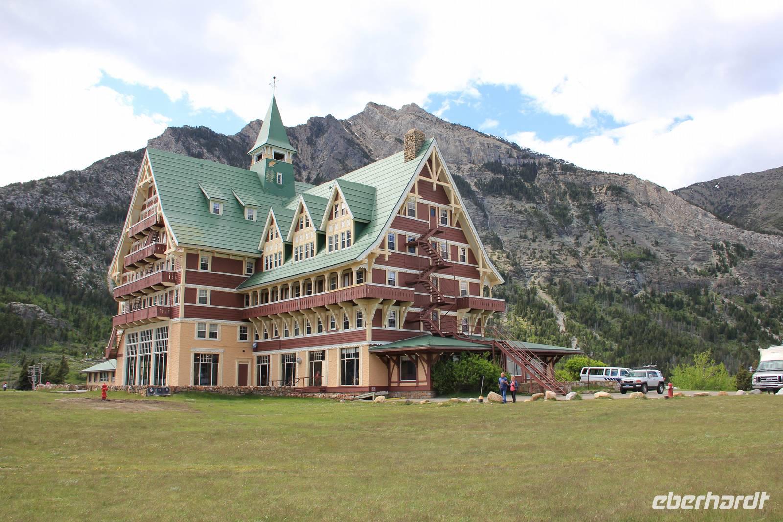 In Waterton angekommen genossen wir die Aussicht vom Gelände des Hotels Prince of Wales auf den strahlend blauen Waterton Lake und das einzigartige Panorama der Berge ringsherum.