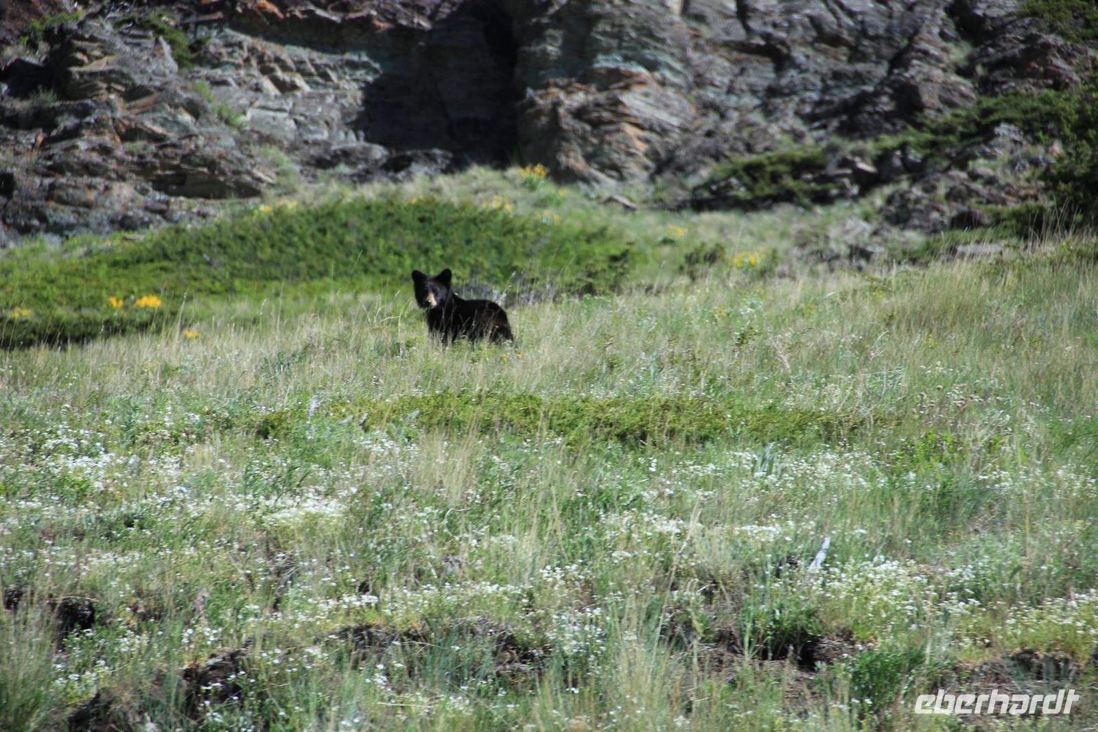 Am Vormittag fuhren wir zuerst zum Red Rock Canyon. Unterwegs erwartete uns schon das erste Highlight des Tages: ein ca. 2 Jahre junger Schwarzbär in freier Natur. Mit Blick auf den Berg Blakiston kamen wir unserer ersten Tagesetappe immer näher.