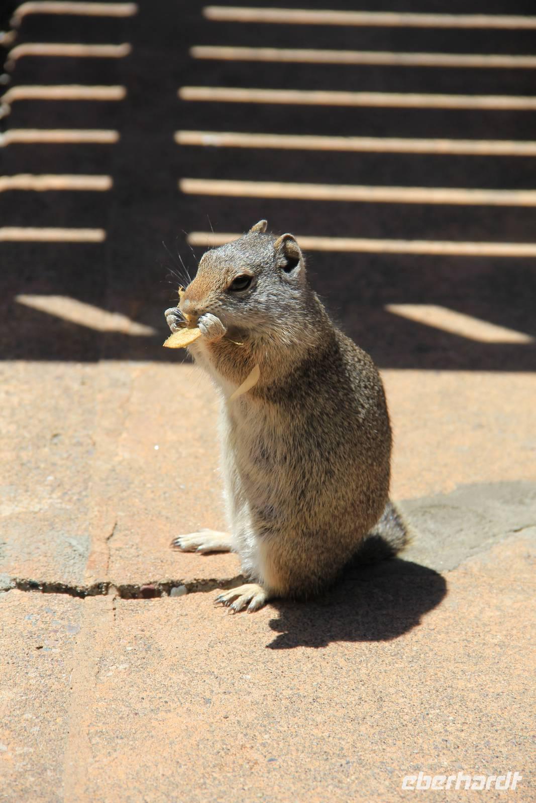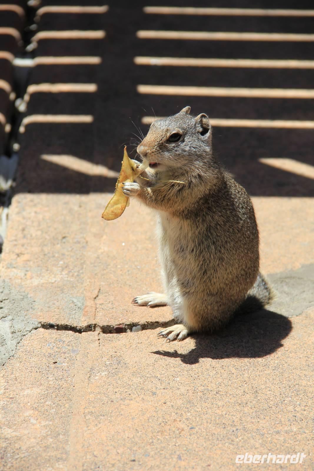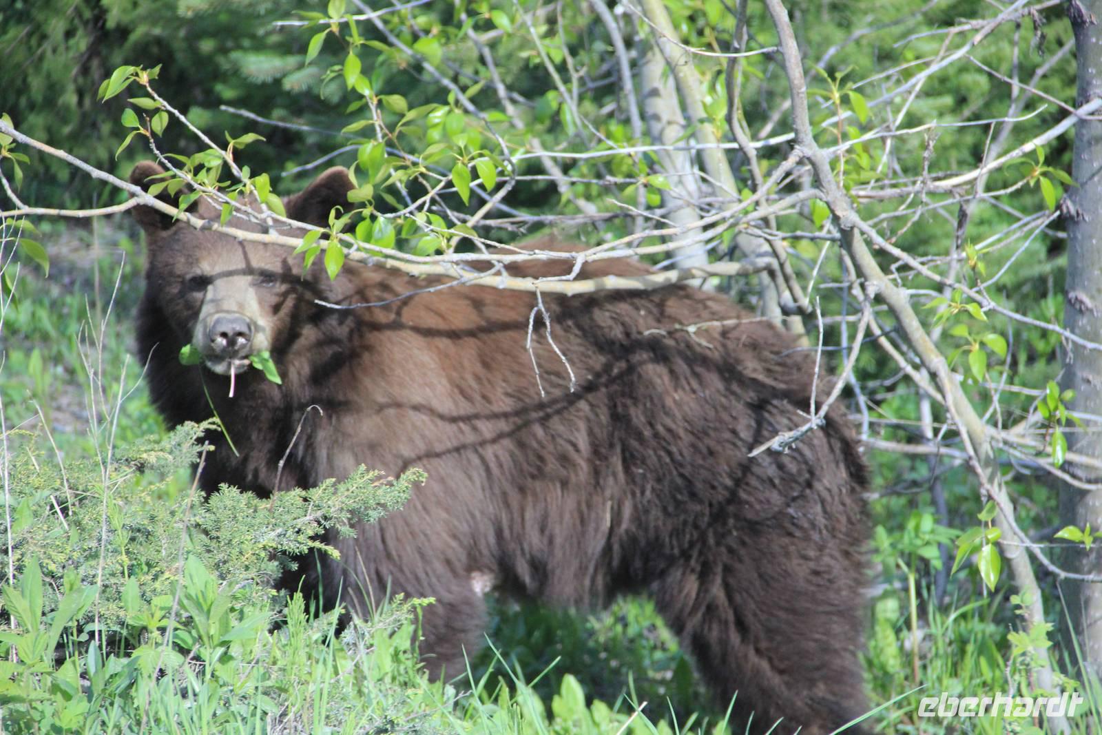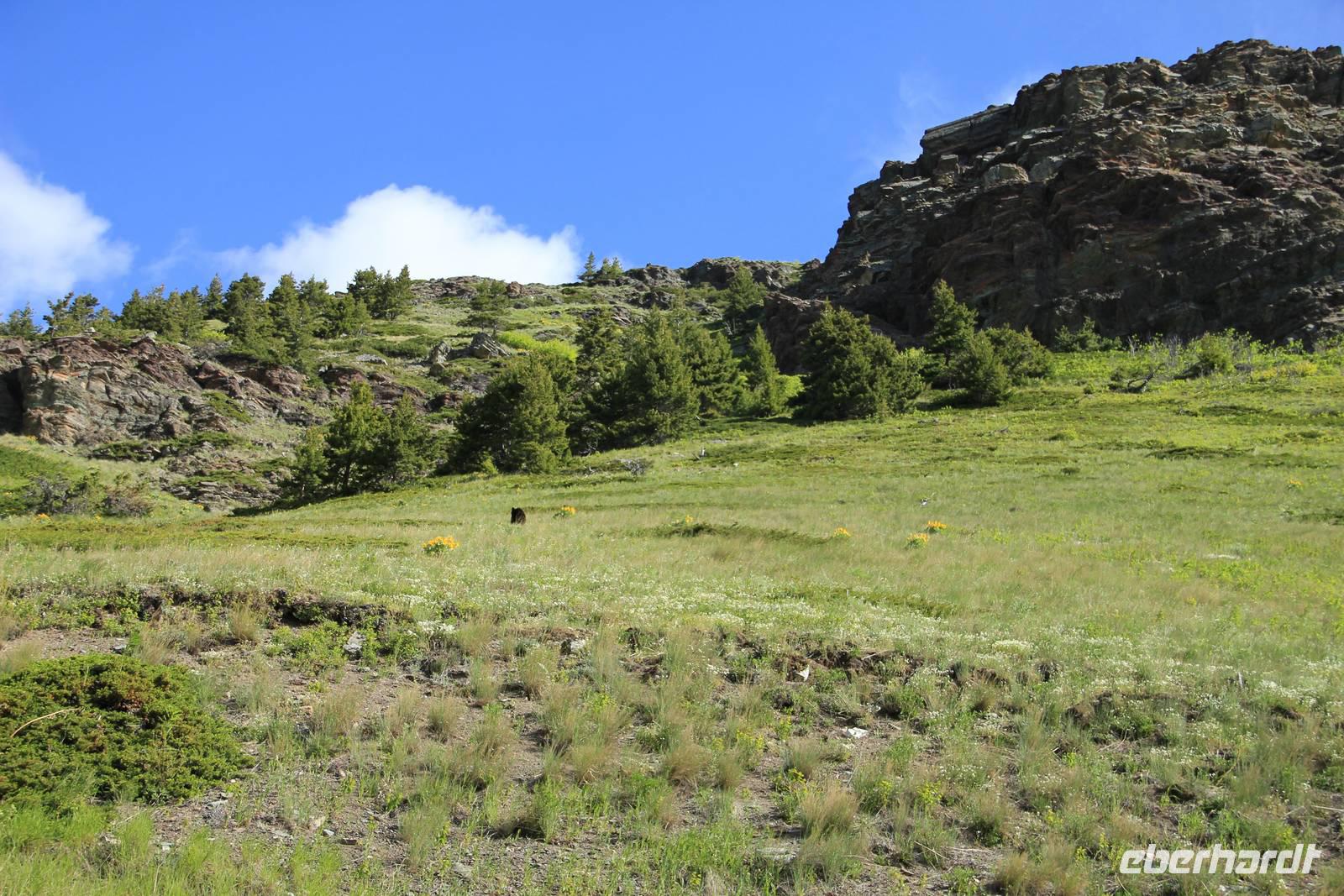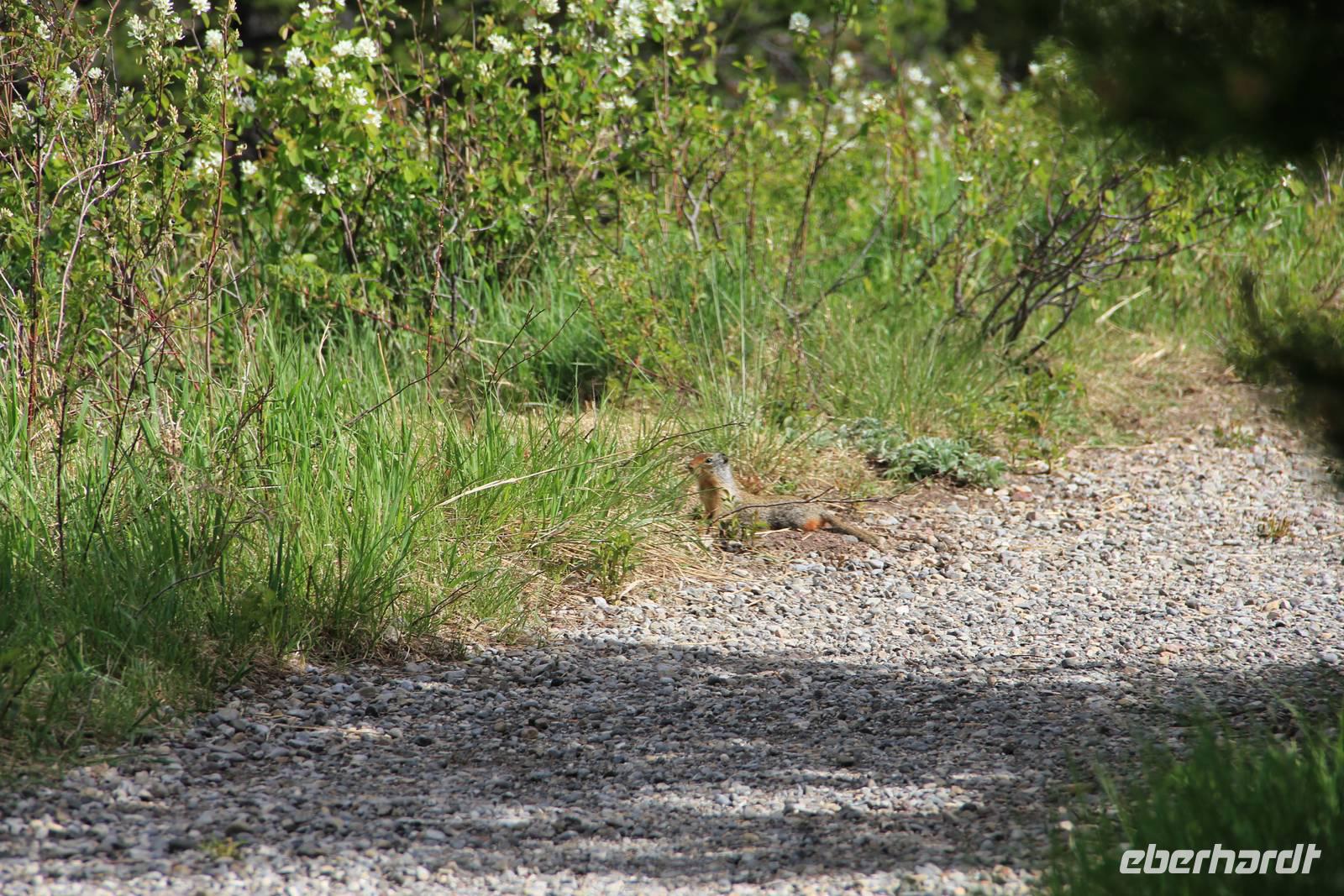 An diesem Tag sahen wir wohl so viele Tiere, wie kaum manch andere auf einer ganzen Reise: 9 Bären, 4 Dickhornschafe sowie einige Erdmännchen und Streifenhörnchen. Sogar ein Eichhörnchen lief uns morgens vom Weg vom Restaurant zu den Zimmern über den Weg.