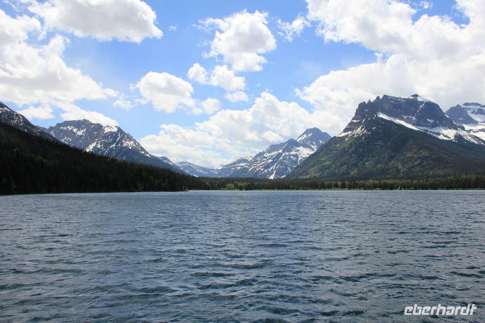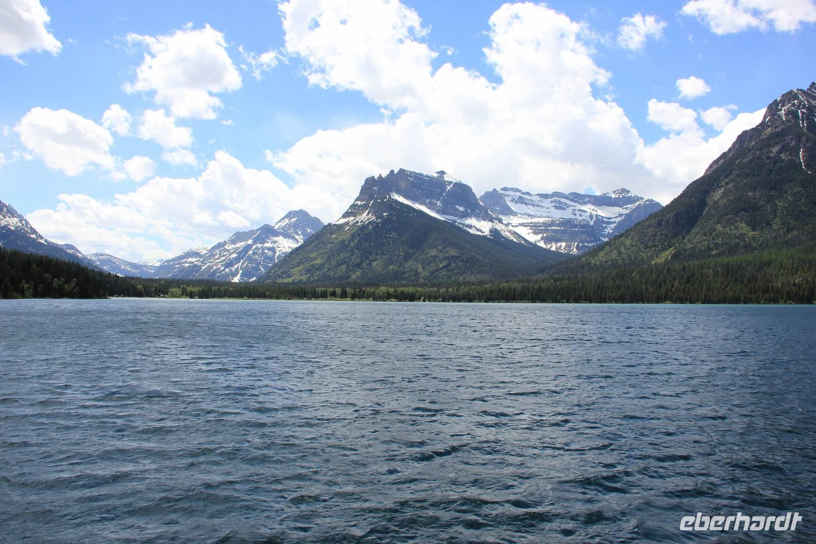 Bei einigem Fahrtwind passierten wir auf dem Wasser bereits kurz die Grenze zwischen Kanada und den USA, denn Goat Haunt ist eine Region im Glacier National Park, welcher sich bereits im US-Bundesstaat Montana befindet. Auch wenn wir während der Fahrt leider keine Tiere zu sehen bekamen, entschädigte das super Wetter und die Aussicht alles.