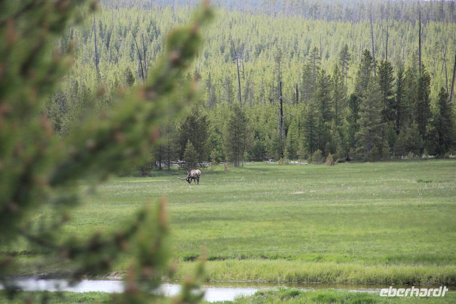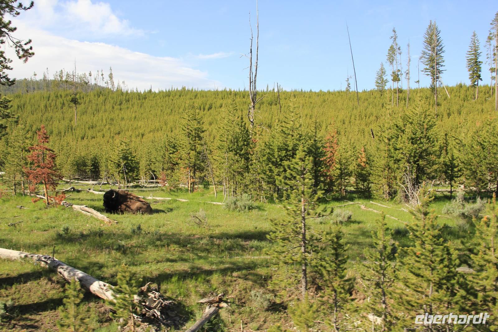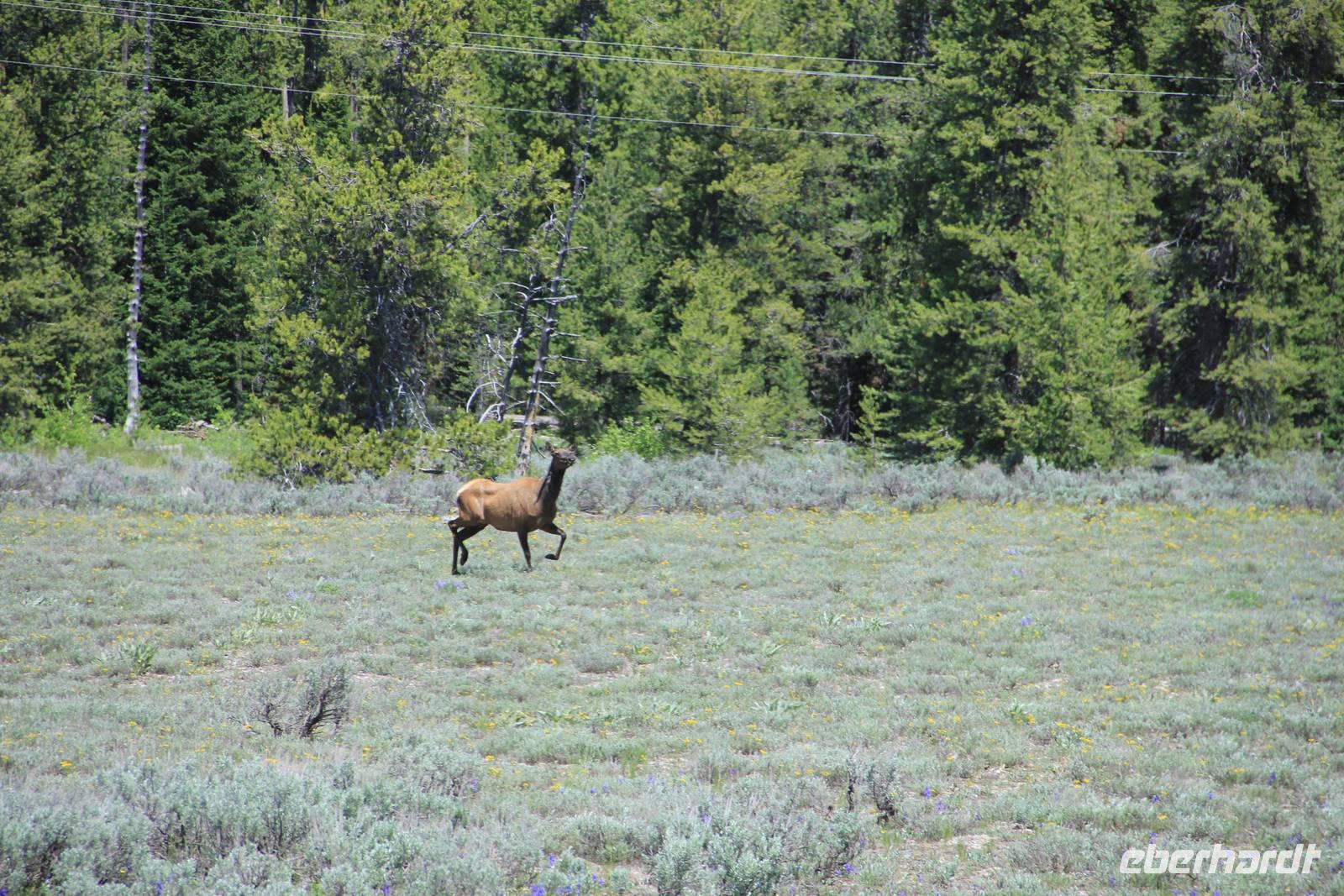 Wir setzten unseren Weg fort Richtung Süden, nach Jackson Hole. Auf unserer Fahrt dorthin fuhren wir wieder ein Stück durch den Yellowstone National Park. Kaum waren wir im Park, sahen wir auch schon einen Büffel, ein paar Wapiti und einen Kojoten.