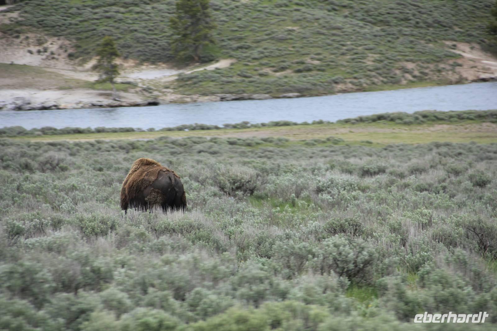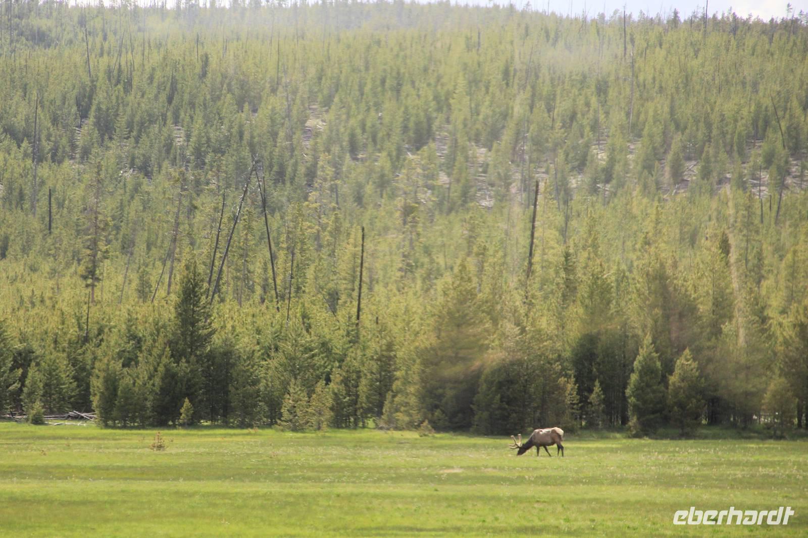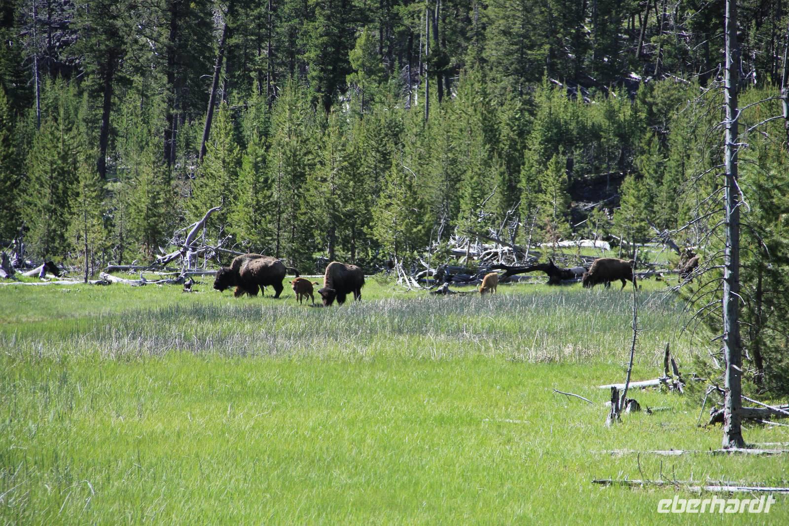 Wir setzten unseren Weg fort Richtung Süden, nach Jackson Hole. Auf unserer Fahrt dorthin fuhren wir wieder ein Stück durch den Yellowstone National Park. Kaum waren wir im Park, sahen wir auch schon einen Büffel, ein paar Wapiti und einen Kojoten.