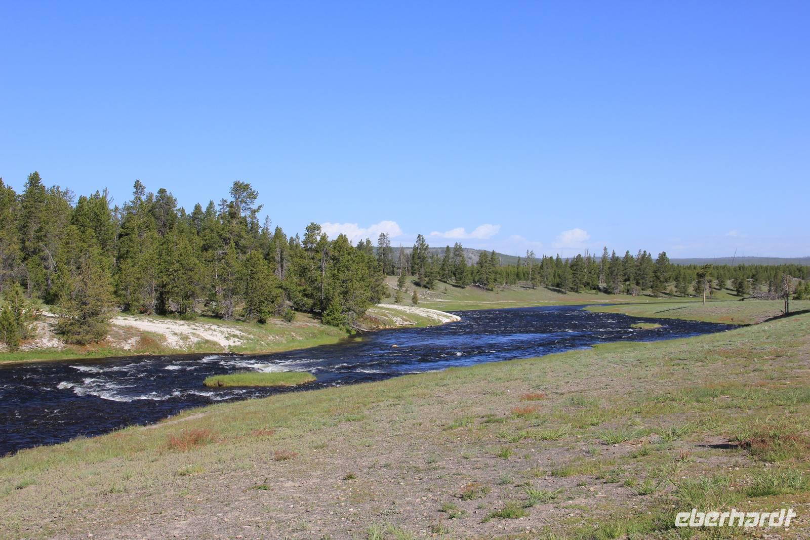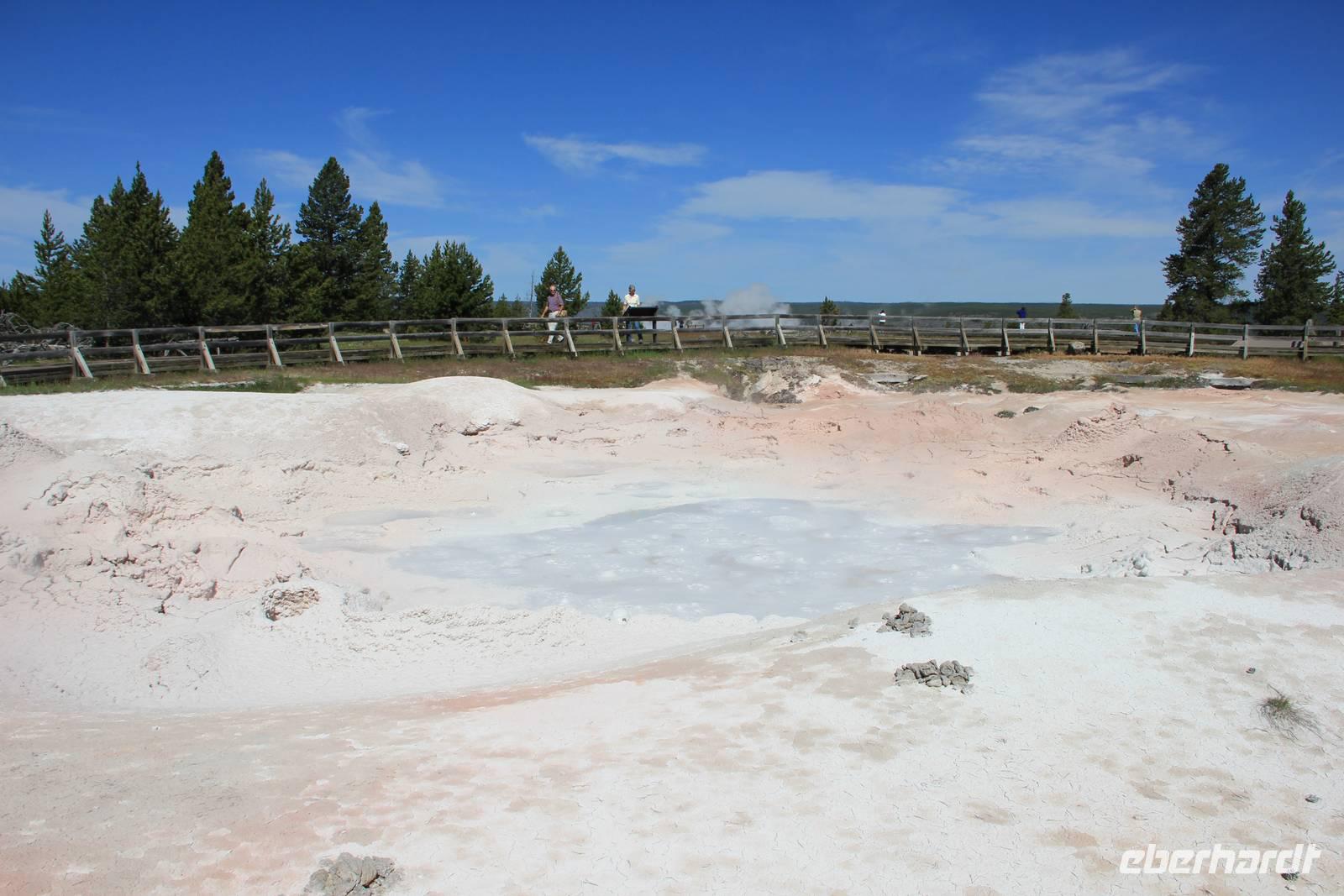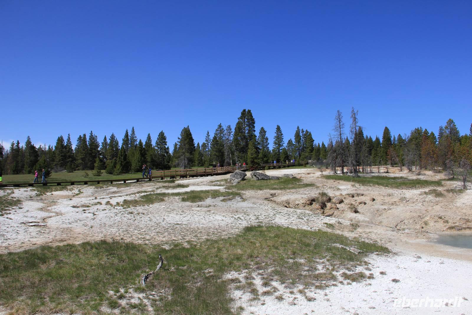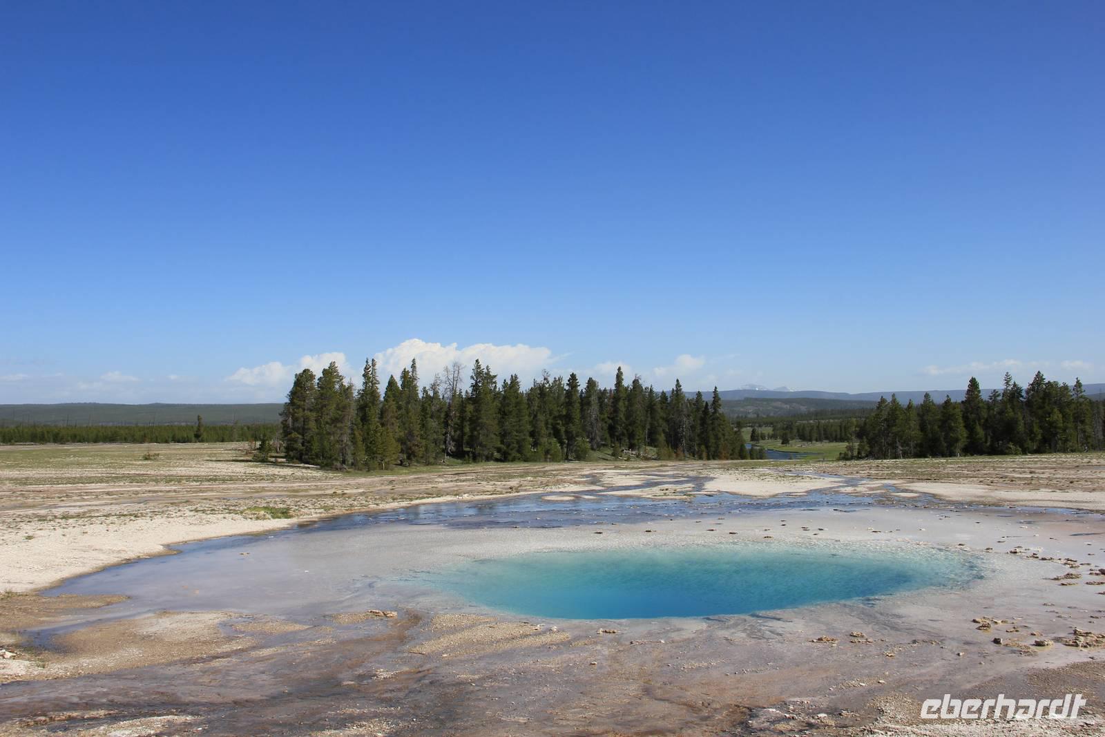 Unser erstes Ziel im Park waren die Lower Geyser Basins. Hier stieg uns der Geruch von schwefelhaltigen heißen Quellen am heutigen Tag das erste Mal in die Nase. Wir wollten natürlich so viel wie möglich von dem berühmten Nationalpark sehen und somit ging es direkt weiter zu den nächsten heißen Quellen. Farbenspiele, Gerüche, Dampf der heißen Quellen... wir bekamen alles geboten und auch die Sonne zeigte sich von ihrer schönsten Seite!