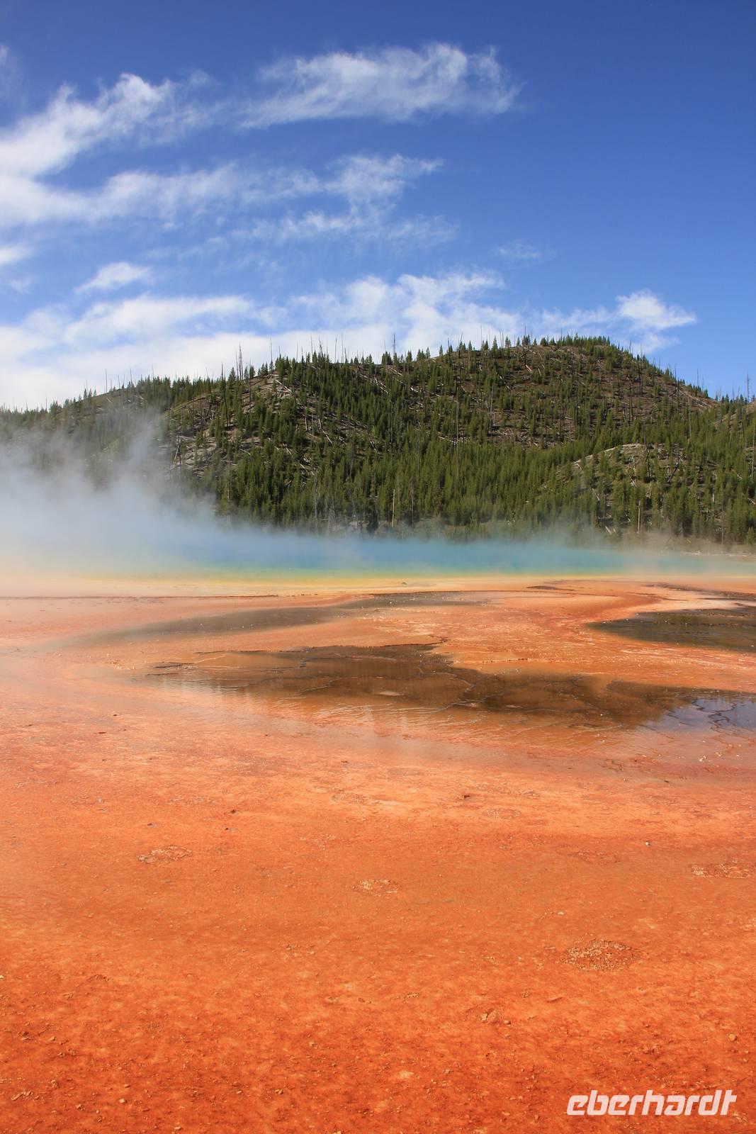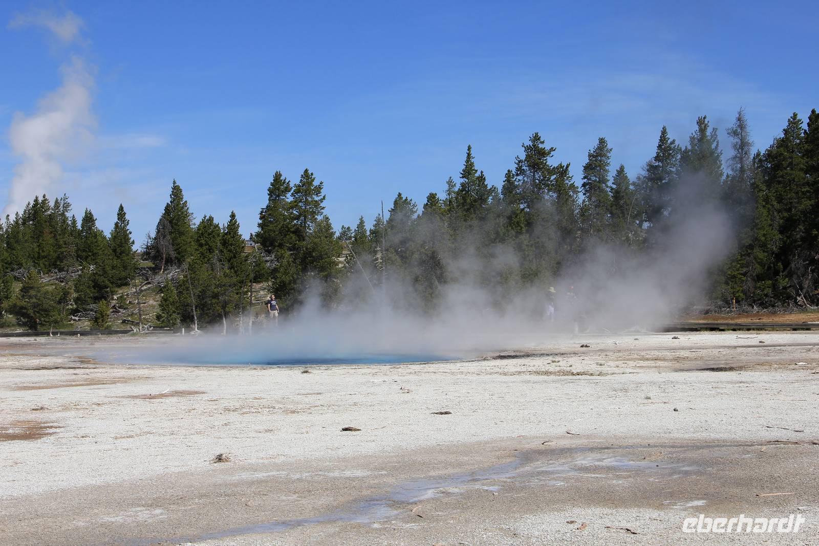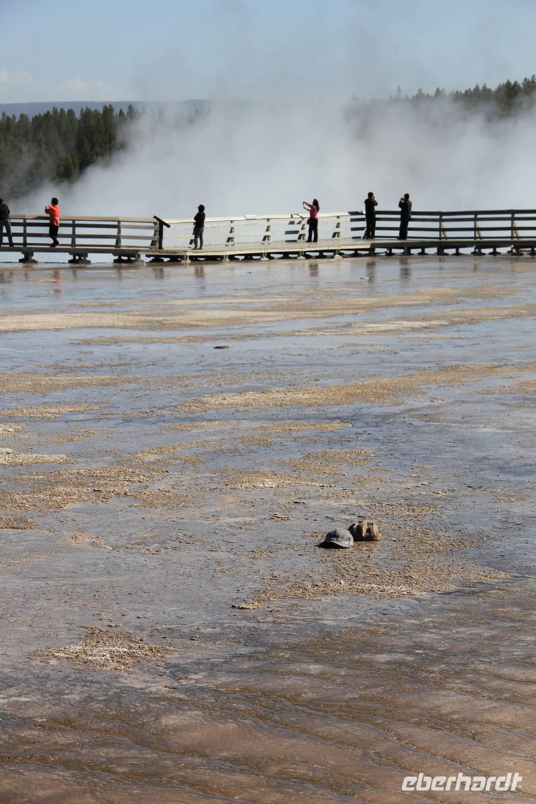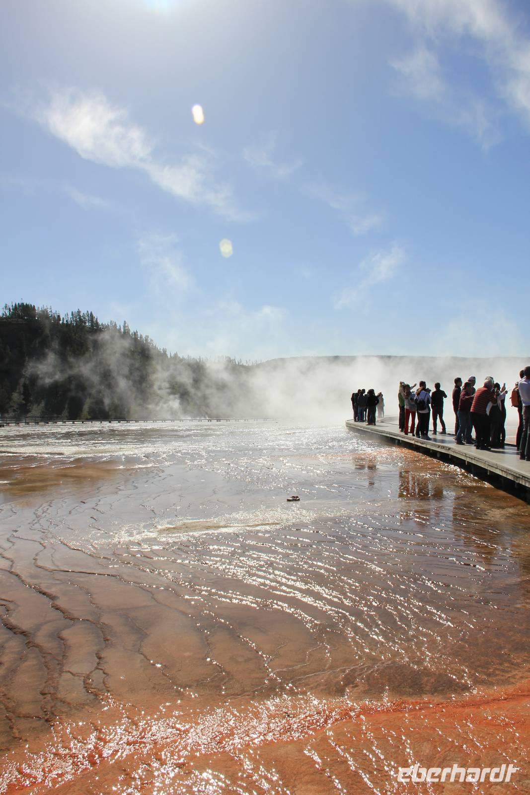 Unseren ersten Stopp machten wir am Middle Geyser Basin, wo wir vom Schwefelnebel eingehüllt wurden. Die Farbenpracht der Quellen, die dahinter zum Vorschein kam, war unbeschreiblich schön!