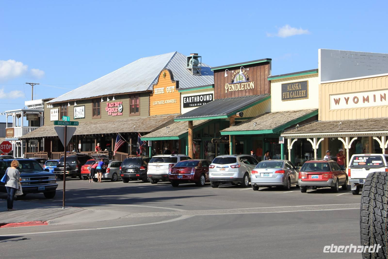 Am späten Nachmittag und nach ein paar weiteren Fotostopps kamen wir dann in Jackson Hole an, einem Städtchen mit Cowboyflair.
