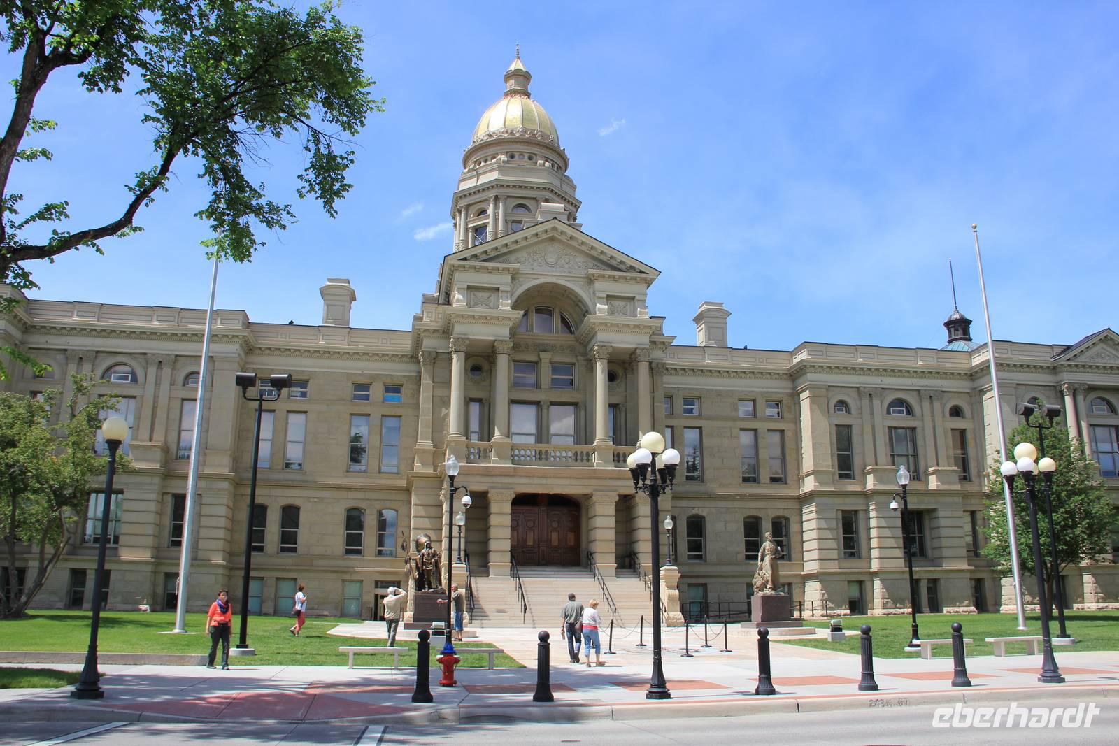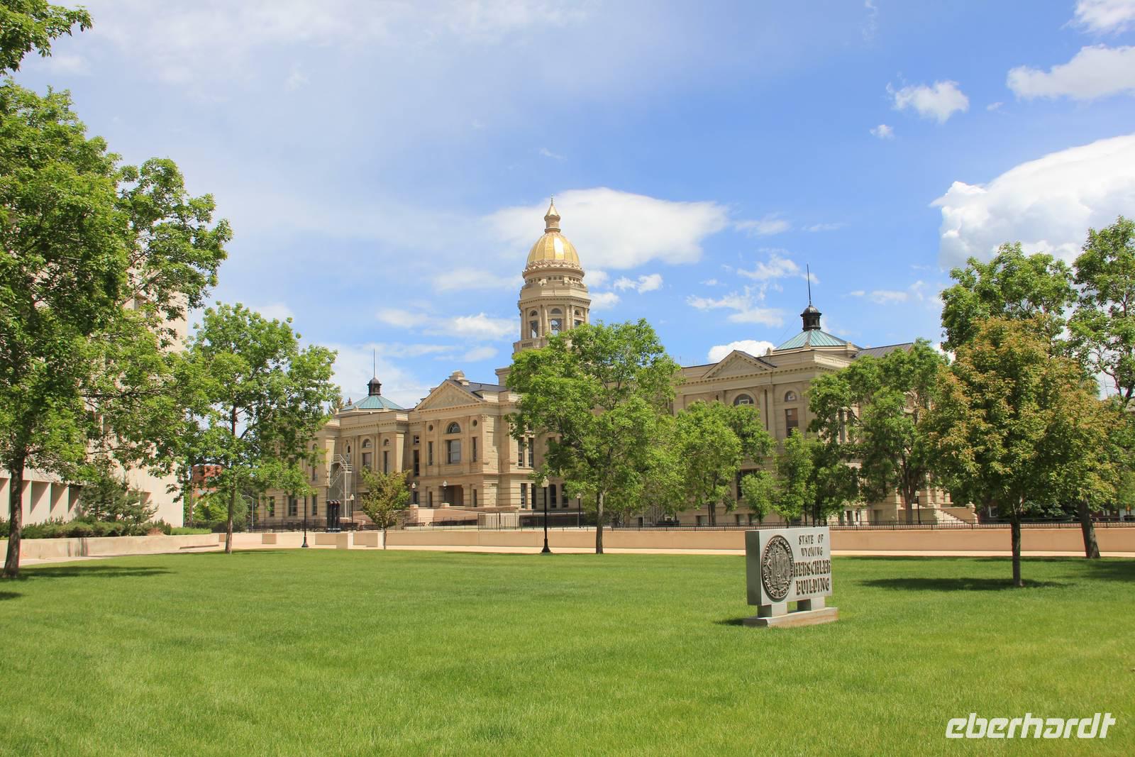 In Cheyenne angekommen besichtigten wir die Big Boy Lokomotive der Union Pacific, wo auch zwei Eichhörnchen ihr Unwesen trieben. Anschließend fuhren weiter durch die Stadt zum Parlament des Bundesstaates Wyoming.