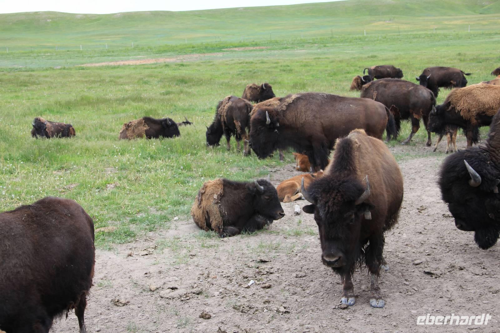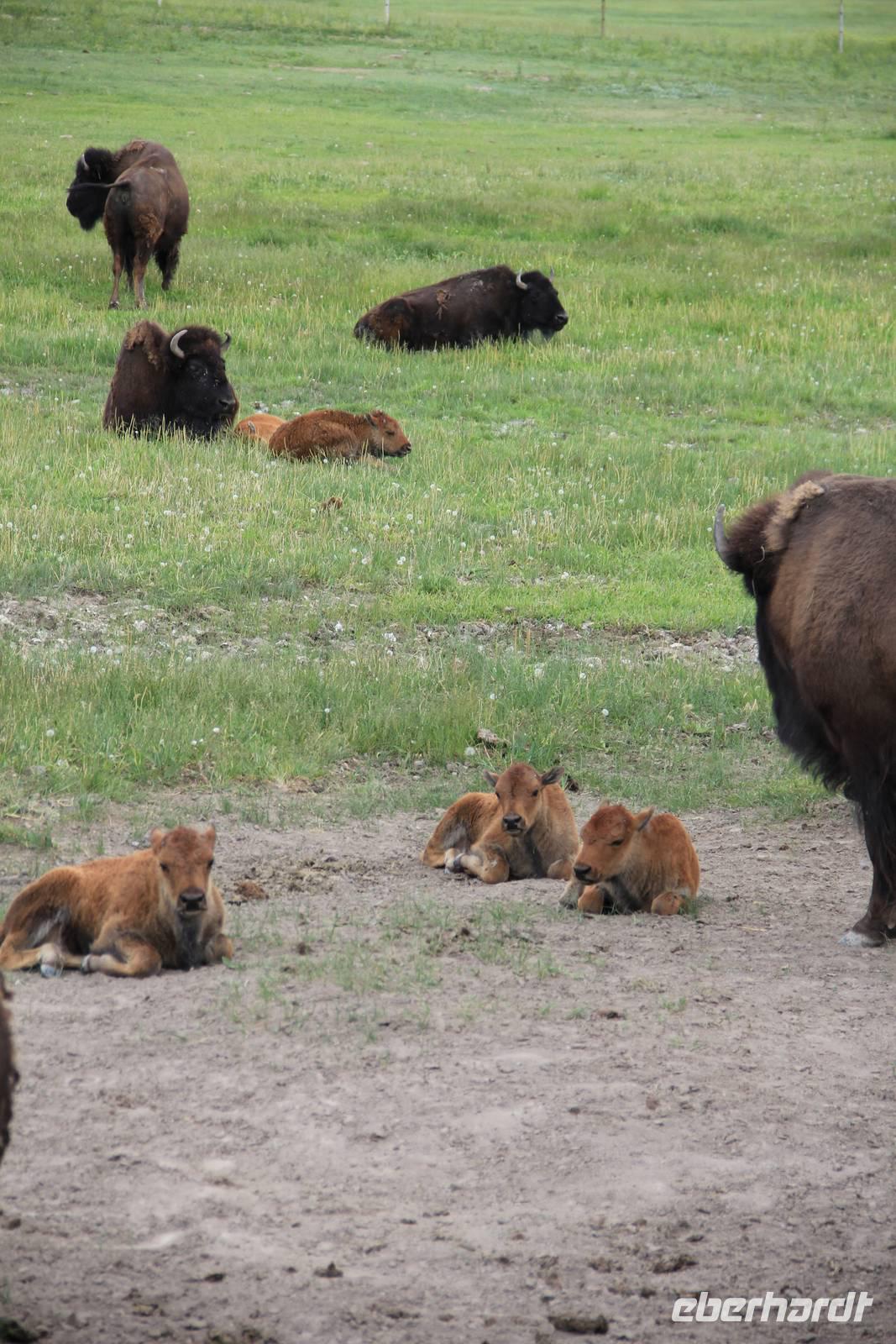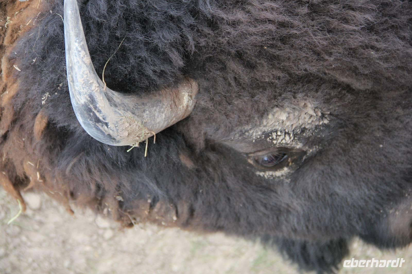 Den Abend verbrachten wir auf der Terry Bison Ranch. Erst unternahmen wir eine kleine Rundfahrt über das Gelände der Ranch, wobei wir neben Pferden auch Lamas, Strauße und natürlich auch Büffel sahen. Zudem machten wir während der Fahrt einen kleinen Stopp in der Büffelherde und konnten die gewaltigen Vierbeiner füttern und von nahem begutachten. Das Abendessen war dann leider nicht mehr der Rede wert und so endete ein schön angedachter Abend leider eher nüchtern.