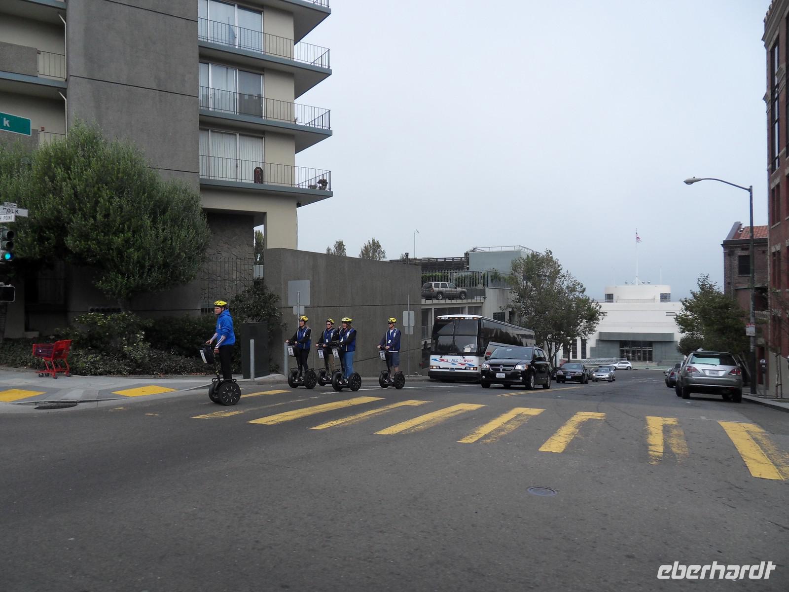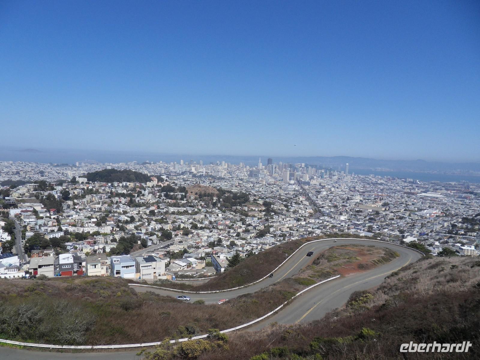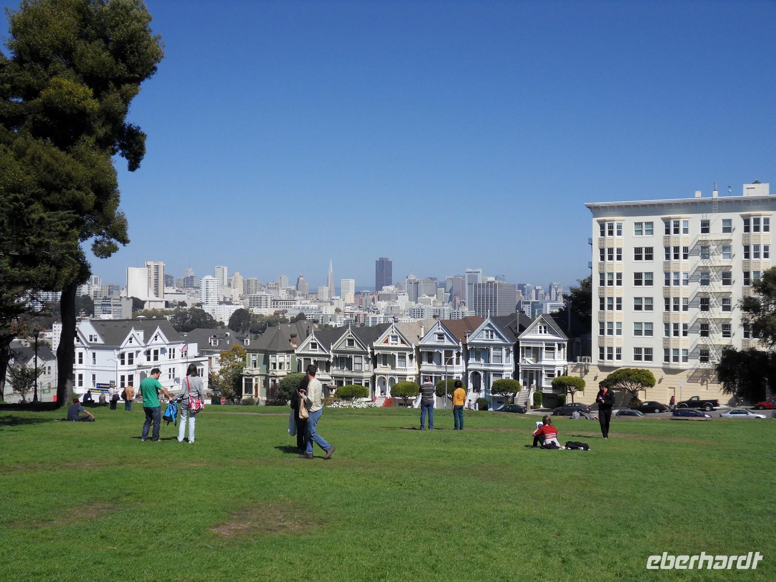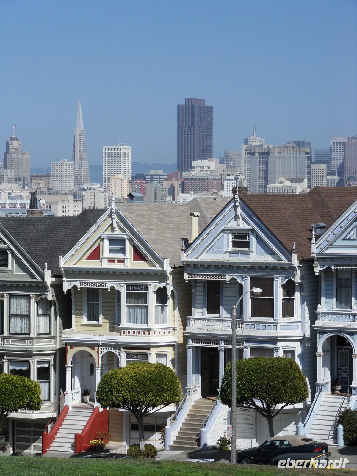 Der Montagmorgen begann für uns alle recht früh. So traf ich mich mit 11 Gästen in Dresden am Flughafen. Vor dem Start konnten wir uns noch bei einem kleinen Frühstück mit leckeren, frischen und noch warmen Brötchen stärken. Nach pünktlicher Ankunft in Frankfurt am Main und erneuter Sicherheitskontrolle gelangten wir schließlich auch zum Gate unseres Weiterfluges nach San Francisco, wo noch 4 weitere Reisegäste zu uns „stießen". Mit 20 Minuten Verspätung starteten wir in Richtung Amerika. Vorbei an Island und Grönland und über Kanada hinweg ging es in die 9489km entfernte Goldgräber- und Hippiestadt. Es war ein relativ ruhiger Flug, zumal wir ja im Airbus 380 saßen. In Amerika angekommen, ging es durch die Einreisekontrolle und dann weiter zum Kofferband. Komplett versammelt konnten wir den Flughafen verlassen, wo am Ausgang auch schon unser Reiseleiter Buddy auf uns wartete. Hier in San Francisco war es erst Mittag, so dass wir auch nach einem 12-Stunden-Flug noch etwas vom Tag hatten. Zuerst geht es hinauf auf die Twin Peaks, von wo wir einen hervorragenden Blick auf die Stadt und die Bucht haben. Weiter geht es durch das alternative Viertel Haight/Ashbury, vorbei an viktorianischen Häusern zum Alamo Square, wo uns die „Painted Ladies" erwarten. Im Golden Gate Park können wir uns die Beine vertreten, bevor wir die Überbleibsel der „Sutro Baths" besuchen. Den Abend konnten wir an der Fisherman's Wharf, genauer am Pier 39 ausklingen lassen und die Seelöwen beobachten, bevor uns im Hard Rock Café das Abendessen serviert wurde. Gegen 19 Uhr - für uns ist es inzwischen gefühlt schon 4 Uhr morgens - kommen wir im Hotel an und können unsere Betten kaum noch erwarten.