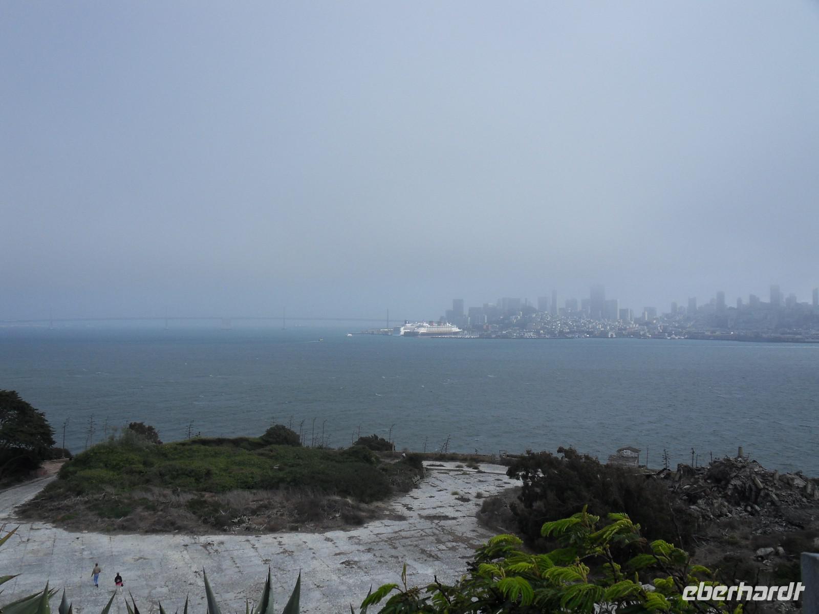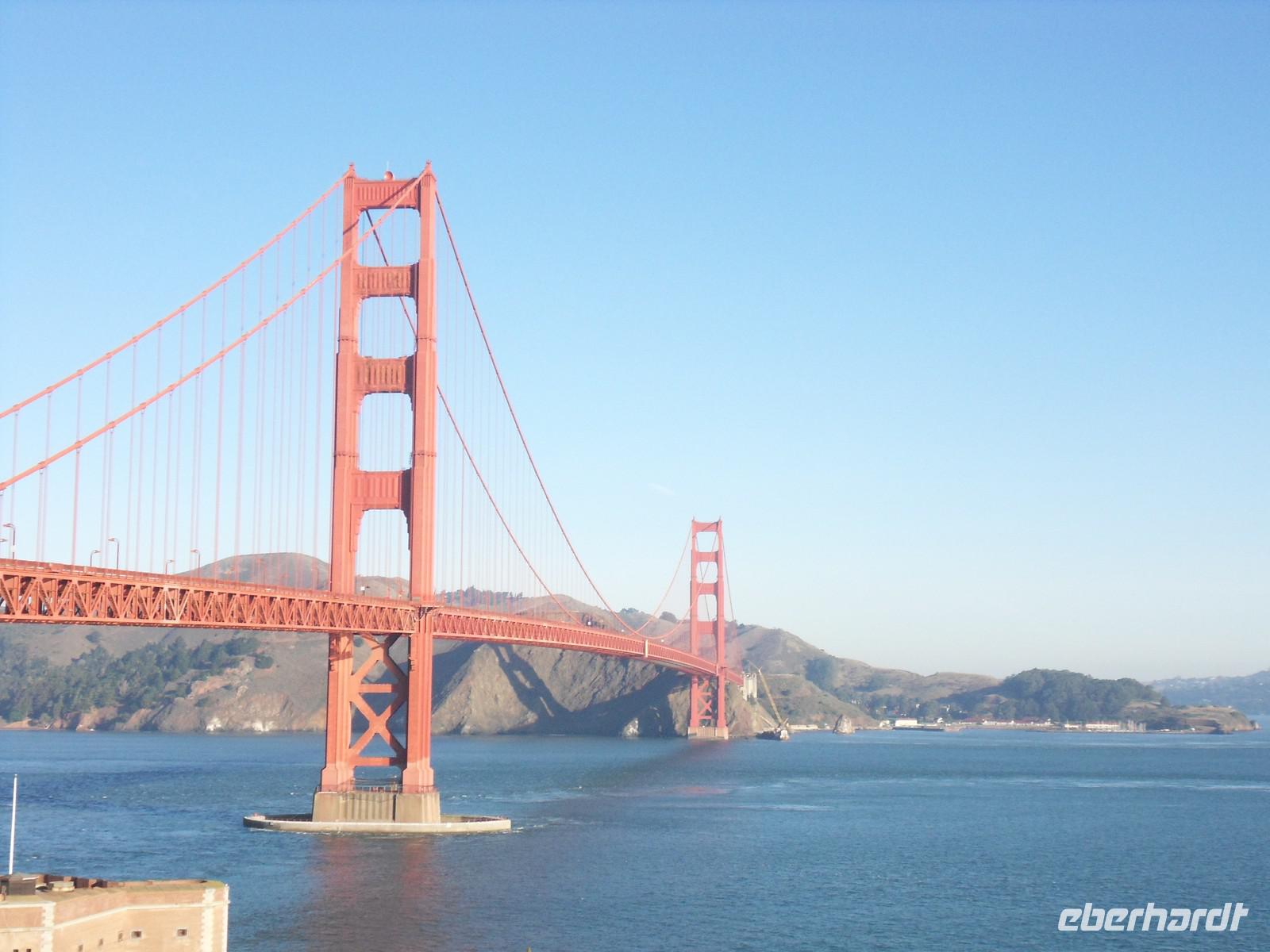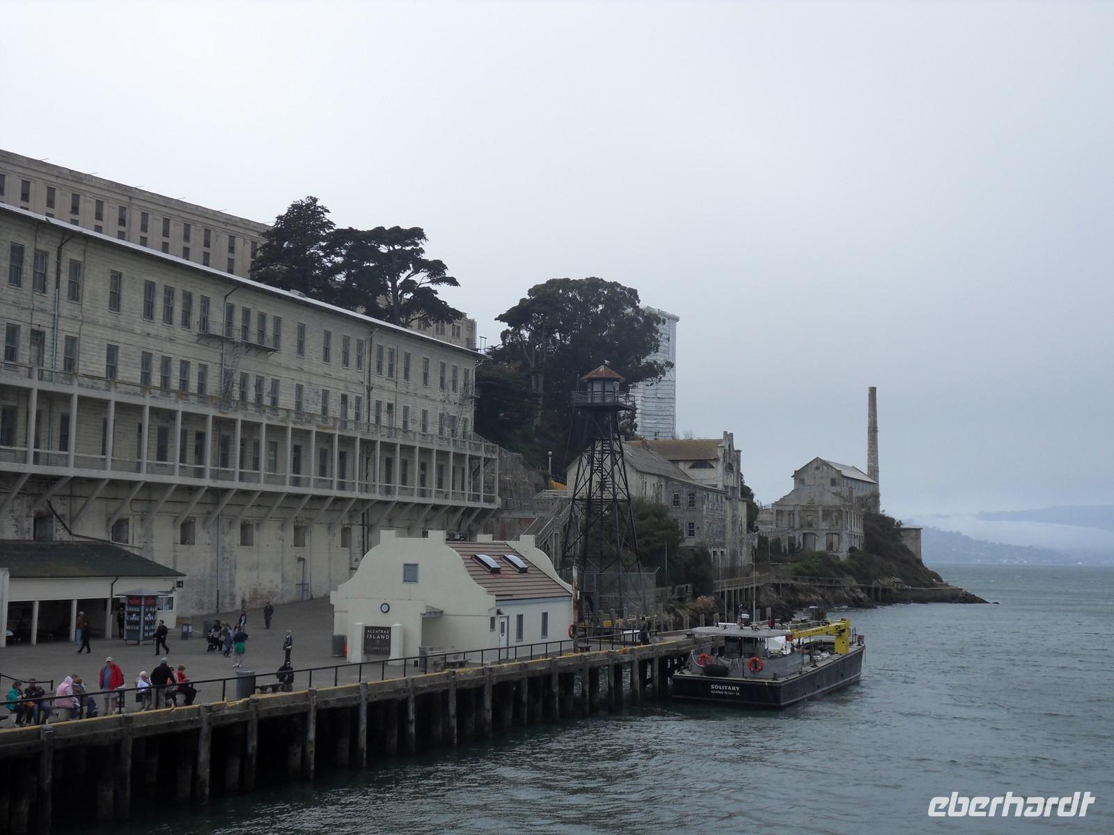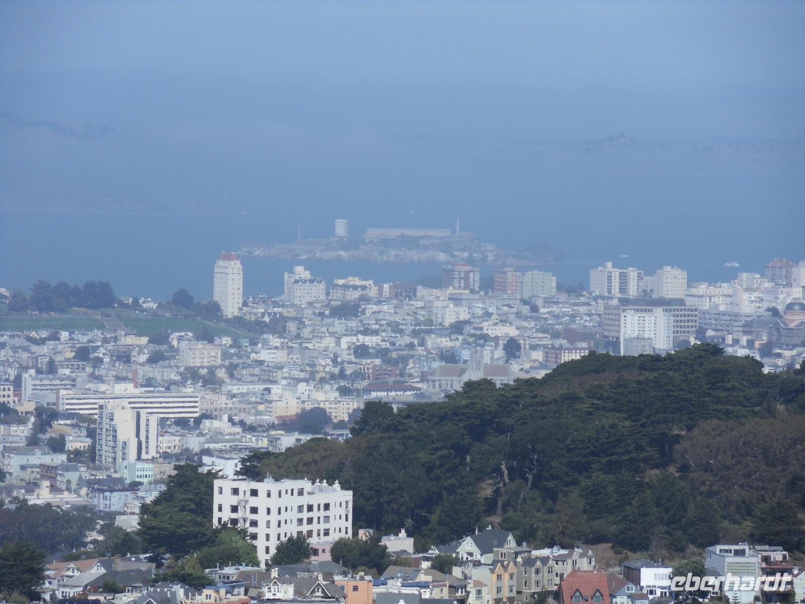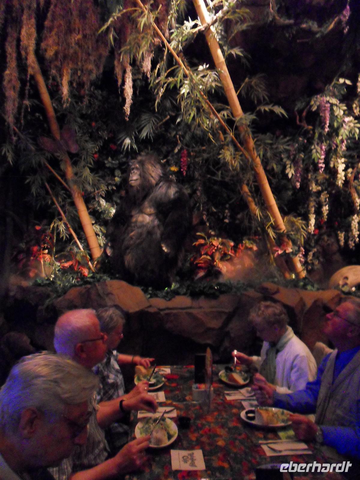 Der heutige Tag begann mit einem typisch amerikanischen Frühstück - nicht im Hotel, sondern in einem Pub um die Ecke. Es gibt Rührei, gebratenen Speck und Toast oder Pancakes. Typisch amerikanisch eben. Danach treffen wir unseren Reiseleiter Buddy am Hotel, der uns zum heutigen Teil der Stadtrundfahrt abholt. Zunächst sehen wir China Town und die moderne Kirche „St.Marys of the Assumption". Die Architektur der Kirche ist für uns zwar ungewöhnlich, aber wir haben Glück, denn wir erwischen den Organisten beim Üben. Nach einem Blick auf das italienische Viertel und einem Stopp zum Briefmarken kaufen beginnt noch vor dem Mittag unsere Fahrt mit dem motorisierten Cable Car, also einem historischen Cable Car auf einem LKW-ähnlichen Untersatz. Das gibt uns die Chance, nicht nur die „normalen Strecken" abzufahren, sondern auch bis hinaus zur Golden Gate Bridge zu fahren, die heute noch mehr im Nebel steckt als gestern. Beim Stopp am Fort unterhalb der Brücke kann man die gewaltigen Dimensionen so noch besser abschätzen. Während der Tour sehen wir auch die Wohnhäuser von Armeeoffizieren und das „Reichenviertel" sowie Nob Hill und nochmal China Town. Zum Aufwärmen ging es dann weiter ans Pier 39, wo uns ein Mittagessen mit Blick auf die Seelöwen erwartete. Unser nächster Programmpunkt begann dann am Pier 33 - die Überfahrt nach Alcatraz. Nach etwa 15 Min Fahrzeit erreichten wir die im Nebel gelegene Gefängnisinsel. Nachdem wir den steilen Hügel zum Zellenblock erklommen hatten, konnten wir mit einem Audiogerät „bewaffnet" einen Einblick in das Leben der Häftlinge und Wärter bekommen. Unten an der Anlagestelle gab es auch noch die Möglichkeit, sich einen Film anzuschauen, bevor wir zurück nach San Francisco fuhren, denn übernachten wollte hier niemand. Beim Abendessen wurde es heute tropisch: Im Rainforest (zu deutsch: Regenwald) Café wurden wir nicht nur mit reichlichen Portionen belohnt, sondern auch mit Showeinlagen von Affen, Elefanten und Leoparden beglückt.