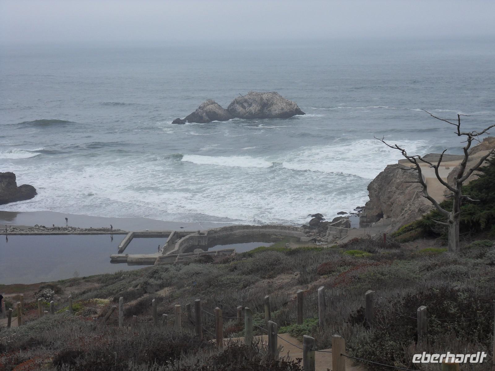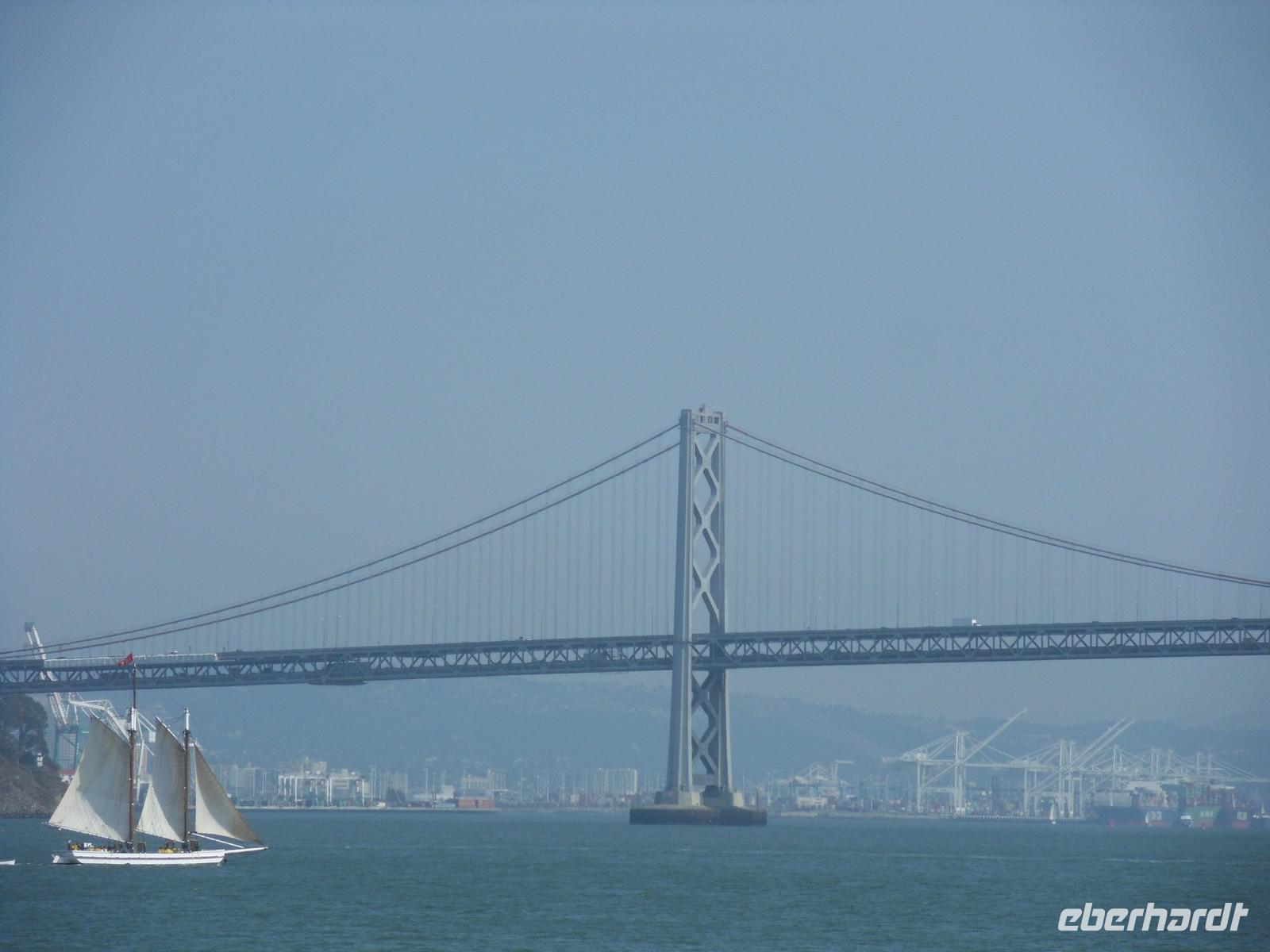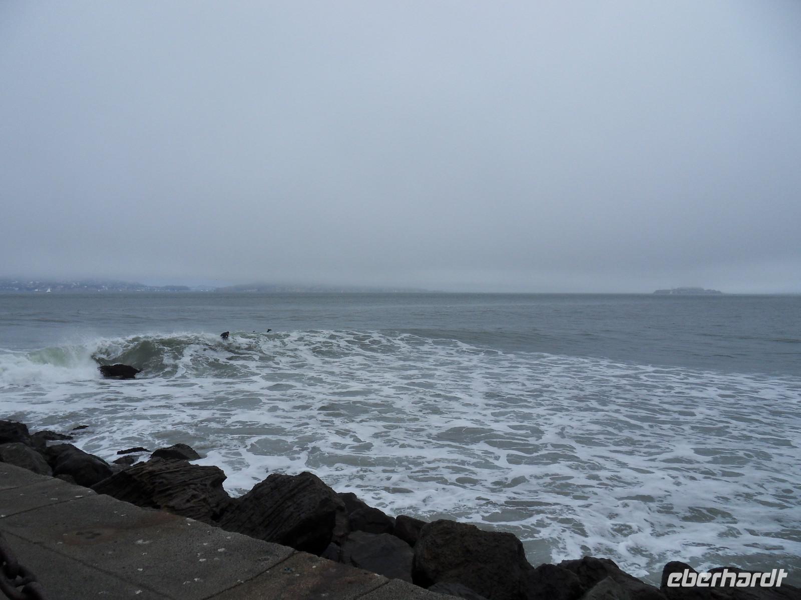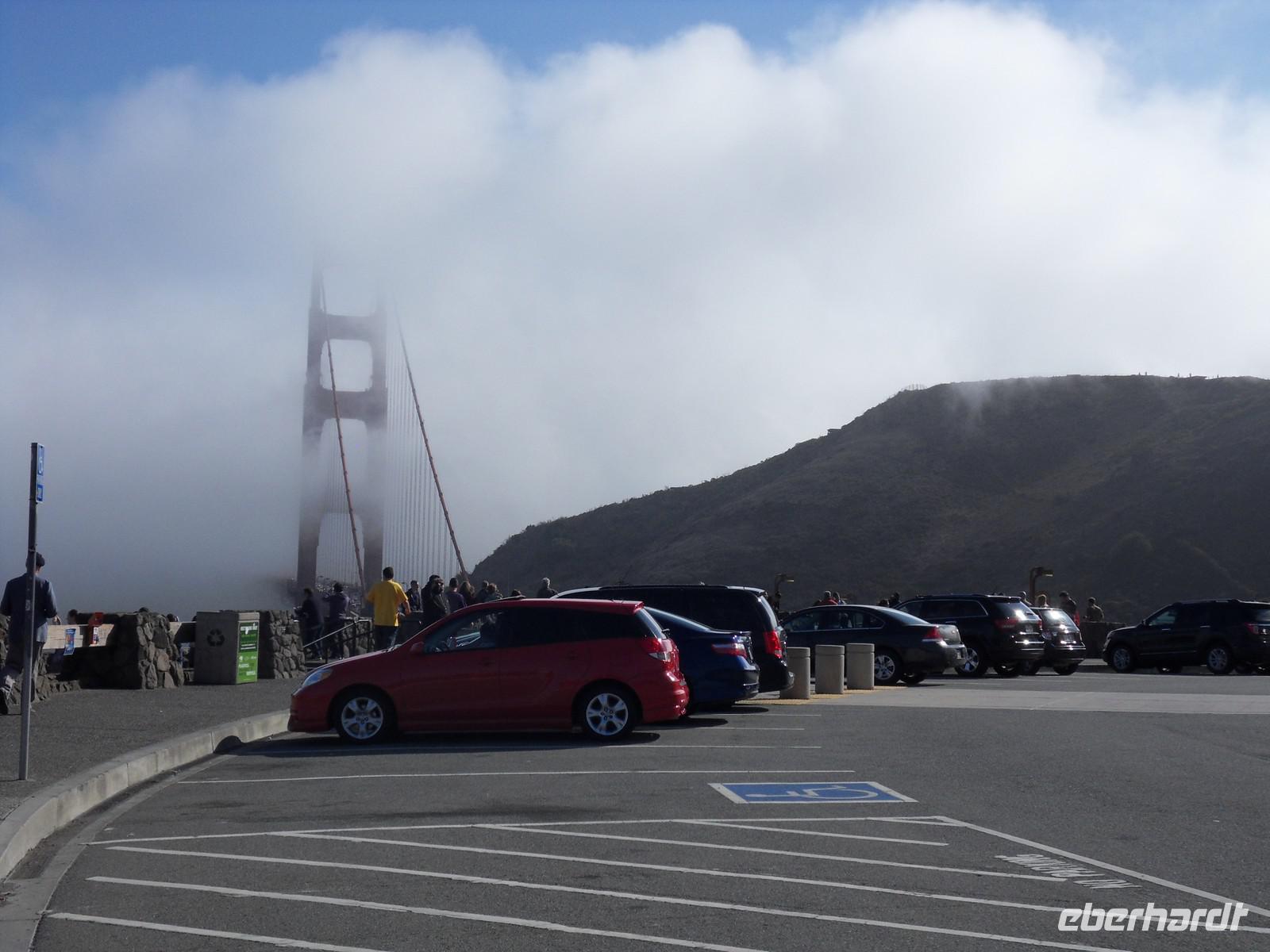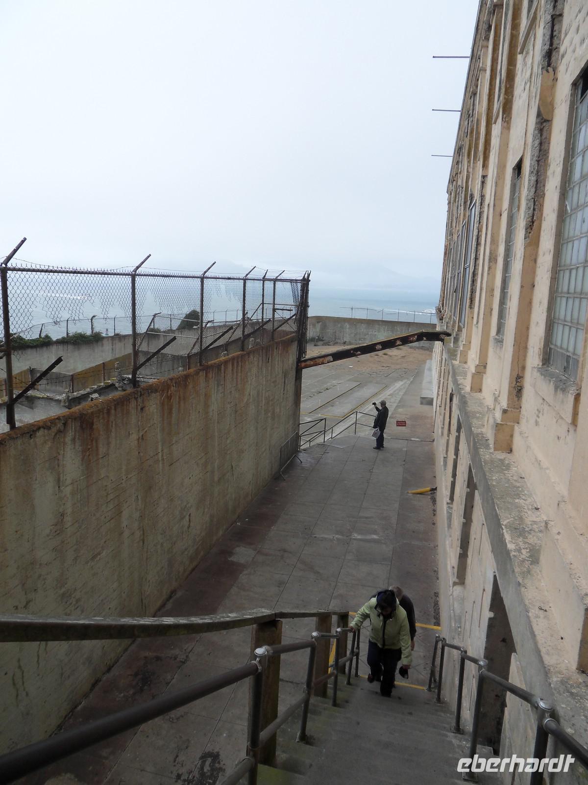 Der heutige Tag begann mit einem typisch amerikanischen Frühstück - nicht im Hotel, sondern in einem Pub um die Ecke. Es gibt Rührei, gebratenen Speck und Toast oder Pancakes. Typisch amerikanisch eben. Danach treffen wir unseren Reiseleiter Buddy am Hotel, der uns zum heutigen Teil der Stadtrundfahrt abholt. Zunächst sehen wir China Town und die moderne Kirche „St.Marys of the Assumption". Die Architektur der Kirche ist für uns zwar ungewöhnlich, aber wir haben Glück, denn wir erwischen den Organisten beim Üben. Nach einem Blick auf das italienische Viertel und einem Stopp zum Briefmarken kaufen beginnt noch vor dem Mittag unsere Fahrt mit dem motorisierten Cable Car, also einem historischen Cable Car auf einem LKW-ähnlichen Untersatz. Das gibt uns die Chance, nicht nur die „normalen Strecken" abzufahren, sondern auch bis hinaus zur Golden Gate Bridge zu fahren, die heute noch mehr im Nebel steckt als gestern. Beim Stopp am Fort unterhalb der Brücke kann man die gewaltigen Dimensionen so noch besser abschätzen. Während der Tour sehen wir auch die Wohnhäuser von Armeeoffizieren und das „Reichenviertel" sowie Nob Hill und nochmal China Town. Zum Aufwärmen ging es dann weiter ans Pier 39, wo uns ein Mittagessen mit Blick auf die Seelöwen erwartete. Unser nächster Programmpunkt begann dann am Pier 33 - die Überfahrt nach Alcatraz. Nach etwa 15 Min Fahrzeit erreichten wir die im Nebel gelegene Gefängnisinsel. Nachdem wir den steilen Hügel zum Zellenblock erklommen hatten, konnten wir mit einem Audiogerät „bewaffnet" einen Einblick in das Leben der Häftlinge und Wärter bekommen. Unten an der Anlagestelle gab es auch noch die Möglichkeit, sich einen Film anzuschauen, bevor wir zurück nach San Francisco fuhren, denn übernachten wollte hier niemand. Beim Abendessen wurde es heute tropisch: Im Rainforest (zu deutsch: Regenwald) Café wurden wir nicht nur mit reichlichen Portionen belohnt, sondern auch mit Showeinlagen von Affen, Elefanten und Leoparden beglückt.