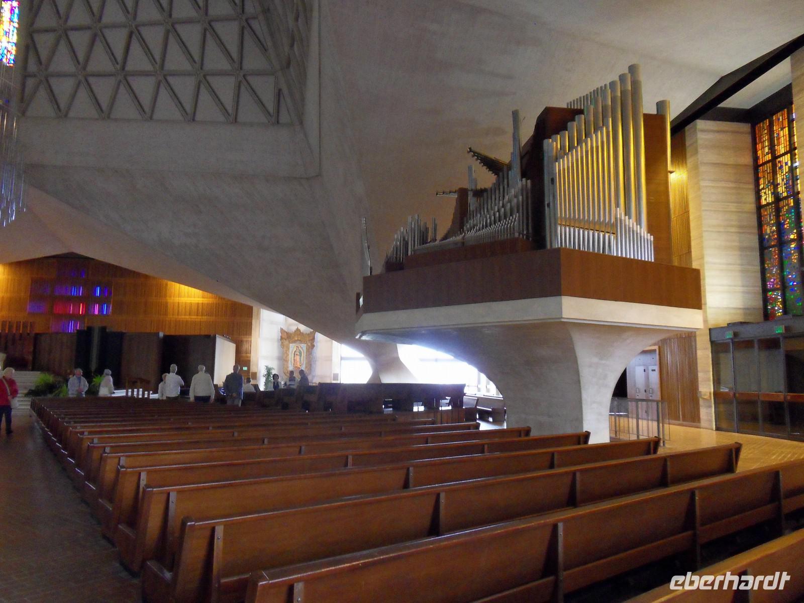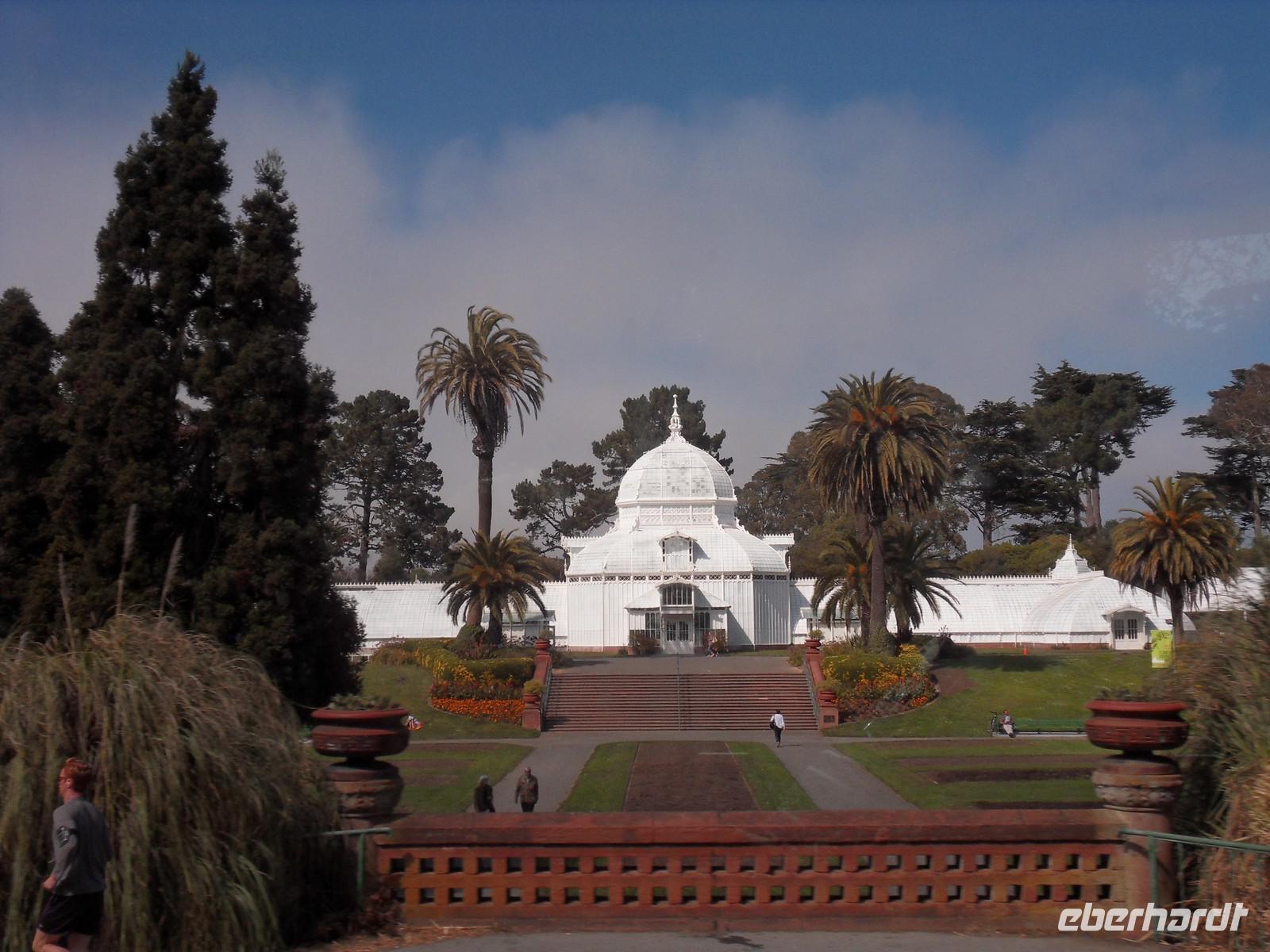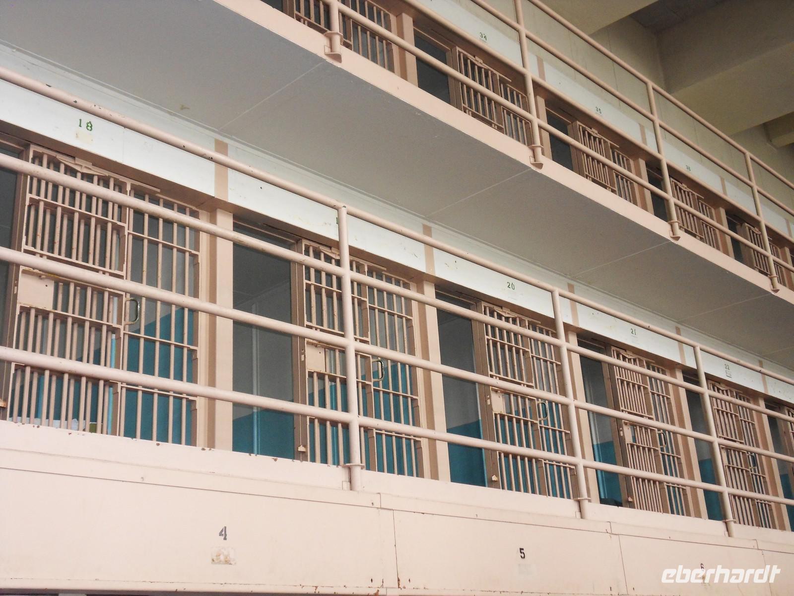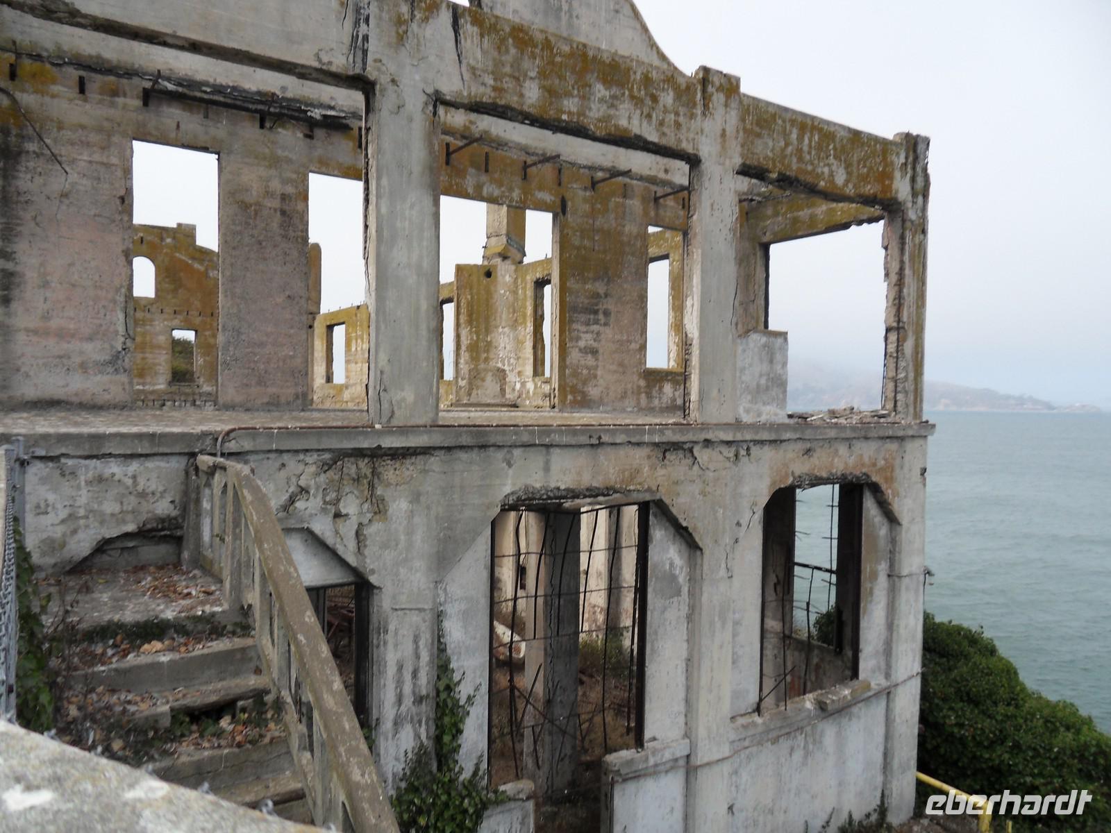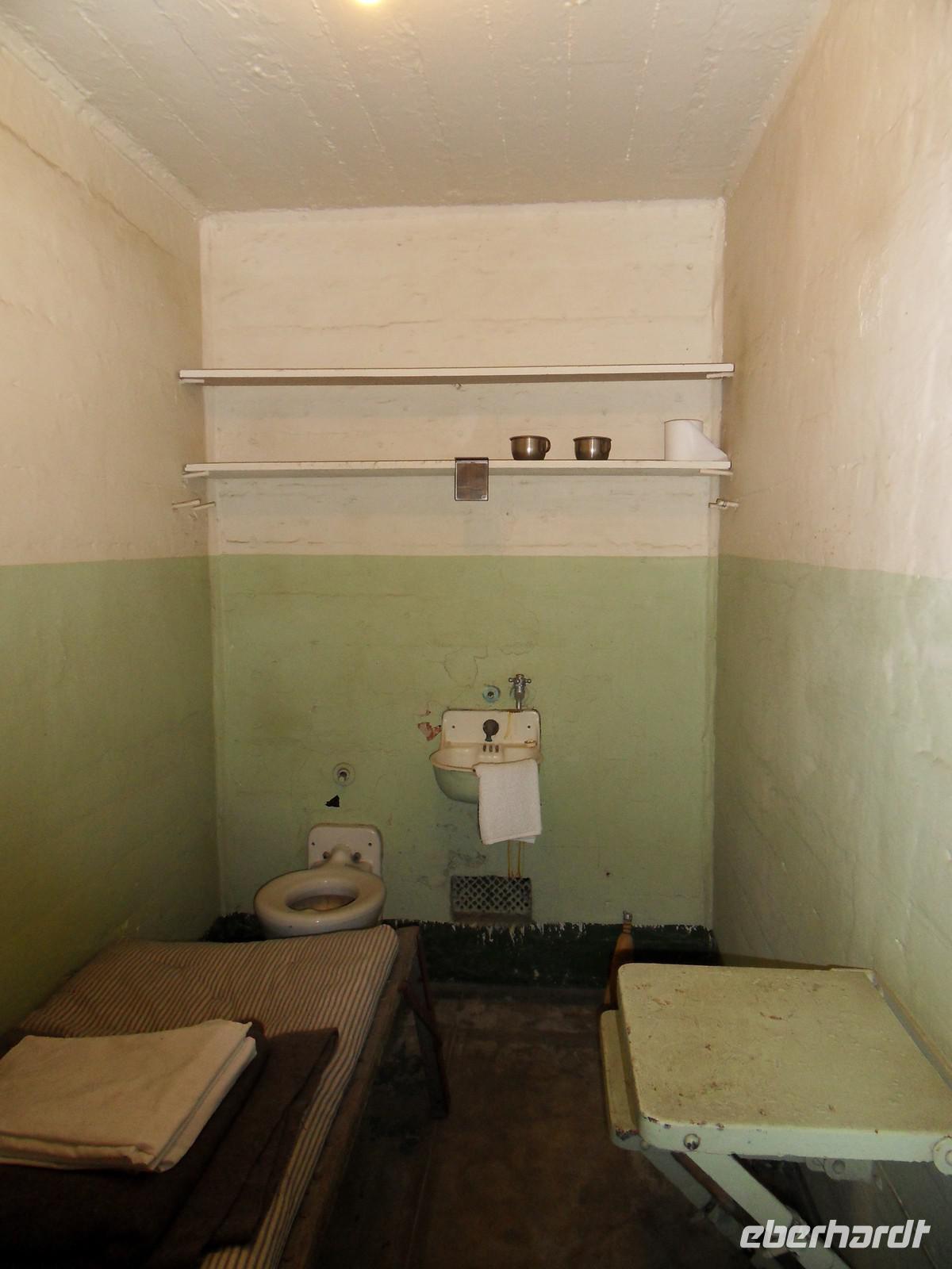 Der heutige Tag begann mit einem typisch amerikanischen Frühstück - nicht im Hotel, sondern in einem Pub um die Ecke. Es gibt Rührei, gebratenen Speck und Toast oder Pancakes. Typisch amerikanisch eben. Danach treffen wir unseren Reiseleiter Buddy am Hotel, der uns zum heutigen Teil der Stadtrundfahrt abholt. Zunächst sehen wir China Town und die moderne Kirche „St.Marys of the Assumption". Die Architektur der Kirche ist für uns zwar ungewöhnlich, aber wir haben Glück, denn wir erwischen den Organisten beim Üben. Nach einem Blick auf das italienische Viertel und einem Stopp zum Briefmarken kaufen beginnt noch vor dem Mittag unsere Fahrt mit dem motorisierten Cable Car, also einem historischen Cable Car auf einem LKW-ähnlichen Untersatz. Das gibt uns die Chance, nicht nur die „normalen Strecken" abzufahren, sondern auch bis hinaus zur Golden Gate Bridge zu fahren, die heute noch mehr im Nebel steckt als gestern. Beim Stopp am Fort unterhalb der Brücke kann man die gewaltigen Dimensionen so noch besser abschätzen. Während der Tour sehen wir auch die Wohnhäuser von Armeeoffizieren und das „Reichenviertel" sowie Nob Hill und nochmal China Town. Zum Aufwärmen ging es dann weiter ans Pier 39, wo uns ein Mittagessen mit Blick auf die Seelöwen erwartete. Unser nächster Programmpunkt begann dann am Pier 33 - die Überfahrt nach Alcatraz. Nach etwa 15 Min Fahrzeit erreichten wir die im Nebel gelegene Gefängnisinsel. Nachdem wir den steilen Hügel zum Zellenblock erklommen hatten, konnten wir mit einem Audiogerät „bewaffnet" einen Einblick in das Leben der Häftlinge und Wärter bekommen. Unten an der Anlagestelle gab es auch noch die Möglichkeit, sich einen Film anzuschauen, bevor wir zurück nach San Francisco fuhren, denn übernachten wollte hier niemand. Beim Abendessen wurde es heute tropisch: Im Rainforest (zu deutsch: Regenwald) Café wurden wir nicht nur mit reichlichen Portionen belohnt, sondern auch mit Showeinlagen von Affen, Elefanten und Leoparden beglückt.