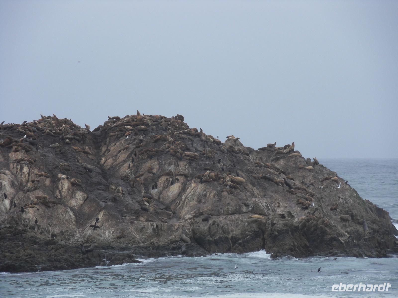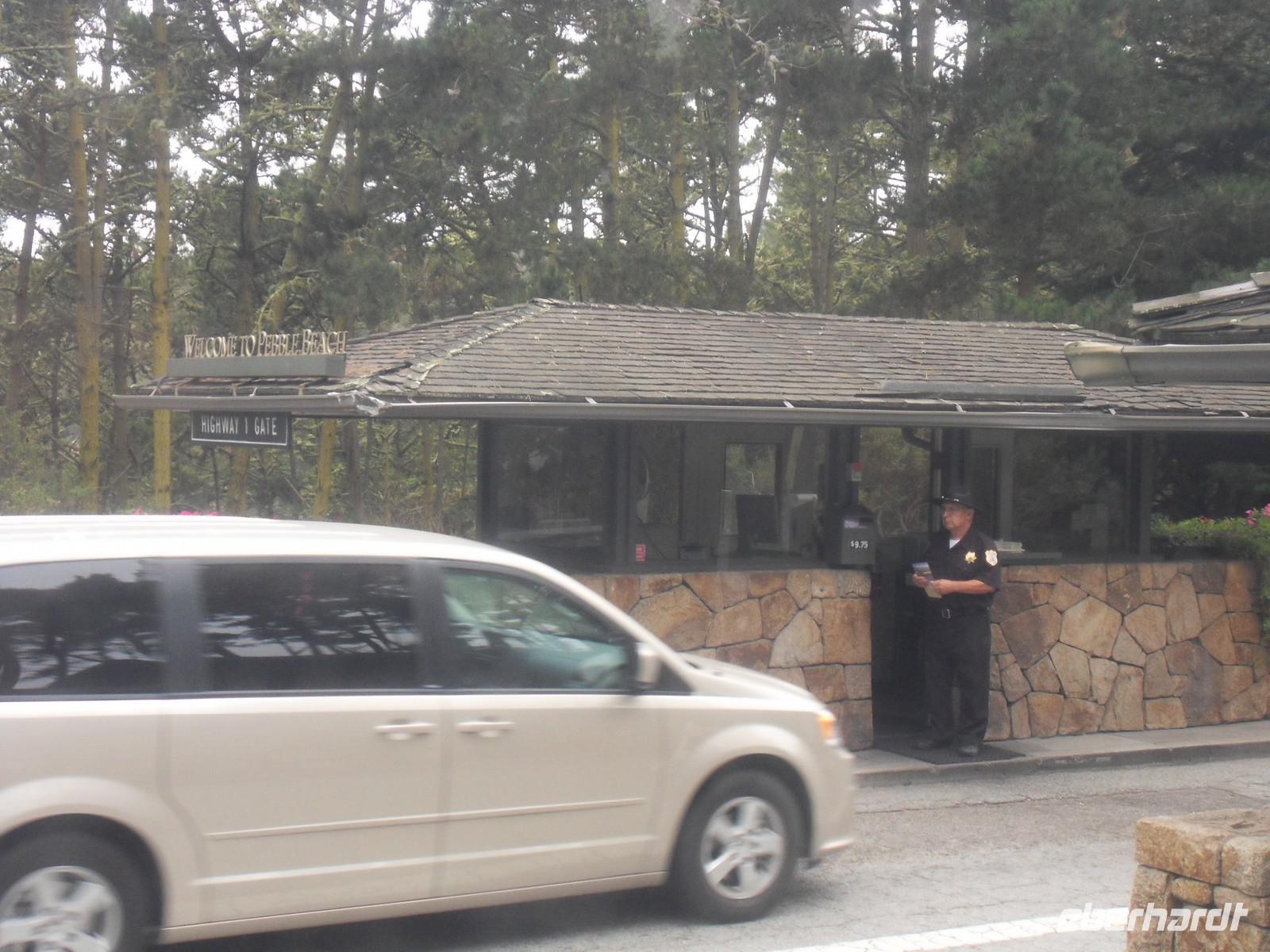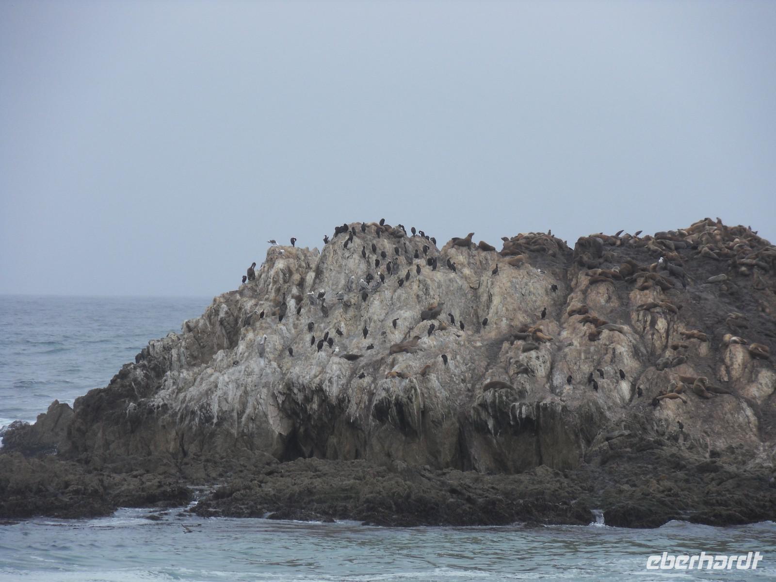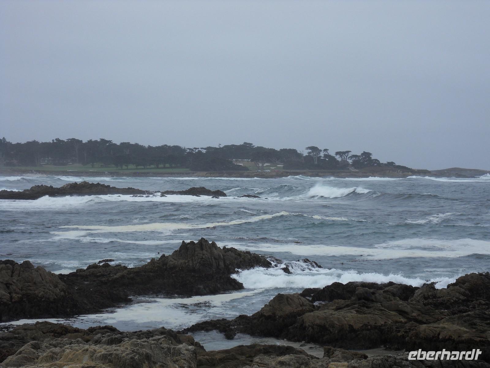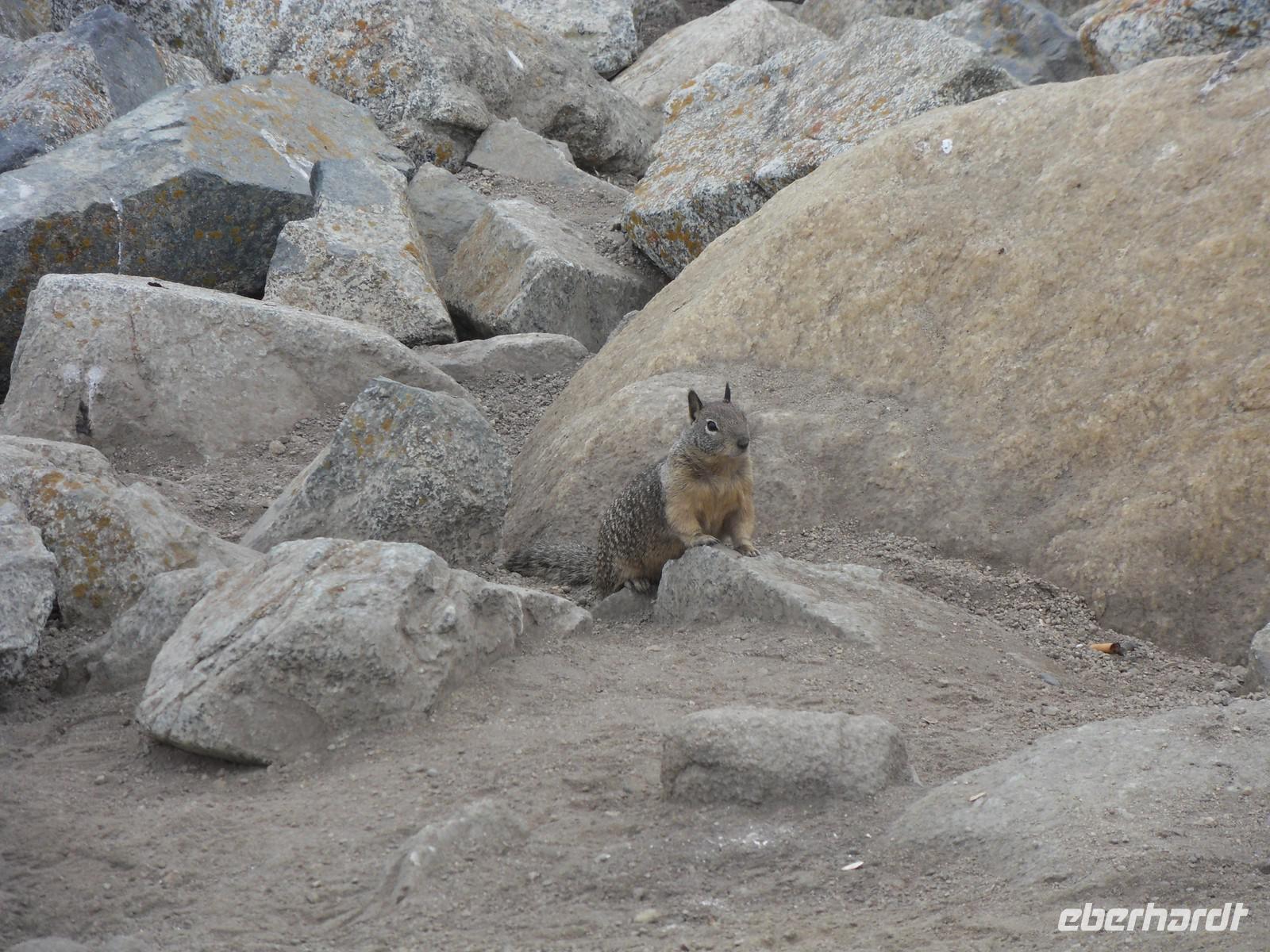 Am dritten Tag unserer Reise mussten wir uns zunächst von San Francisco verabschieden. Vorbei an Rosenkohl-, Artischocken- und Erdbeerfeldern und der Half Moon Bay ging es weiter die Küste entlang in Richtung Süden. Unsere Begleiter waren nicht nur Buddy und unser Busfahrer Michael, sondern auch der Nebel, der hartnäckig an der Küste klebte. Doch einiges sehen wir trotzdem: Wellen brechen sich an Felsen, die Strände sind leer, trotz des „Sommerwetters", wie Buddy betont. Maximal sehen wir ein paar Surfer. Da lohnt sich doch die Kaffeepause in Davenport. Zunächst geht es vorbei an Monterey bis zum 17 Mile Drive und Pebble Beach. Einer unserer Fotostopps liegt direkt an der „einsamen Zypresse", ein anderer am sogenannten „Vogelfelsen", der auch von Seelöwen beansprucht wird und wo wir am Strand von neugierigen Eichhörnchen beäugt werden. Weiter geht es nach Carmel, wo es keine Adressen gibt, sondern die Häuser Namen haben; daher muss man sich seine Post selbst beim Postamt abholen. Hier haben wir Freizeit, um in einem der kleinen Cafés ein Mittagessen einzunehmen oder die Ocean Avenue entlang zu bummeln. Wer möchte, konnte auch den Hügel hinab zum Strand spazieren. Am Nachmittag bezogen wir dann unsere Zimmer in Monterey, bevor wir zum Essen in die Stadt fuhren. Hier konnten wir vor dem Abendessen noch einen Blick auf die „Straße der Ölsardinen" werfen, denen John Steinbeck ein literarisches Denkmal setzte. Den Abend ließen wir beim leckeren Essen im Restaurant „Bubba Gump Shrimp" mit Blick auf den Hafen ausklingen.