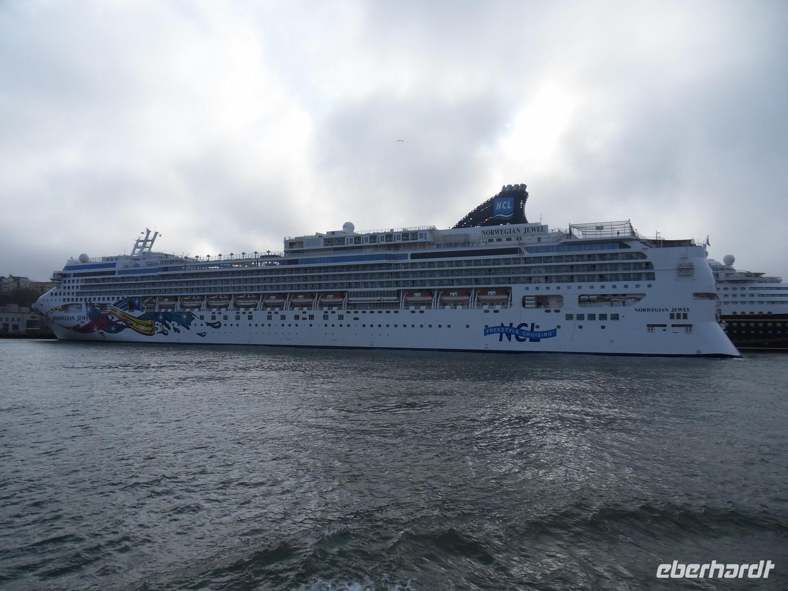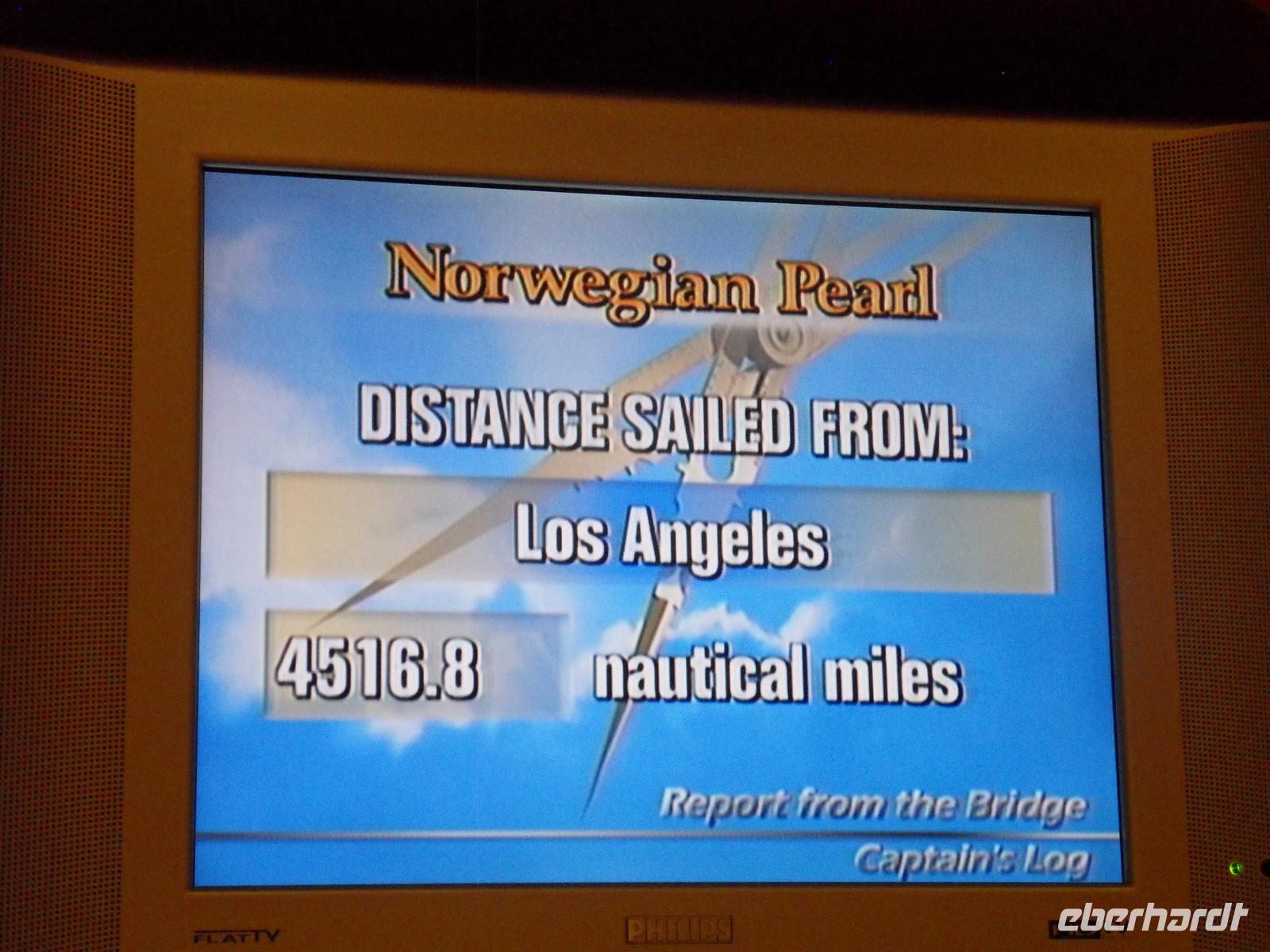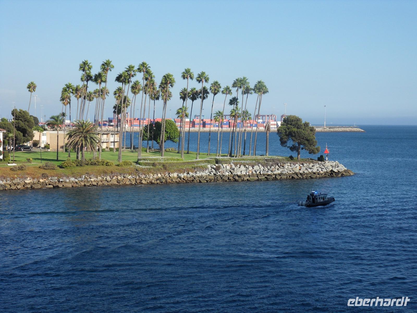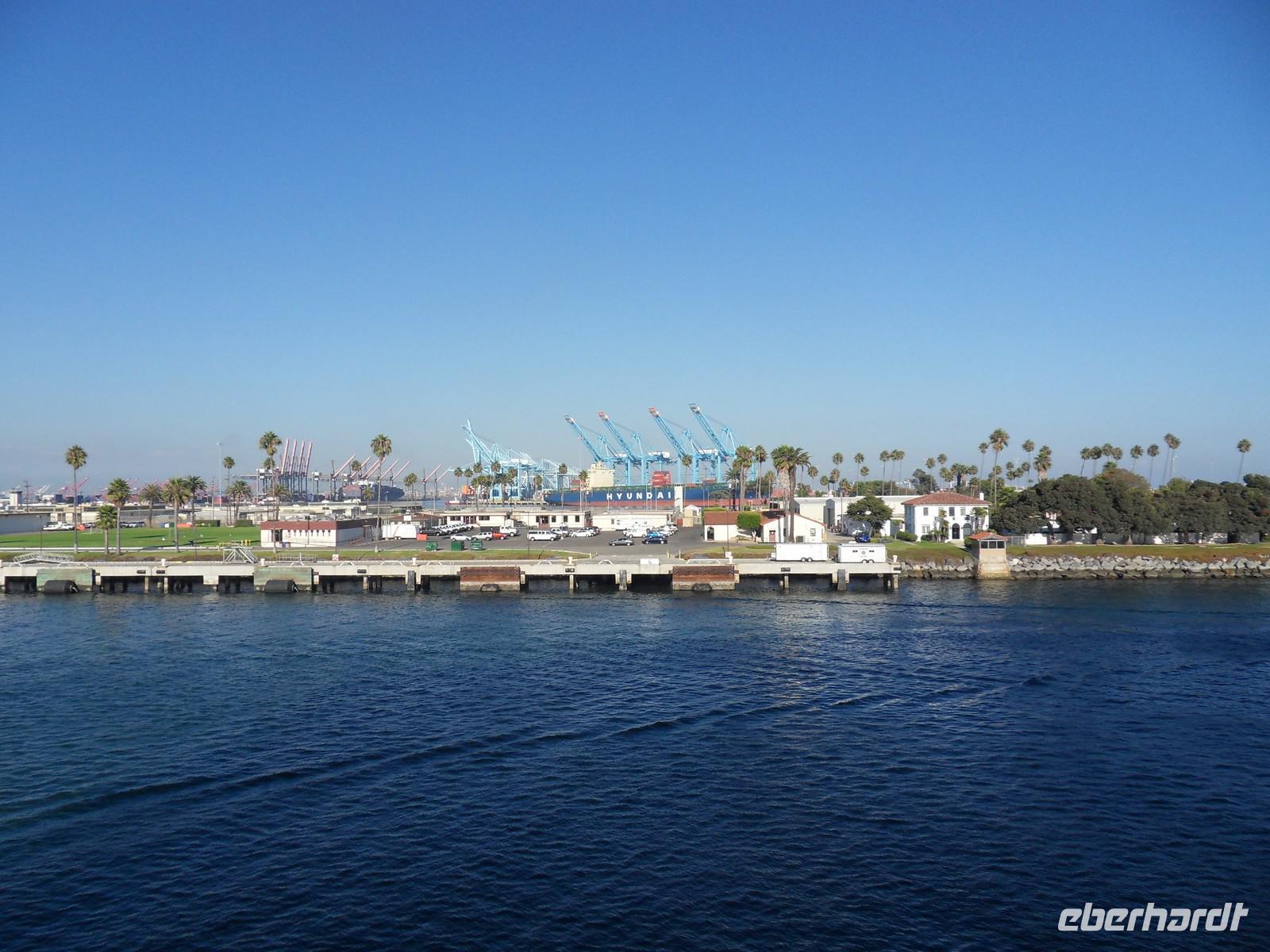 Den Morgen hatten wir heute zur freien Verfügung, denn wir wurden erst um 11 Uhr vom Hotel abgeholt. So konnten wir in aller Ruhe frühstücken und den Koffer zum vorerst letzten Mal schließen. Marion begleitet uns heute auf dem Weg zum Hafen von Los Angeles und erzählt wie alle Reiseleiter von Filmen, die hier gedreht wurden, oder in welchen Stadtteilen man sich nachts lieber nicht aufhalten sollte. Am Hafen angekommen, wurden uns sogleich die Koffer abgenommen, so dass wir uns nur noch dem Check-In und der Sicherheitskontrolle zu stellen hatten. Alles verlief zügig, so dass wir schnell auf unseren Kabinen waren, um das Handgepäck abzustellen. Die Koffer wurden erst im Laufe des Abends gebracht. Das Ablegen und die Ausfahrt aus dem Hafen konnten wir dann nach absolvierter Seenotrettungsübung in Ruhe genießen, bevor wir uns zum ersten gemeinsamen Abendessen an Bord trafen. Nach dem Abendessen gab es noch einen kleinen „Begrüßungssekt" an Bord - so kann die Kreuzfahrt also beginnen!