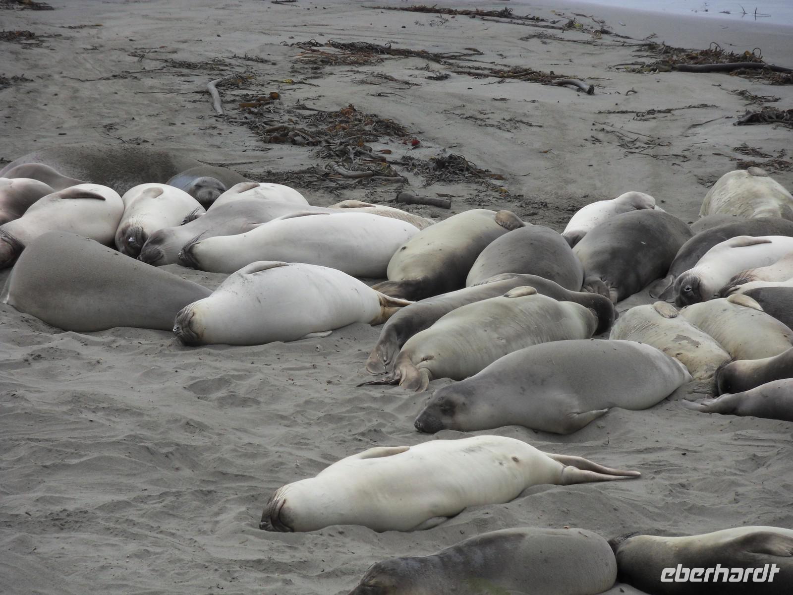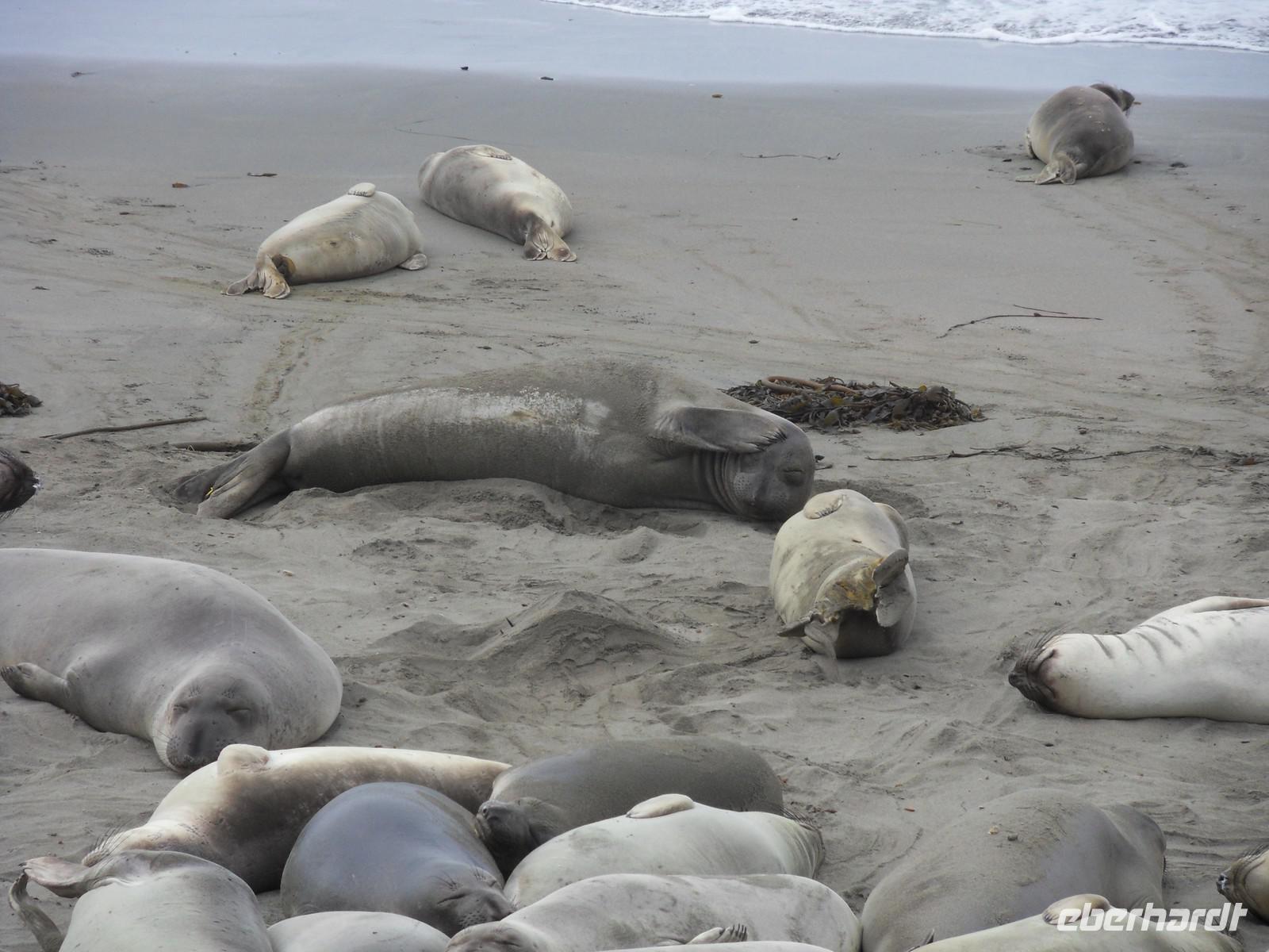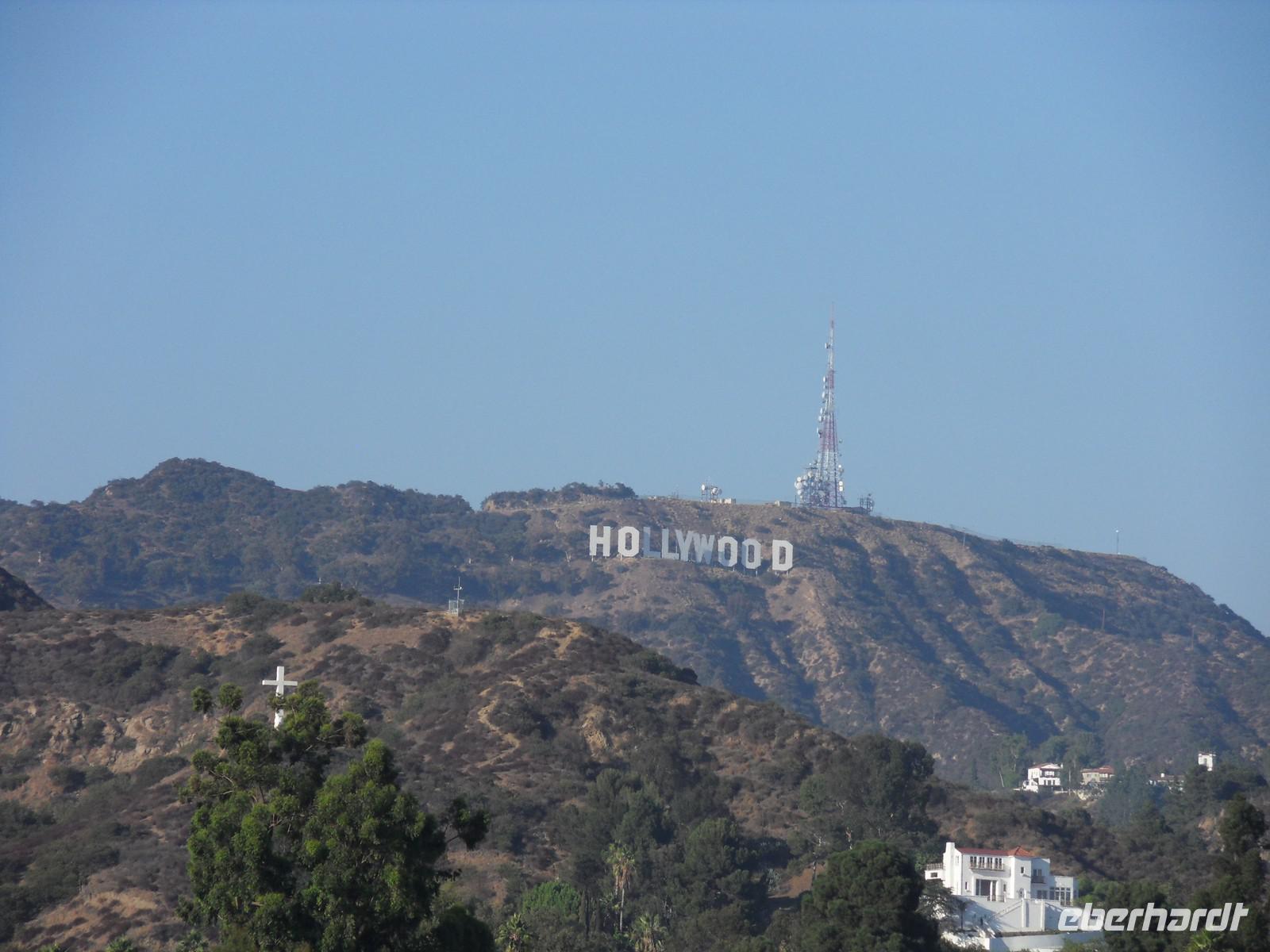Der heutige Tag begann nicht früher als gewöhnlich, doch heute hatten wir viel Strecke zu bewältigen. Schließlich liegen zwischen Monterey und Los Angeles - unserem heutigen Ziel - über 330 Meilen. Unterwegs sahen wir Sequoia-Bäume, die im Gegensatz zu den breiten Mammutbäumen in der Sierra Nevada hoch, aber vor allem relativ schlank sind. Für kurze Zeit sehen wir heute Tag die Sonne, aber unser Busfahrer Michael sollte Recht behalten, schließlich hat der auch die ganz besondere Brille auf!! ;) Doch den größten Teil des Tages klebt Nebel an den Bergen und der Küste, teilweise haben wir unter 100 m Sicht, so dass wir leider nur wenig von der Küstenschönheit wahrnehmen können. Manchmal sehen wir jedoch, wie steil die Straßen an den Rand der Berge geklebt wurden. Mit dem Touristengebet geht es doch gleich viel besser voran, und dann genießen wir den Fotostopp bei den Seeelefanten. Diese haben mit 80% die fetteste Milch aller Säugetiere. Und obwohl sie da sehr entspannt herumlagen, wollte niemand von uns am Strand liegen, während sich ein Seeelefant über die anderen robbte. Zum späten Mittagessen gab es Pea Soup - Erbsensuppe und auf unserem weiteren Weg in Richtung Süden entdeckten wir bei Santa Barbara die wild-romantisch im Meer gelegenen Erdöl-Plattformen. Doch zum Glück gab es endlich etwas Sonne für unsere nebelgebeutelten Gemüter. In Los Angeles angekommen, war unser erster Stopp der Walk of Fame mit den im Boden eingelassenen „Stars und Sternchen". Auch ein Foto des berühmten Schriftzugs in den Hollywood Hills durfte hier nicht fehlen. Mit deftiger, bayrischer Blasmusik wurden wir verabschiedet, und es dauerte schon eine Weile, bis wir im Stadtzentrum, in Downtown L.A. angekommen waren. Bevor wir im Hotel ankamen, sahen wir noch den Dorothy Chandler Pavillion, die Walt Disney Concert Hall und konnten einen Blick auf das Rathaus der Stadt riskieren. Nichts konnte uns jedoch auf das vorbereiten, was noch kam: Das Hotel des heutigen Abends war einfach riesengroß. Schon der Weg zur Rezeption war schwierig, noch dazu mit Gepäck, aber schon allein der Fakt, dass es 4 farbig markierte Aufzüge gab, und wir auf alle verteilt waren, machte das Treffen zum Abendessen nicht leicht. Letzten Endes fanden wir uns aber alle wieder - und die Aussicht von den gläsernen Aufzügen und unseren Zimmern im 24.Stock war einfach atemberaubend. Nach dem Abendessen hieß es nun Abschied nehmen, diesmal von Buddy, unserem Reiseleiter der letzten 4 Tage, der leider nicht mit uns auf Kreuzfahrt gehen konnte.