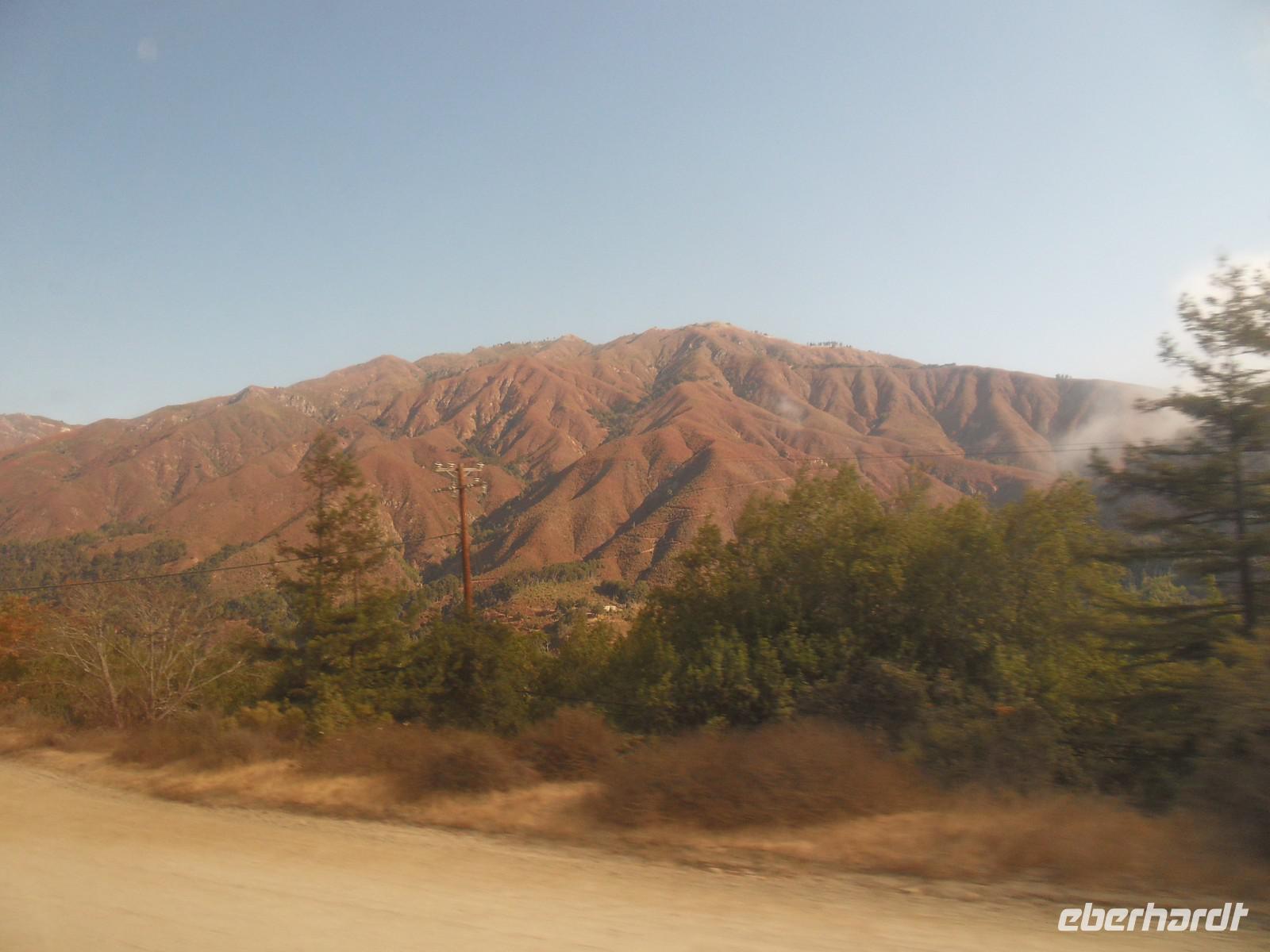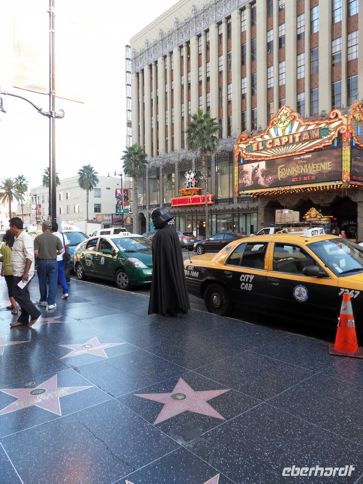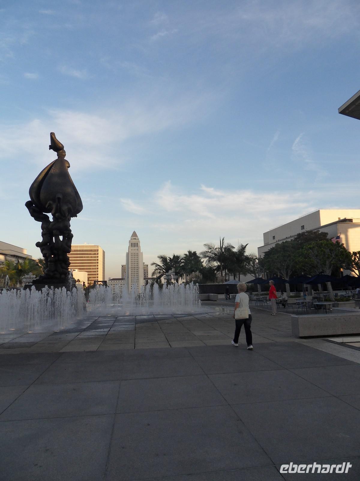 Der heutige Tag begann nicht früher als gewöhnlich, doch heute hatten wir viel Strecke zu bewältigen. Schließlich liegen zwischen Monterey und Los Angeles - unserem heutigen Ziel - über 330 Meilen. Unterwegs sahen wir Sequoia-Bäume, die im Gegensatz zu den breiten Mammutbäumen in der Sierra Nevada hoch, aber vor allem relativ schlank sind. Für kurze Zeit sehen wir heute Tag die Sonne, aber unser Busfahrer Michael sollte Recht behalten, schließlich hat der auch die ganz besondere Brille auf!! ;) Doch den größten Teil des Tages klebt Nebel an den Bergen und der Küste, teilweise haben wir unter 100 m Sicht, so dass wir leider nur wenig von der Küstenschönheit wahrnehmen können. Manchmal sehen wir jedoch, wie steil die Straßen an den Rand der Berge geklebt wurden. Mit dem Touristengebet geht es doch gleich viel besser voran, und dann genießen wir den Fotostopp bei den Seeelefanten. Diese haben mit 80% die fetteste Milch aller Säugetiere. Und obwohl sie da sehr entspannt herumlagen, wollte niemand von uns am Strand liegen, während sich ein Seeelefant über die anderen robbte. Zum späten Mittagessen gab es Pea Soup - Erbsensuppe und auf unserem weiteren Weg in Richtung Süden entdeckten wir bei Santa Barbara die wild-romantisch im Meer gelegenen Erdöl-Plattformen. Doch zum Glück gab es endlich etwas Sonne für unsere nebelgebeutelten Gemüter. In Los Angeles angekommen, war unser erster Stopp der Walk of Fame mit den im Boden eingelassenen „Stars und Sternchen". Auch ein Foto des berühmten Schriftzugs in den Hollywood Hills durfte hier nicht fehlen. Mit deftiger, bayrischer Blasmusik wurden wir verabschiedet, und es dauerte schon eine Weile, bis wir im Stadtzentrum, in Downtown L.A. angekommen waren. Bevor wir im Hotel ankamen, sahen wir noch den Dorothy Chandler Pavillion, die Walt Disney Concert Hall und konnten einen Blick auf das Rathaus der Stadt riskieren. Nichts konnte uns jedoch auf das vorbereiten, was noch kam: Das Hotel des heutigen Abends war einfach riesengroß. Schon der Weg zur Rezeption war schwierig, noch dazu mit Gepäck, aber schon allein der Fakt, dass es 4 farbig markierte Aufzüge gab, und wir auf alle verteilt waren, machte das Treffen zum Abendessen nicht leicht. Letzten Endes fanden wir uns aber alle wieder - und die Aussicht von den gläsernen Aufzügen und unseren Zimmern im 24.Stock war einfach atemberaubend. Nach dem Abendessen hieß es nun Abschied nehmen, diesmal von Buddy, unserem Reiseleiter der letzten 4 Tage, der leider nicht mit uns auf Kreuzfahrt gehen konnte.