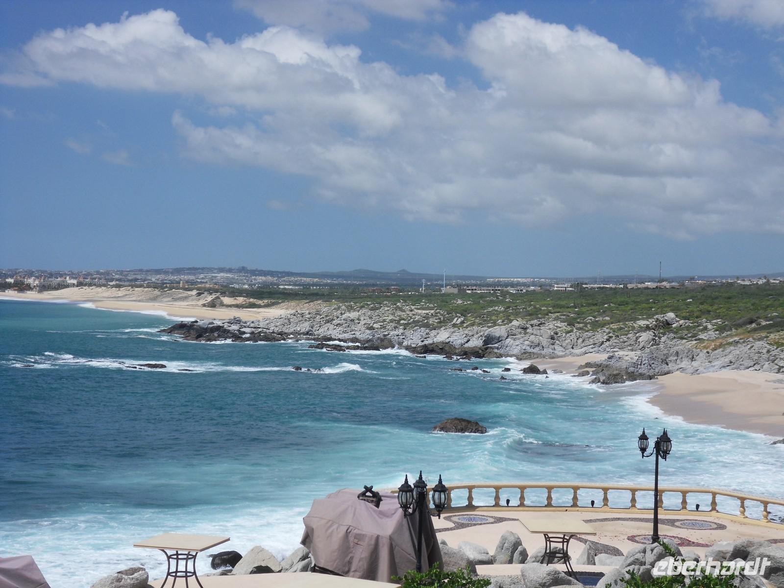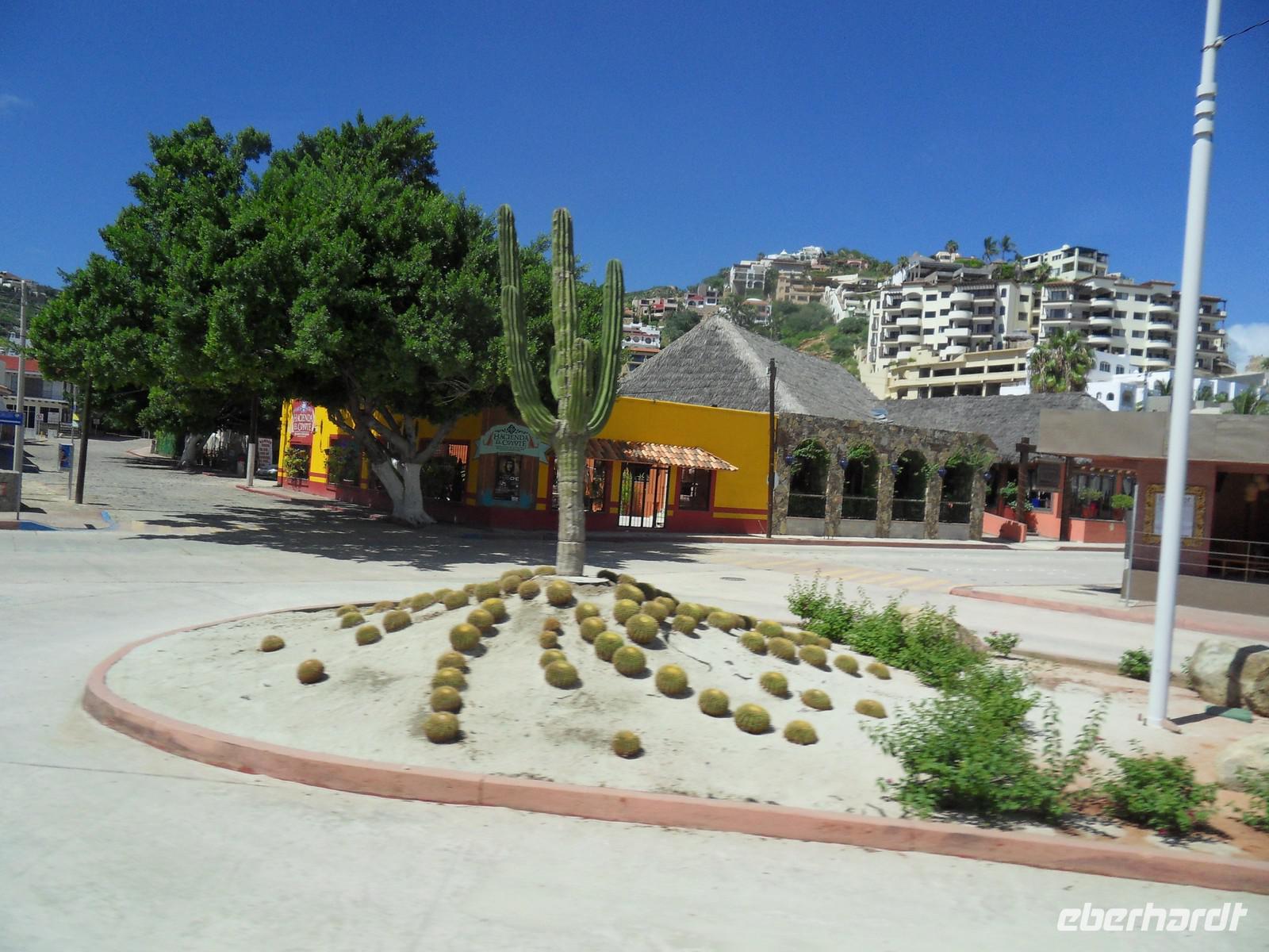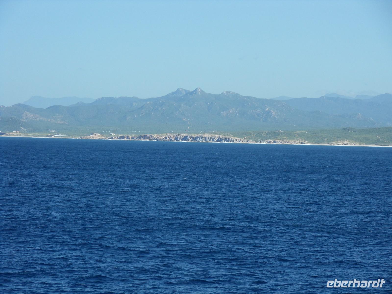 Nach einem individuellen Frühstück legten wir am späten Vormittag in Cabo San Lucas, Mexiko, an. Da alle Reisegäste unserer Gruppe den gleichen Ausflug gebucht hatten, war der Treff einfach. Gegen Mittag verließen wir das Schiff, auf Tenderbooten, die uns zum mexikanischen Festland brachten. Hier wurden wir schon von Memo, unserem Guide des heutigen Tages erwartet. Nachdem wir alle im Bus Platz genommen haben, erzählt uns Memo von den wichtigsten Einnahmequellen der Gegend: Tourismus, Golf und Hochseefischen. Alles davon schaffen wir natürlich nicht an einem Tag, so dass wir lieber zu einem schönen Aussichtspunkt am Meer fahren, wo eine kühle Erfrischung auf uns wartet und wir sogar die Norwegian Pearl in der Bucht ankern sehen können. Weiter geht es nach San José del Cabo, wo auf Grund des Nationalfeiertages alles in Rot-Weiß-Grün geschmückt ist. Hier können wir die Kirche besichtigen und in den Geschäften ringsum schlendern. Überall gibt es Skelette in Kleidern oder Uniformen zu kaufen. Darauf angesprochen erklärt Memo, dass diese Figuren den Mexikanern vor Augen halten, wie nah Leben und Tod beieinander sind. Zudem erklärt er uns, dass die Mexikaner Allerseelen feiern, indem sie mit den Toten auf dem Friedhof essen und trinken. Nach dem Besuch einer örtlichen Glasbläserei sehen wir den Kakteengarten von Cabo San Lucas und das Walskelett, dass hier in der Ortsmitte ausgestellt ist. Bevor es zurück zum Schiff geht, bekommen wir aber noch die obligatorische Tequila-Probe.