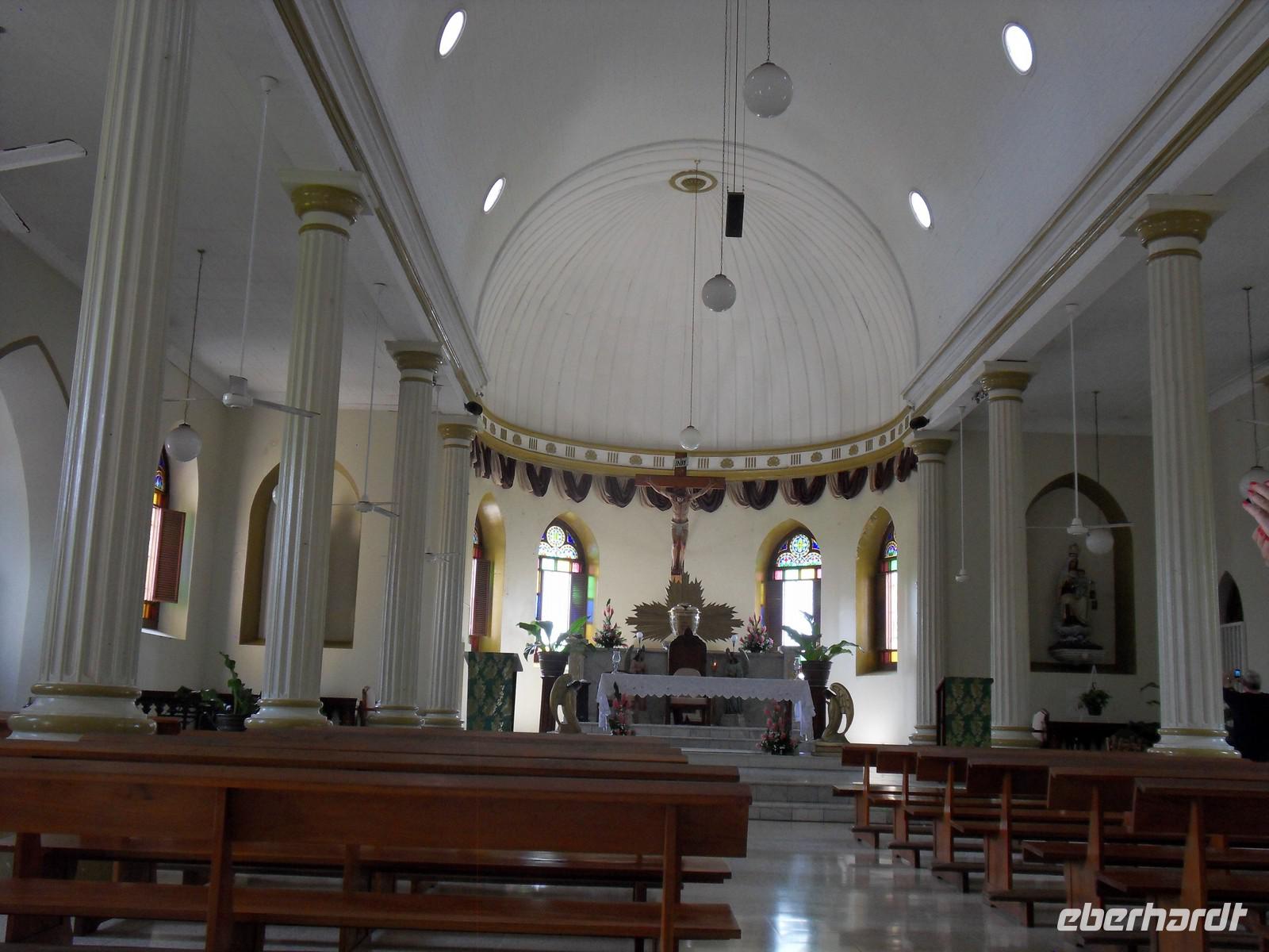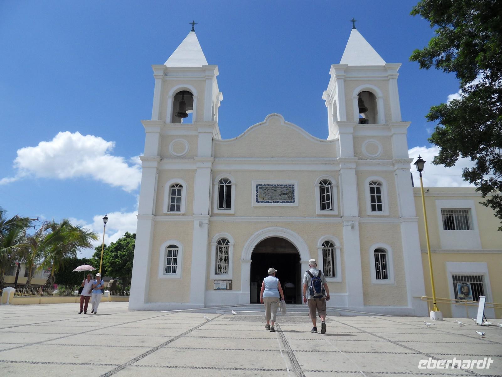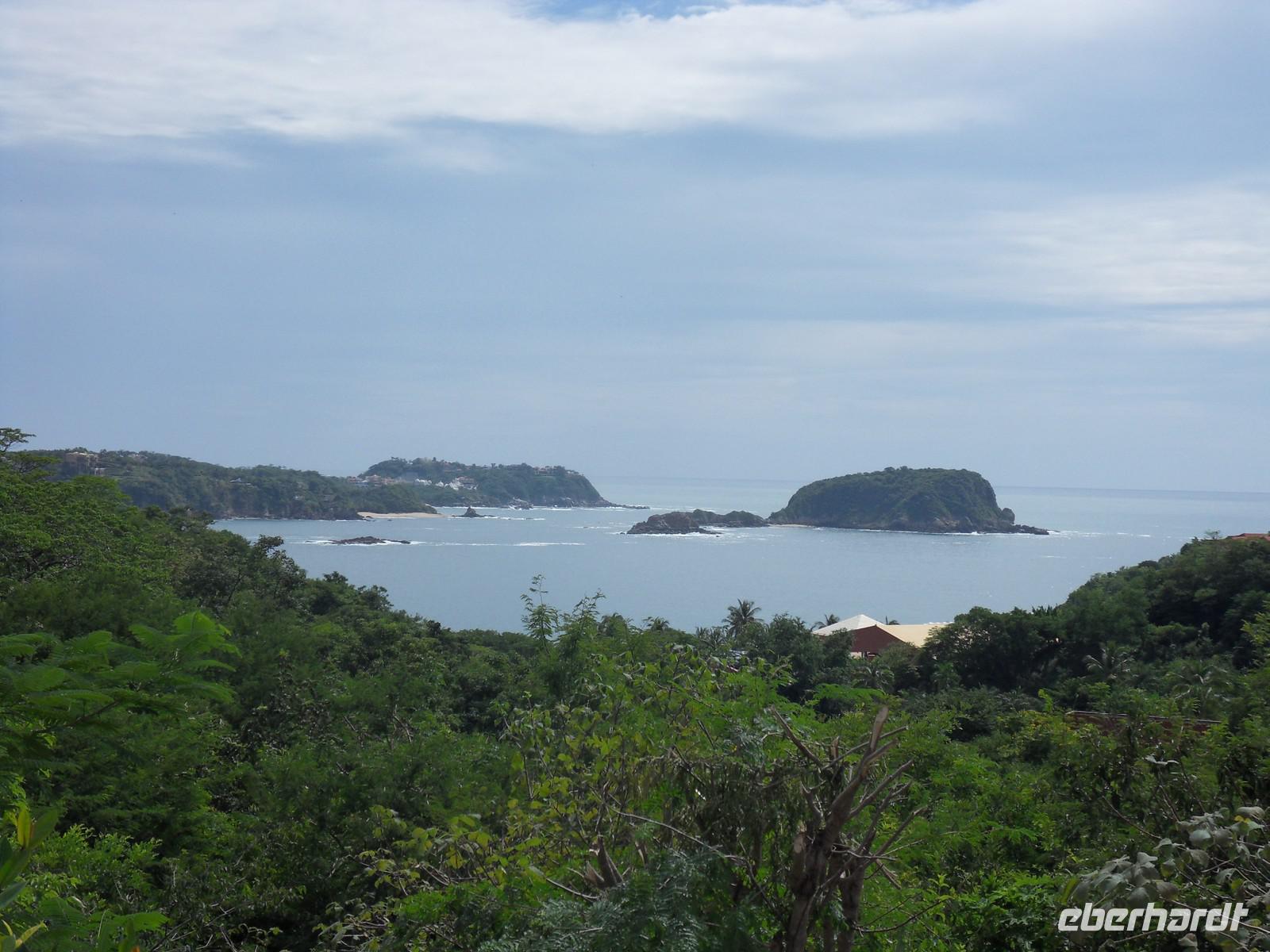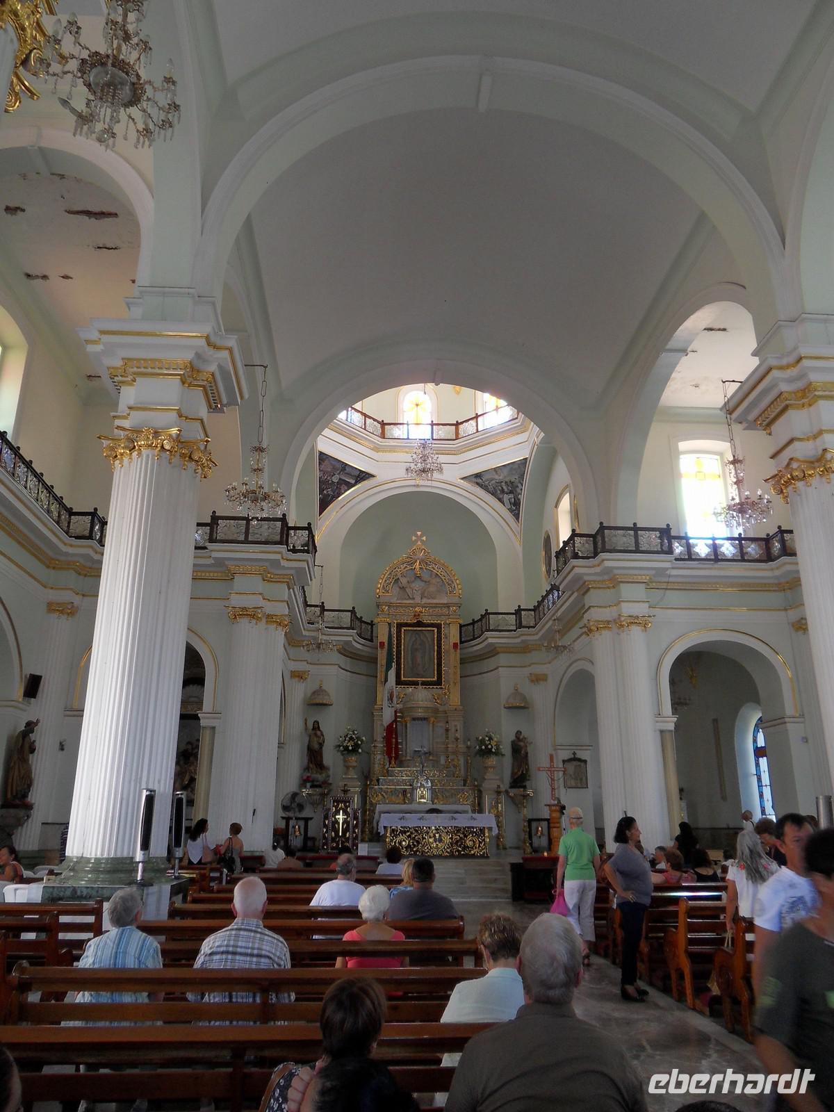 Im heutigen Hafen Huatulco hatten wir unterschiedliche Ausflüge gebucht. So nahm ich mit 3 Gästen an einem englischsprachigen Ausflug mit Stadt- und Küstentour teil. Dabei sahen wir nicht nur die Norwegian Pearl in einer der 9 Buchten von Huatulco ankern, sondern konnten auch typische Produkte der Gegend verkosten: Mezcal - Schnaps aus jeglicher Art von Agave mit einem Wurm am Flaschenboden, oder heiße Schokolade, die hier nicht mit Milch gemacht wird, sondern nur mit Wasser aufgegossen wird. Zudem besuchten wir eine örtliche Weberei, die auch Gefäße und Figuren aus schwarzem Ton herstellen sowie eine Kirche, in der das „Blumenwunder" als Deckengemälde dargestellt wurde. Gegen Mittag waren wir zurück im Hafen von Huatulco, wo auch viele Kanadier den Winter verbringen und sich zudem ein Armeestützpunkt befindet. So konnten wir im Hafen noch etwas „bummeln" gehen und uns die Kirche anschauen, die an der Stelle des Heiligen Kreuzes vom Huatulco errichtet wurde. Am Abend trafen wir uns wieder zum gemeinsamen Essen im Heck der Norwegian Pearl.