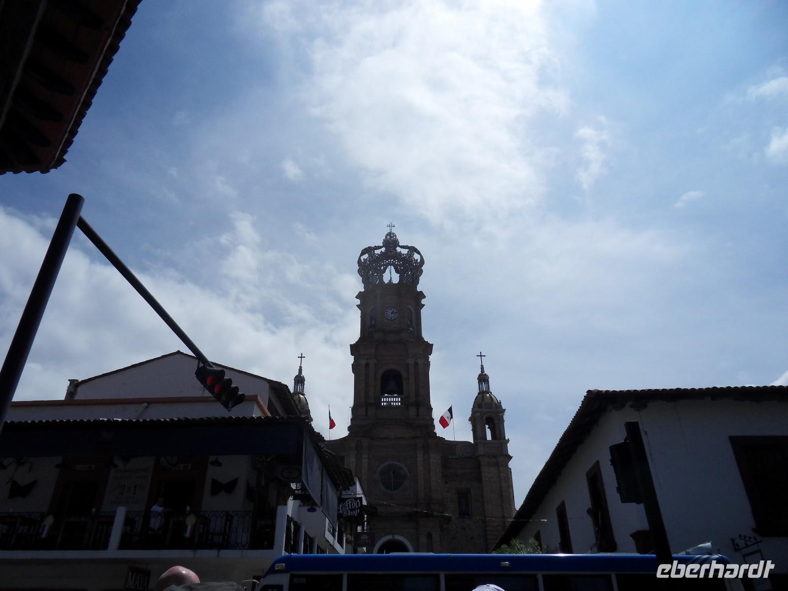 Auch heute stand wieder ein Landgang in Mexiko auf dem Programm, diesmal in Puerto Vallarta. Da leider kein deutscher Ausflug angeboten wurde, nahm ich mit dem Großteil der Gäste an einem englischsprachigen Ausflug teil. Doch bevor es eigentlich losging, machten wir auch schon wieder Kehrt und fuhren zurück zum Hafen: einige Gäste saßen im falschen Bus. Im zweiten Anlauf klappte es dann aber. Unsere Begleitung war Gina, die uns heute durch das Land des Tequila und der Mariachi-Musik führte. In Puerto Vallarta befanden wir uns an der sogenannten Bucht der Flaggen (spanisch: Banderas), einer der größten Pazifikbuchten Mexikos mit ca. 40 km Durchmesser. Bei einem Spaziergang entlang der Strandpromenade zeigt uns Gina das frühere Armenviertel, in dem sich in den 60er Jahren plötzlich reiche Filmstars ansiedelten, weil der Blick aufs Meer hinaus so schön war. Bekannt wurde der Ort u.a. durch den Dreh des Films „Die Nacht des Leguans", für den Elizabeth Taylor hierher zu Richard Burton zog. Anschließend besichtigten wir die Kirche mit dem Grabmal der Heiligen Maria von Guadalupe, die auch schon von Weitem durch den kronenähnlichen Schmuck auf dem Turm zu erkennen ist. Hier ist es „mucho calor" - sehr heiß, und so sind wir froh, dass die Klimaanlage des Busses funktioniert. Unterwegs erfahren wir, dass man in Mexiko Schuluniformen tragen muss, Bildung an sich aber kostenfrei ist. Die Straßen sind vom Regen aufgeweicht, so dass unsere Fahrt zur Hacienda Dona Engracia doch recht abenteuerlich wird. Nach einer kleinen Mittagspause beginnt unsere Führung durch die Tequila-Fabrik, an deren Ende wir selbstverständlich auch 6 verschiedene Sorten verkosten dürfen. Am Abend besuchte der Großteil der Gruppe mit mir das italienische Spezialiätenrestaurant an Bord, wo es uns mit zahlreichen Pizzen und anderen Köstlichkeiten gut ging.