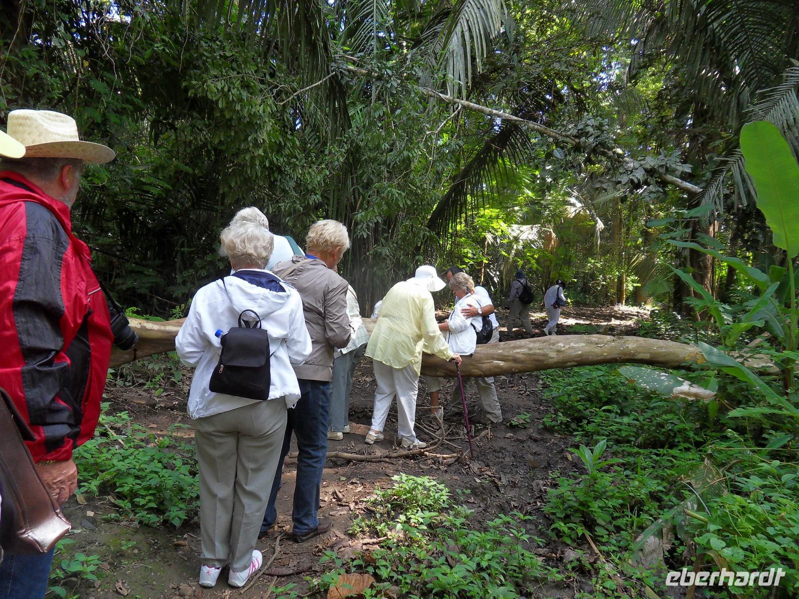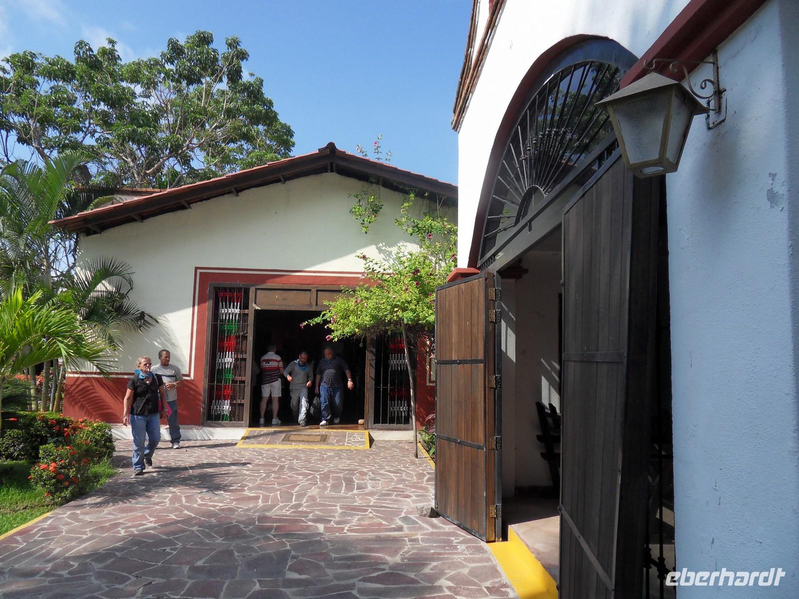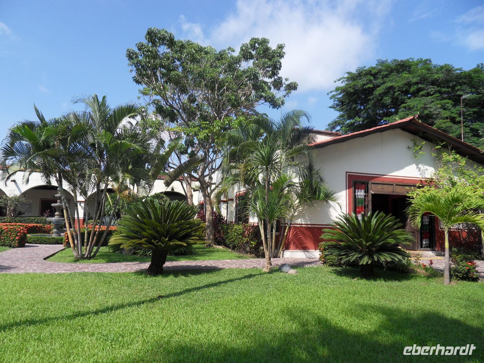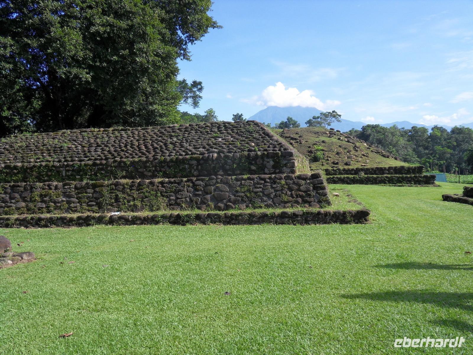 Nach einer stürmischen Nacht, die wir zum Glück alle gut überstanden hatten, legte die Norwegian Pearl am Morgen in Puerto Chiapas an, unserem letzten Hafen in Mexiko. Hier trafen wir Rosalia und ihren Assistentin, die uns heute begleiteten. Die Gegend im Südwesten von Mexiko, heute an der Grenze zu Guatemala, wurde schon im 18. Jahrhundert von Alexander von Humboldt besucht, der über den landschaftlichen Reichtum dieses Landstriches schrieb. Das ist auch der Grund, weshalb sich hier bereits vor mehr als 100 Jahren Deutsche ansiedelten. Allerdings ging es uns im Ursprungsland des Kakaos um die ältere Geschichte der Gegend - um die 85 Mayastämme, die hier vor mindestens 4000 Jahren lebten und miteinander Handel betrieben. Deren Götter sind auch die in der heutigen Zeit wichtig: Sonne, Regen und Mais, denn wer den meisten Mais stellen kann, war eine gesellschaftliche Autorität. Die Vulkane, die wir sehen als wir die Ruinen von Izapa erreichen, sind über 4000m hoch. „Izapa" bedeutet „Steine mit dem Wasser gebracht" - die pyramidenartigen Anlagen wurden ca. 1200 v.Chr. aus vom Wasser „rundgelutschten" Steinen gebaut und um 900 n.Chr. verlassen. Am sogenannten „Ballplatz" erzählt uns Rosalia von der Geschichte Mexikos und der traditionellen Kleidung, ebenso wie von der Kultur der Maya und deren Kalender, dessen Ende ihrer Meinung nach nicht den Weltuntergang bedeutet. Nach dem Gruppenfoto an den Ruinen fahren wir nach Tuxtla Chico, in die frühere Kakaohauptstadt. Hier schlendern wir über einen typischen Markt, wo wir etwas von dem Obst probieren können. Nebenan wird aber auch frisch geschlachtetes Huhn und Fisch verkauft - ein gewöhnungsbedürftiger Anblick so ganz ungekühlt. Nachdem wir uns das Herstellungsverfahren für Kakao anschauen konnten, fahren wir nach Tapachula, wo uns im Hotel San Francisco ein leckeres und üppiges 3-Gänge-Menü erwartet, so dass wir gut gesättigt wieder am Schiff ankommen.