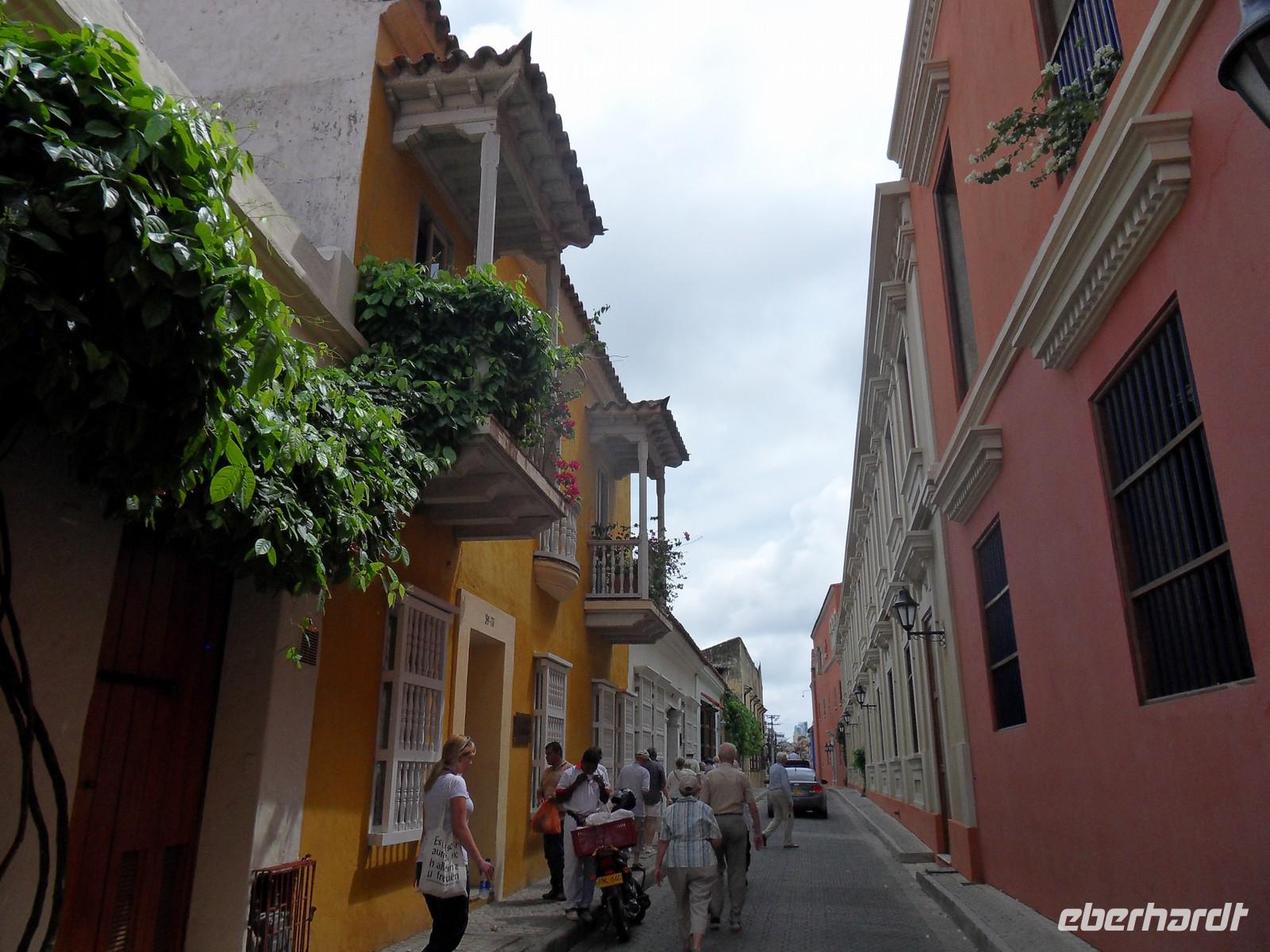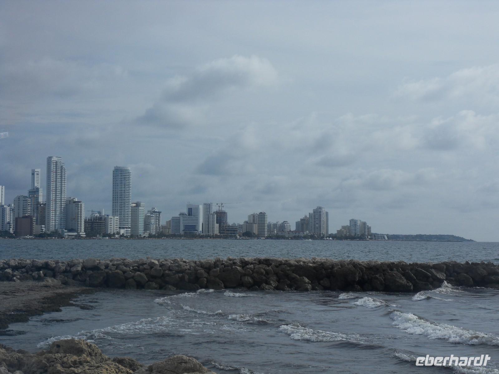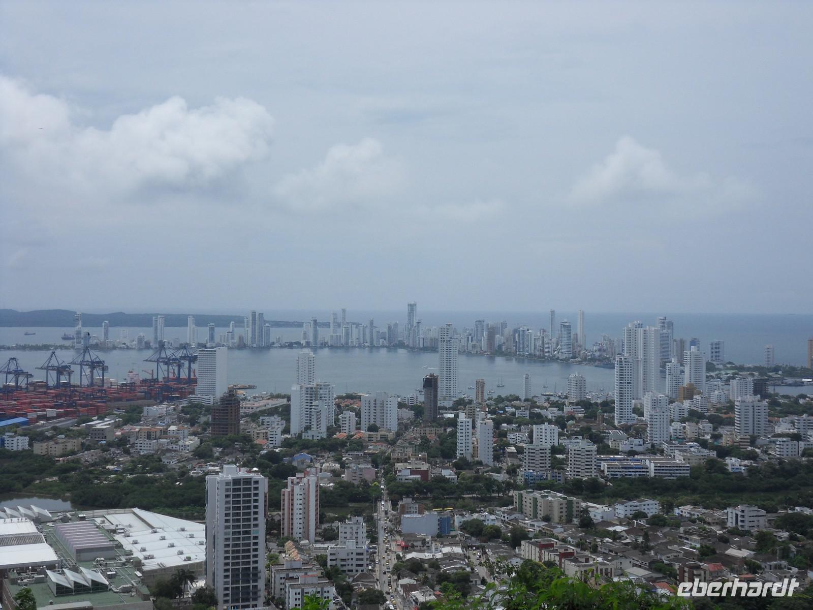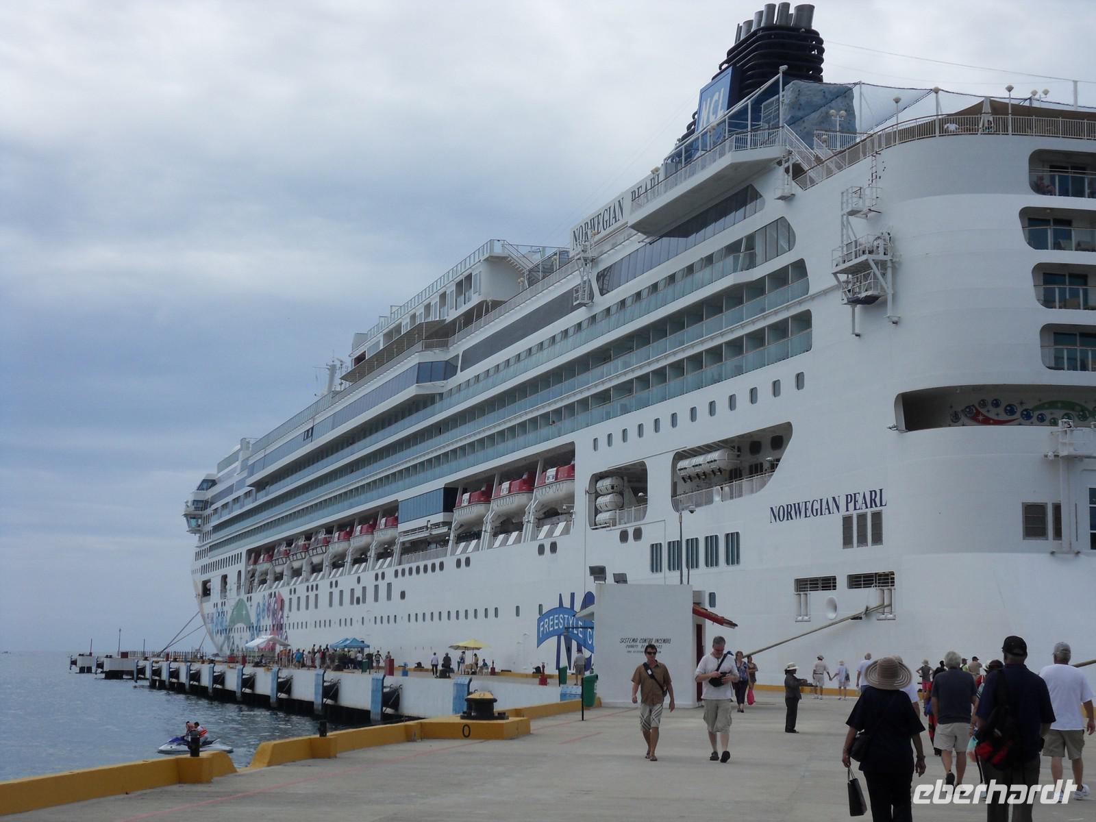Am Vormittag legte die Norwegian Pearl in Cartagena, Kolumbien, an. Am Schiff wurden wir schon sehnsüchtig und mit unglaublich großen Plakaten von Saskia und Cesar erwartet. Als wir im Bus sind, haben wir bei dem monströsen Stadtverkehr etwas Zeit, um die Audiogeräte auszuprobieren. Als Cesar uns verrät, dass es hier über 35.000 Motorradtaxis gibt, wundert uns nichts mehr. Aber auch bei drei Kreuzfahrtschiffen im Hafen ist viel Verkehr unumgänglich. Unser erster Weg in der Millionenmetropole (1,2 Mio. Einwohner) führt uns Serpentinen hinauf auf den Berg zum Kloster La Popa. Die Kreuze am Wegesrand symbolisieren die Stationen des Leidensweges Christi. Oben angekommen genießen wir den herrlichen Blick über die Stadt. Selbst von hier oben sieht man die dicken Festungsmauern. Im Inneren bestaunen wir die Kapelle, den Kreuzgang und die Ausstellungsstücke zur Konventsgeschichte. In der Stadt angekommen haben wir in den Arkadengängen die Möglichkeit, Souvenirs oder Smaragdschmuck zu kaufen. Hier stehen auch die bunt gekleideten Damen mit den großen Obstschüsseln auf dem Kopf, die gern für ein paar Dollar posieren. Anschließend laufen wir durch die Straßen Cartagenas bis zum Restaurant „La Mutata", wo wir mit einem hervorragenden Mittagessen verköstigt werden. Nach dem Essen schlendern wir durch die Straßen der tollen Altstadt von Cartagena mit Kirche, Arkadengängen und hölzernen Balkonen. Die Fahrt nach Boca Grande, das moderne Viertel mit Hochhäusern und Fastfood-Restaurants, zeigt Cartagena von einer ganz anderen Seite. Allerdings gibt es auch hier Strand, der sowohl Touristen als auch Einheimische zum Erholen einlädt. Unser letzter Programmpunkt in Cartagena ist der Besuch der Festung San Felipe. Auf dem Weg dahin kommen wir am Uhrenturm, dem Wahrzeichen der Stadt, vorbei. Der steile Aufstieg auf die Festung lohnt sich, ist aber kein Muss. Die steil angelegten, meterdicken Mauern sind der Alptraum eines jeden Angreifers. Auch von hier oben haben wir nochmal einen tollen Ausblick auf die Stadt. Doch auch unser letzter Landausflug neigt sich einmal dem Ende - Cesar und Saskia bringen uns zurück zum Schiff. Und wieder einmal sind wir überwältigt von den vielen Eindrücken des Tages, als wir den Abend auf unserem schwimmenden Hotel ausklingen lassen.