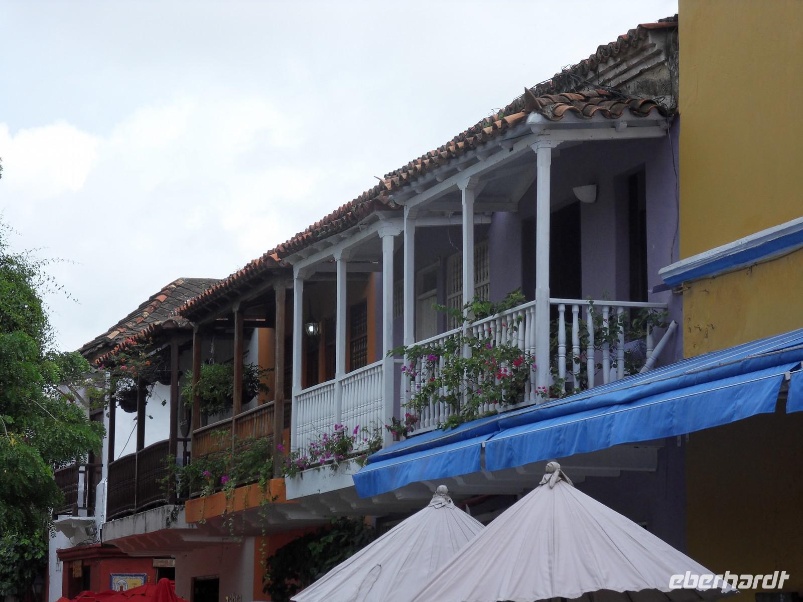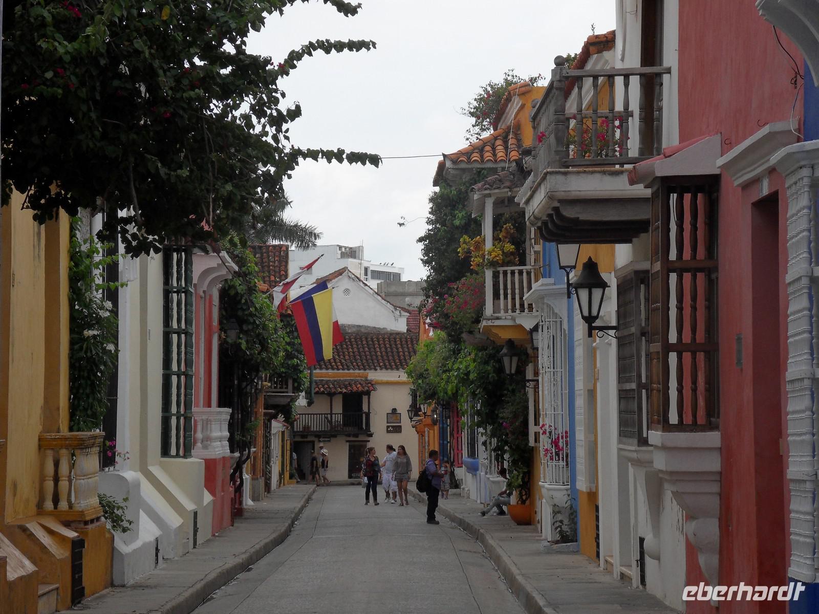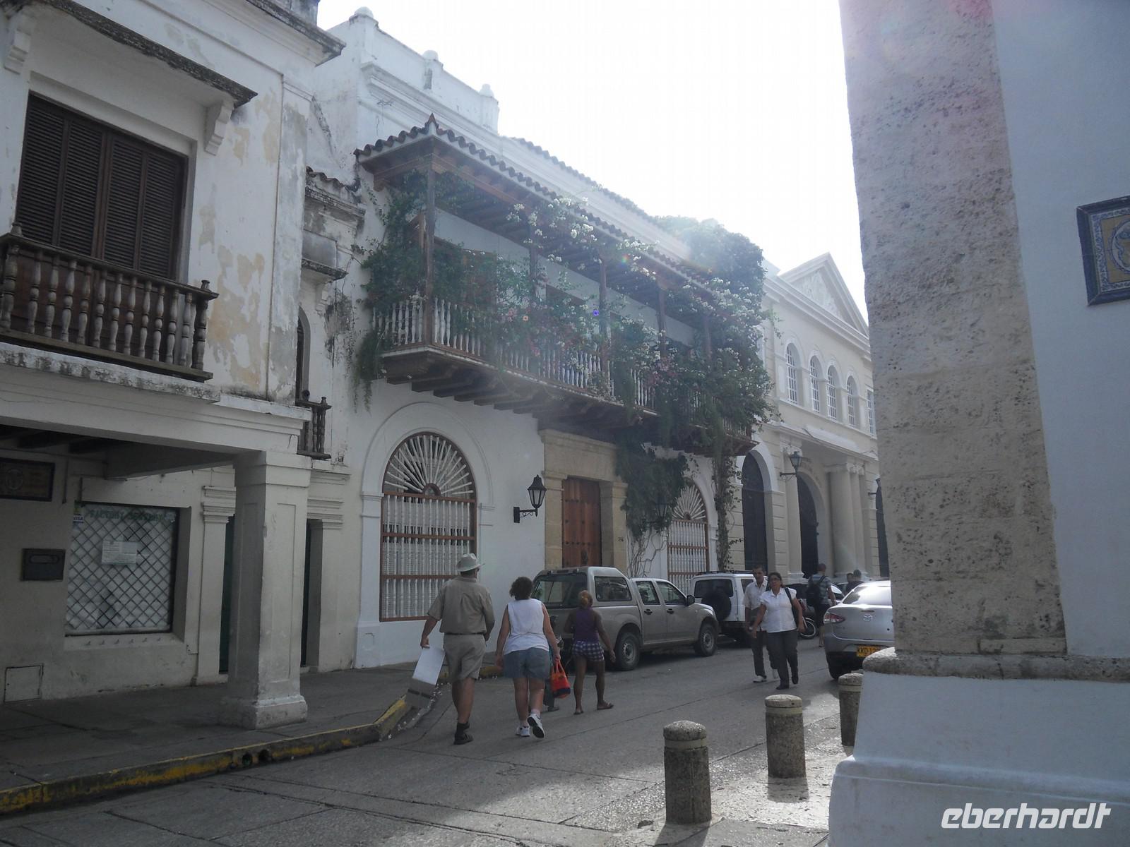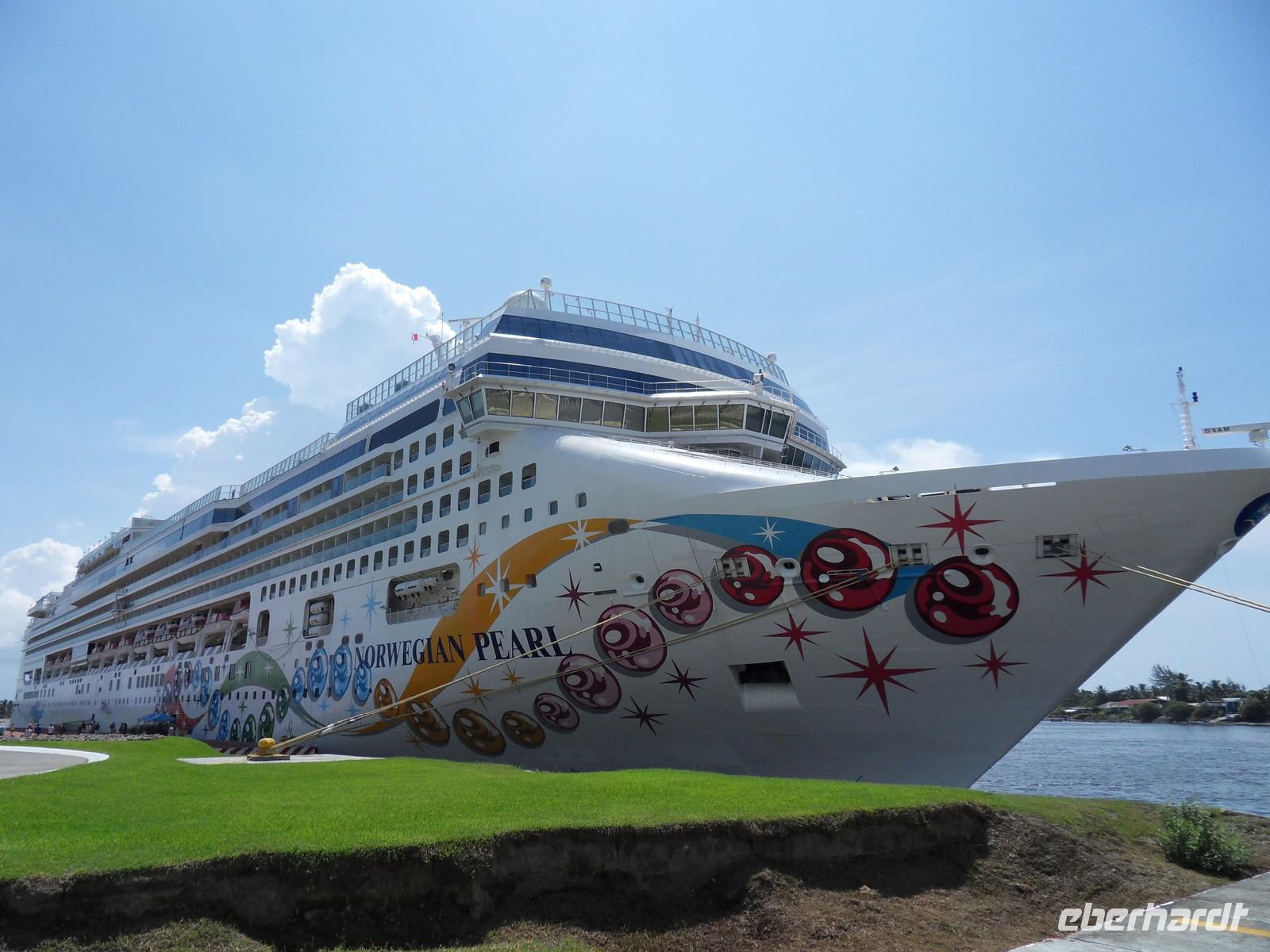 Am Vormittag legte die Norwegian Pearl in Cartagena, Kolumbien, an. Am Schiff wurden wir schon sehnsüchtig und mit unglaublich großen Plakaten von Saskia und Cesar erwartet. Als wir im Bus sind, haben wir bei dem monströsen Stadtverkehr etwas Zeit, um die Audiogeräte auszuprobieren. Als Cesar uns verrät, dass es hier über 35.000 Motorradtaxis gibt, wundert uns nichts mehr. Aber auch bei drei Kreuzfahrtschiffen im Hafen ist viel Verkehr unumgänglich. Unser erster Weg in der Millionenmetropole (1,2 Mio. Einwohner) führt uns Serpentinen hinauf auf den Berg zum Kloster La Popa. Die Kreuze am Wegesrand symbolisieren die Stationen des Leidensweges Christi. Oben angekommen genießen wir den herrlichen Blick über die Stadt. Selbst von hier oben sieht man die dicken Festungsmauern. Im Inneren bestaunen wir die Kapelle, den Kreuzgang und die Ausstellungsstücke zur Konventsgeschichte. In der Stadt angekommen haben wir in den Arkadengängen die Möglichkeit, Souvenirs oder Smaragdschmuck zu kaufen. Hier stehen auch die bunt gekleideten Damen mit den großen Obstschüsseln auf dem Kopf, die gern für ein paar Dollar posieren. Anschließend laufen wir durch die Straßen Cartagenas bis zum Restaurant „La Mutata", wo wir mit einem hervorragenden Mittagessen verköstigt werden. Nach dem Essen schlendern wir durch die Straßen der tollen Altstadt von Cartagena mit Kirche, Arkadengängen und hölzernen Balkonen. Die Fahrt nach Boca Grande, das moderne Viertel mit Hochhäusern und Fastfood-Restaurants, zeigt Cartagena von einer ganz anderen Seite. Allerdings gibt es auch hier Strand, der sowohl Touristen als auch Einheimische zum Erholen einlädt. Unser letzter Programmpunkt in Cartagena ist der Besuch der Festung San Felipe. Auf dem Weg dahin kommen wir am Uhrenturm, dem Wahrzeichen der Stadt, vorbei. Der steile Aufstieg auf die Festung lohnt sich, ist aber kein Muss. Die steil angelegten, meterdicken Mauern sind der Alptraum eines jeden Angreifers. Auch von hier oben haben wir nochmal einen tollen Ausblick auf die Stadt. Doch auch unser letzter Landausflug neigt sich einmal dem Ende - Cesar und Saskia bringen uns zurück zum Schiff. Und wieder einmal sind wir überwältigt von den vielen Eindrücken des Tages, als wir den Abend auf unserem schwimmenden Hotel ausklingen lassen.