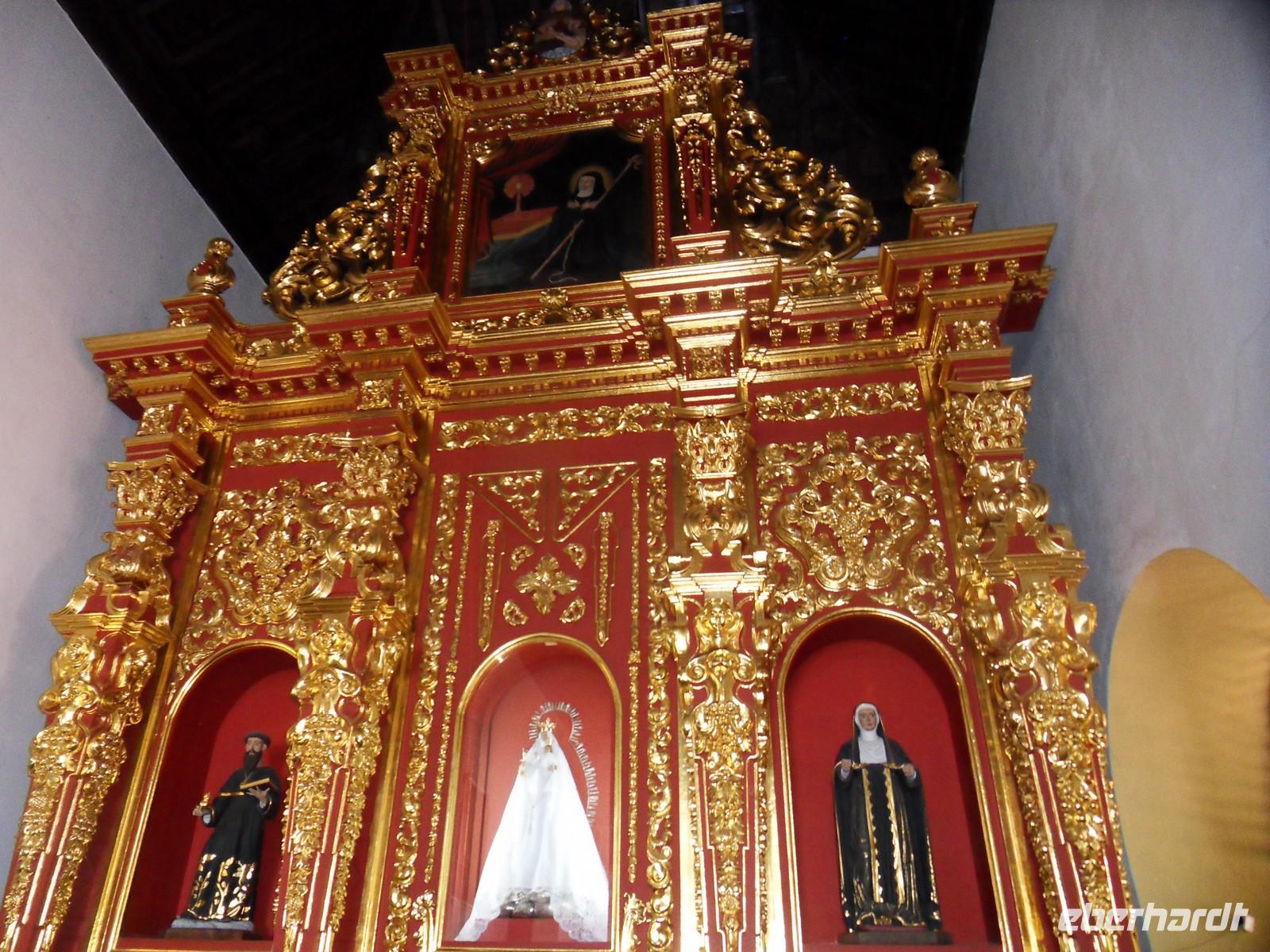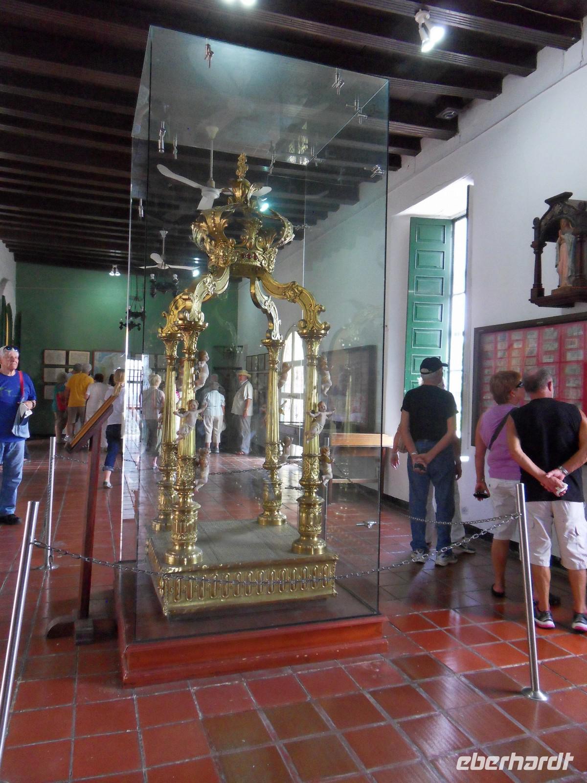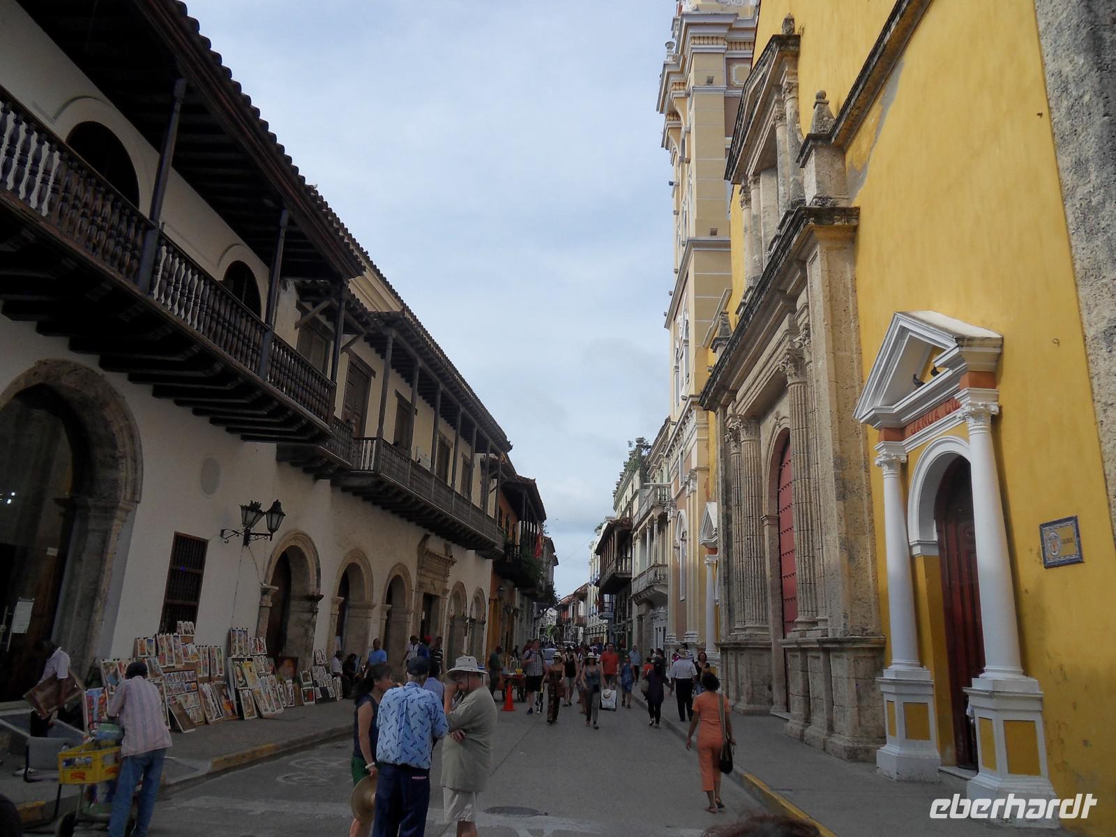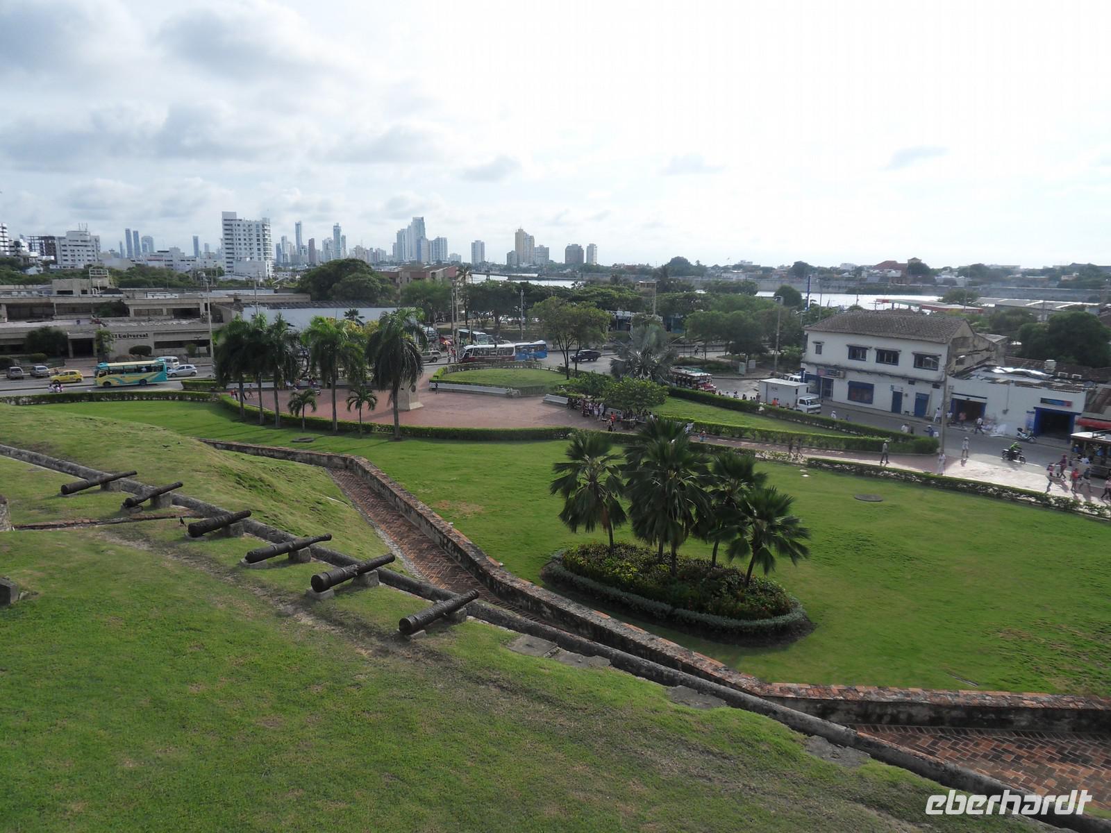Am Vormittag legte die Norwegian Pearl in Cartagena, Kolumbien, an. Am Schiff wurden wir schon sehnsüchtig und mit unglaublich großen Plakaten von Saskia und Cesar erwartet. Als wir im Bus sind, haben wir bei dem monströsen Stadtverkehr etwas Zeit, um die Audiogeräte auszuprobieren. Als Cesar uns verrät, dass es hier über 35.000 Motorradtaxis gibt, wundert uns nichts mehr. Aber auch bei drei Kreuzfahrtschiffen im Hafen ist viel Verkehr unumgänglich. Unser erster Weg in der Millionenmetropole (1,2 Mio. Einwohner) führt uns Serpentinen hinauf auf den Berg zum Kloster La Popa. Die Kreuze am Wegesrand symbolisieren die Stationen des Leidensweges Christi. Oben angekommen genießen wir den herrlichen Blick über die Stadt. Selbst von hier oben sieht man die dicken Festungsmauern. Im Inneren bestaunen wir die Kapelle, den Kreuzgang und die Ausstellungsstücke zur Konventsgeschichte. In der Stadt angekommen haben wir in den Arkadengängen die Möglichkeit, Souvenirs oder Smaragdschmuck zu kaufen. Hier stehen auch die bunt gekleideten Damen mit den großen Obstschüsseln auf dem Kopf, die gern für ein paar Dollar posieren. Anschließend laufen wir durch die Straßen Cartagenas bis zum Restaurant „La Mutata", wo wir mit einem hervorragenden Mittagessen verköstigt werden. Nach dem Essen schlendern wir durch die Straßen der tollen Altstadt von Cartagena mit Kirche, Arkadengängen und hölzernen Balkonen. Die Fahrt nach Boca Grande, das moderne Viertel mit Hochhäusern und Fastfood-Restaurants, zeigt Cartagena von einer ganz anderen Seite. Allerdings gibt es auch hier Strand, der sowohl Touristen als auch Einheimische zum Erholen einlädt. Unser letzter Programmpunkt in Cartagena ist der Besuch der Festung San Felipe. Auf dem Weg dahin kommen wir am Uhrenturm, dem Wahrzeichen der Stadt, vorbei. Der steile Aufstieg auf die Festung lohnt sich, ist aber kein Muss. Die steil angelegten, meterdicken Mauern sind der Alptraum eines jeden Angreifers. Auch von hier oben haben wir nochmal einen tollen Ausblick auf die Stadt. Doch auch unser letzter Landausflug neigt sich einmal dem Ende - Cesar und Saskia bringen uns zurück zum Schiff. Und wieder einmal sind wir überwältigt von den vielen Eindrücken des Tages, als wir den Abend auf unserem schwimmenden Hotel ausklingen lassen.