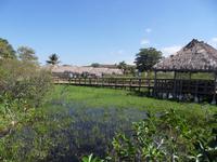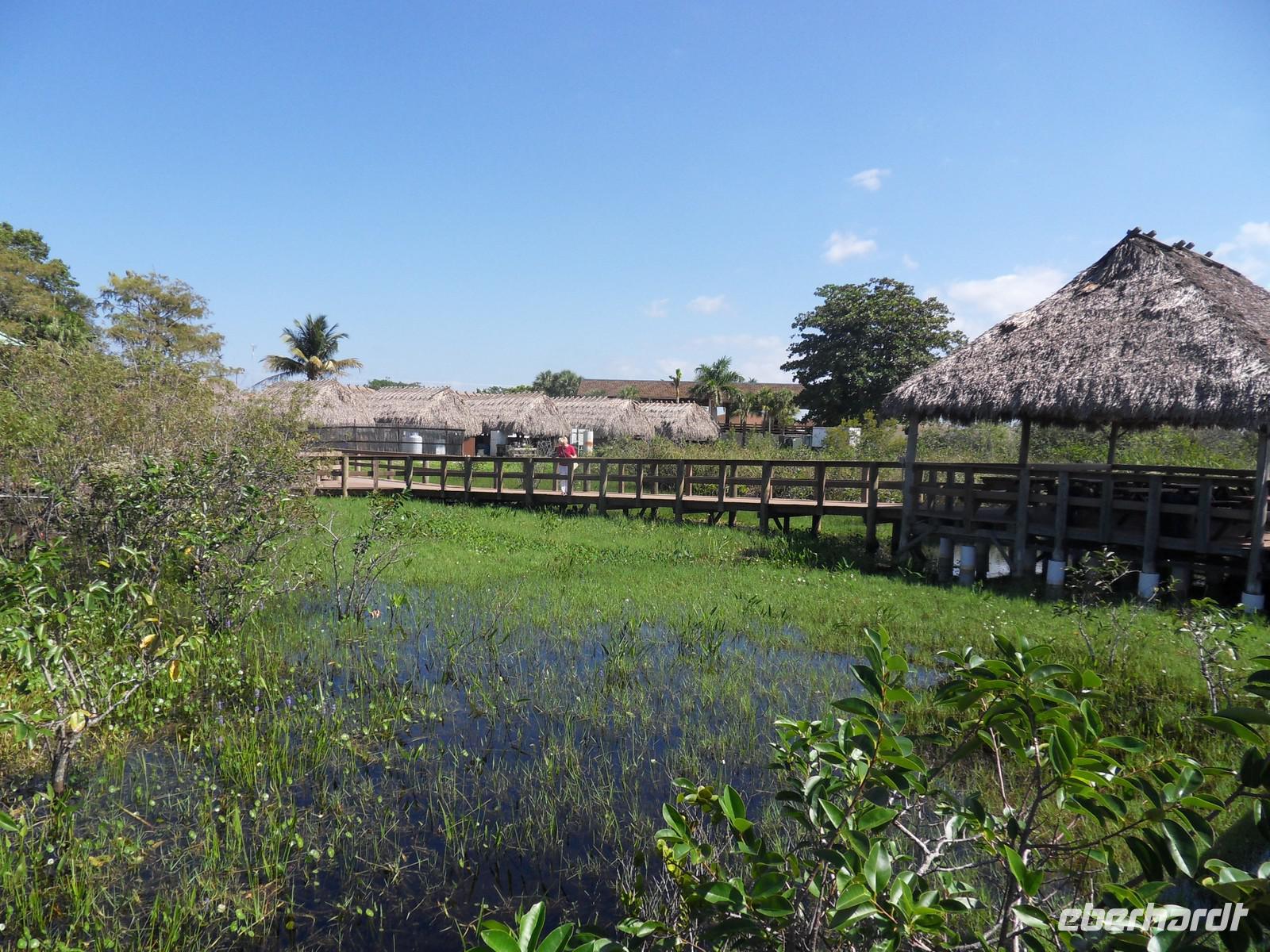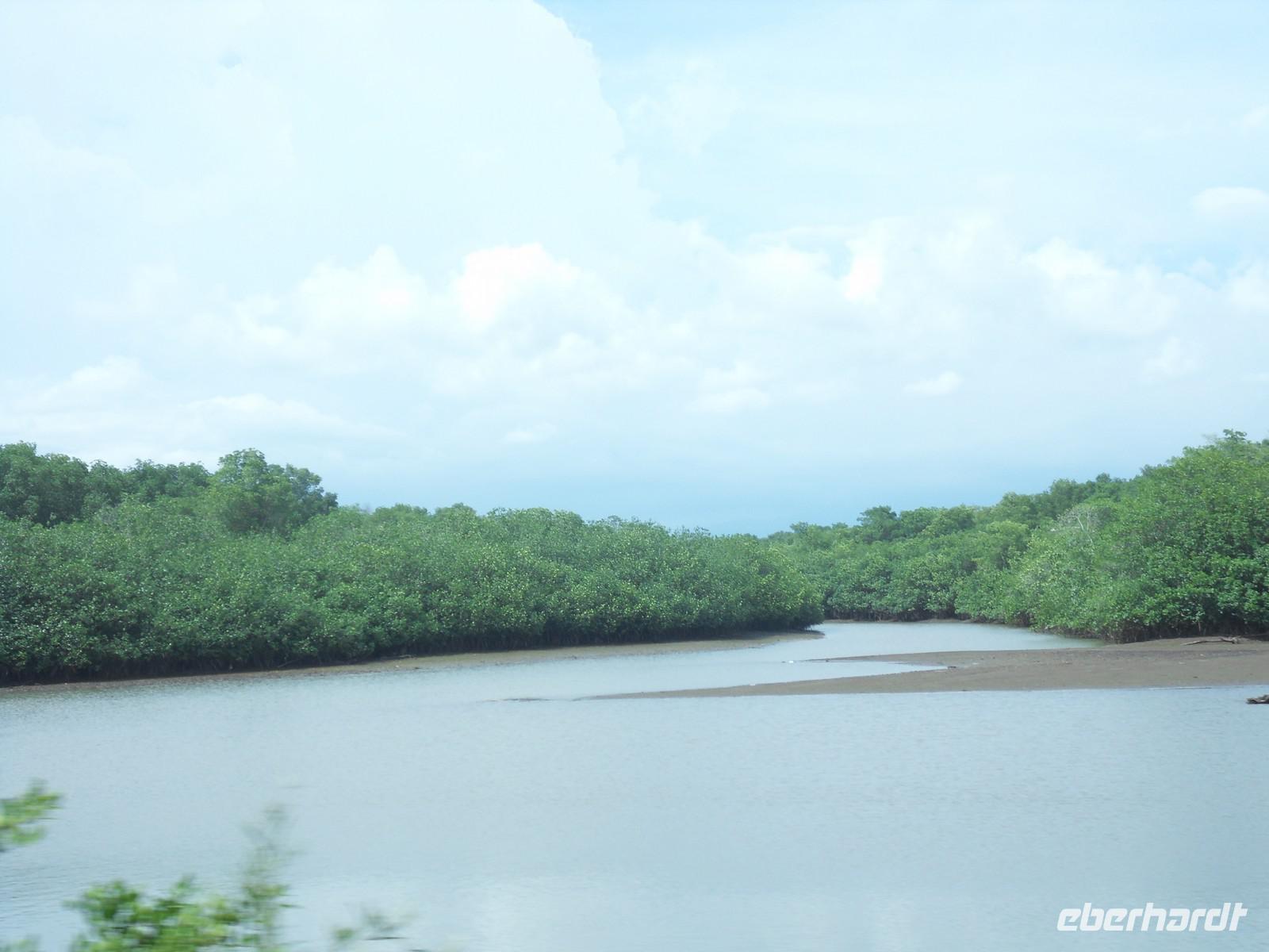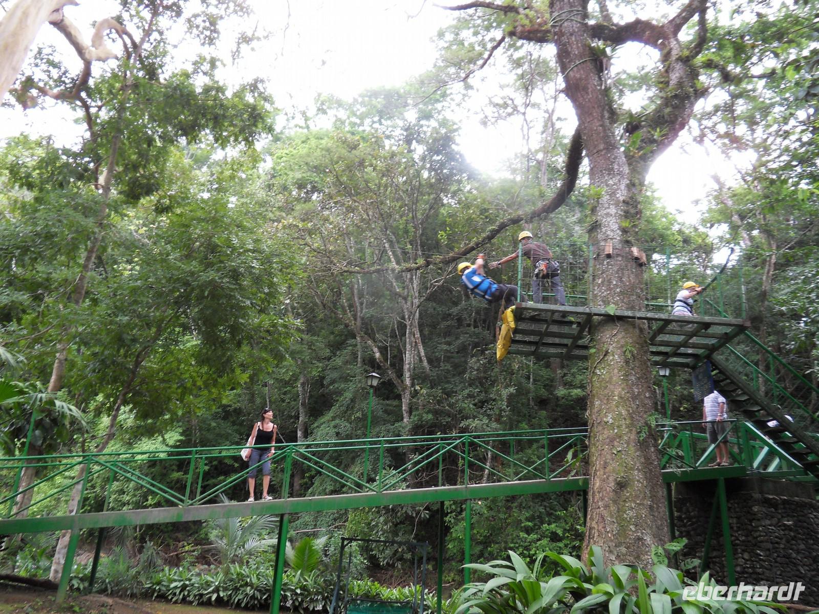 Heute Morgen legte die Norwegian Jewel direkt neben uns an, so dass die zwei Schwesterschiffe einträchtig nebeneinander am Pier liegen. Nachdem wir das Schiff um 7.30 Uhr Costa-Rica-Zeit verlassen haben, treffen wir am Hafenausgang José, unseren Guide für den heutigen Tag in Puntarenas und Costa Rica. Wir machen uns auf den Weg in das Land, das schon Kolumbus die „Reiche Küste" taufte, allerdings auf der Atlantikseite. Nach einer halben Stunde Fahrt legen wir den ersten Fotostopp ein: Kapuzineräffchen lassen sich auf Bäumen am Straßenrand blicken und haben auch nichts gegen unsere Fotos. Obwohl uns José erzählt, dass der Bau der Straße von Puntarenas in die Hauptstadt San José, also für eine Strecke von 90 Kilometern, ca. 30 Jahre gedauert hat, kommen wir ziemlich gut vorwärts. ;) Nach einer weiteren halben Stunde erreichen wir den Carara-Nationalpark, den wir natürlich nicht ohne tropischen Mückenschutz besuchen. Bestens versorgt machen wir uns auf den Weg, der gelegentlich vom einen oder anderen Baumstamm gekreuzt wird, die wir unter- oder überklettern müssen. Wir hören die Brüllaffen, sehen eine große Spinne, riesige Ameisen und andere Insekten, aber auch hohe Bäume mit Lianen umrankt und Brettwurzeln. Die Kapuzineräffchen sind hier genau so neugierig und folgen uns vorbei an Bananenstauden und anderen tropischen Gewächsen. Irgendwie ist man froh zu wissen, dass 25% des Landes unter Naturschutz stehen. Nach unserem Abenteuer im „Dschungel" fahren wir zurück zu der Brücke, die wir zuvor bereits mit dem Bus überquert hatten, doch nun haben wir Gelegenheit, die Krokodile zu beobachten, die darunter liegen. Einige dieser Exemplare scheinen um die 5 Meter groß zu sein. Zum Mittagessen kehren wir im Hotel Villa Lapas ein, wo wir zunächst etwas Zeit haben, die Hotelanlage zu erkunden. Danach erwartet uns ein Buffet mit landestypischen Köstlichkeiten, z.B. Fisch, Reis, Bohnen, aber auch Nudeln und Salat. Auf dem Rückweg nach Puntarenas halten wir am Geschäft Jardin, wo wir die Möglichkeit zum Souvenirkauf ergreifen. Während der Weiterfahrt erzählt uns José, dass die Landwirtschaft in Costa Rica immer rückläufiger ist. Vor allem Tourismus und Dienstleistungen sind wichtige Einnahmequellen, Reis und Bohnen werden nicht mehr angebaut, da sich der Aufwand nicht lohnt und die Leute für das wenige Geld nicht arbeiten wollen. Derzeit baut man noch Bananen und Ananas sowie Zuckerrohr an. In Puntarenas angekommen führt uns José zur Kathedrale von Puntarenas, die über 90 Jahre alt ist, und berichtet uns über sein Leben und das Leben in Costa Rica sehr ausführlich. Zurück am Hafen verabschieden wir uns von José und haben noch Zeit, auf dem Markt an der Promenade nach Andenken Ausschau zu halten. So verlassen wir am Abend noch vor der Norwegian Jewel das Land der Vulkane - Adios, Costa Rica!