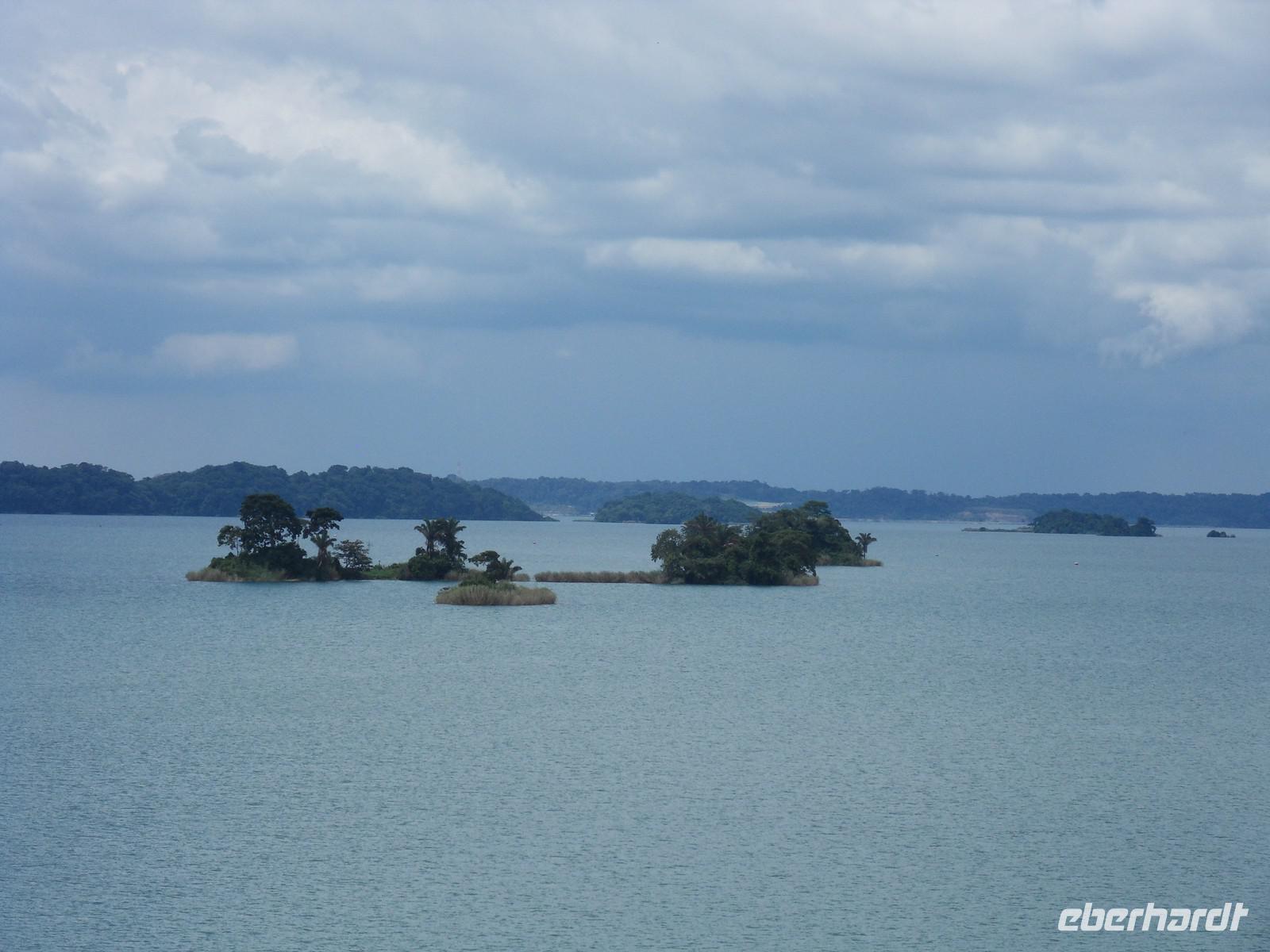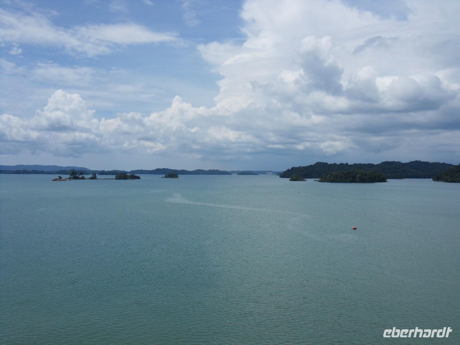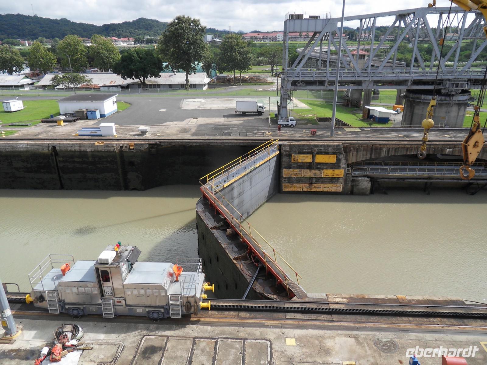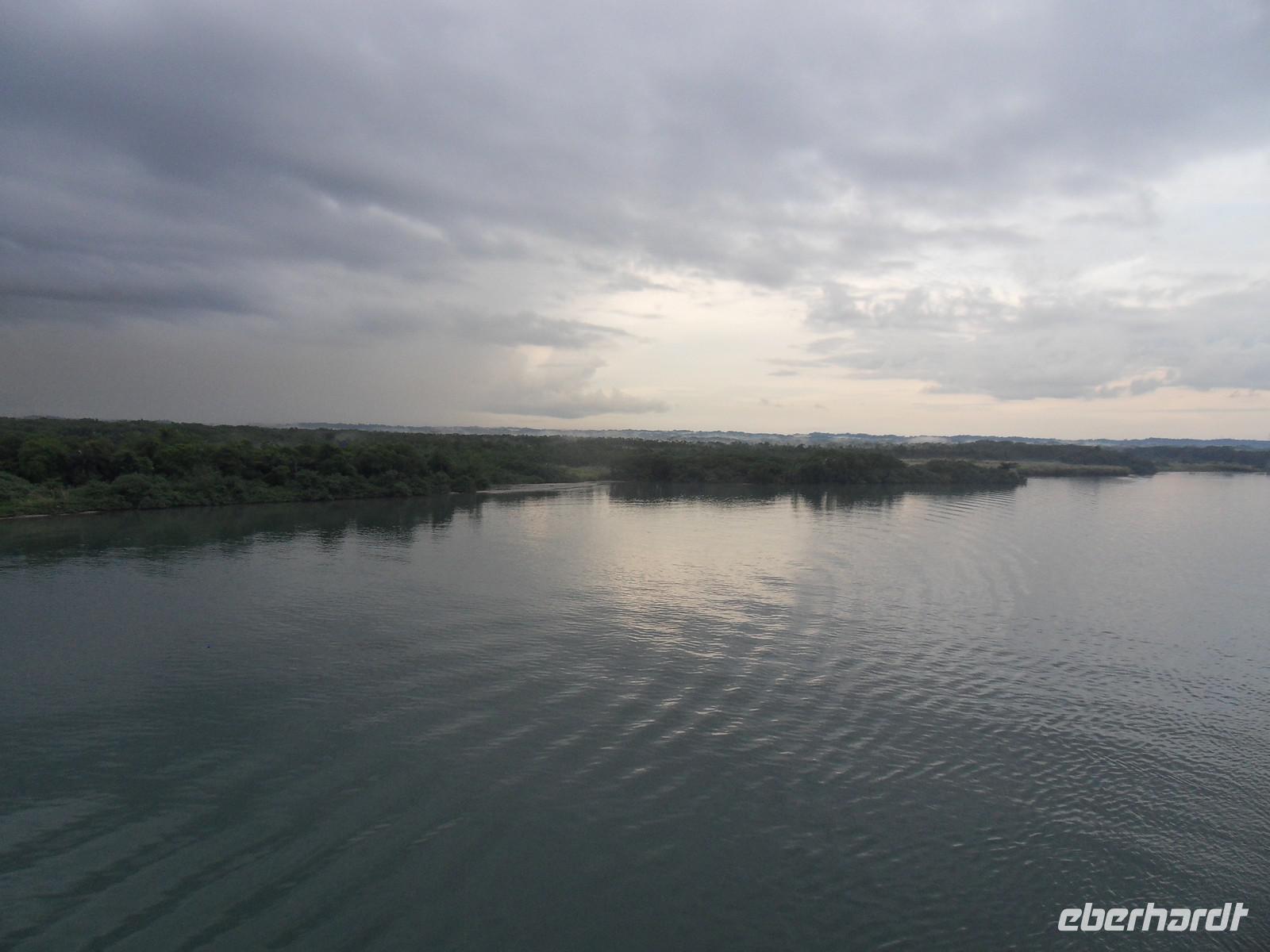 Nach der Durchfahrt durch die „Brücke der Amerikas" erreichten wir gegen 9 Uhr die Miraflores-Schleusen mit dem Besucherzentrum, von dem aus uns viele Menschen fleißig zuwinkten. Weiter ging es zu der Schleuse „Pedro Miguel", die nur aus einer Schleusenkammer besteht. Auch hier wurde die Norwegian Pearl von den Loks anhand von Stahlseilen fixiert und man hatte den Eindruck, dass manchmal wirklich nur eine Hand breit zwischen dem Schiff und der Schleusenwand fehlte. Nach den Schleusen fuhren wir weiter durch den sogenannten Gaillard-Cut mit seinen terrassenförmigen Abtragungen, bis wir schließlich den Gatunsee erreichten. Vorbei an zahlreichen kleinen Inseln und tropischen Wäldern ging es weiter bis zu den Gatunschleusen. Bisher hatte das Wetter gut durchgehalten, doch ausgerechnet hier fing es nun zu regnen an. Kurz vor 18 Uhr erreichten wir die Stadt Colon und damit auch das Karibische Meer. Begleitet von fantastischer Natur und immer lächelnden und winkenden Menschen verbrachten wir so einen herrlichen Tag an Bord, aber eben mit dem Transit durch den Panamakanal.