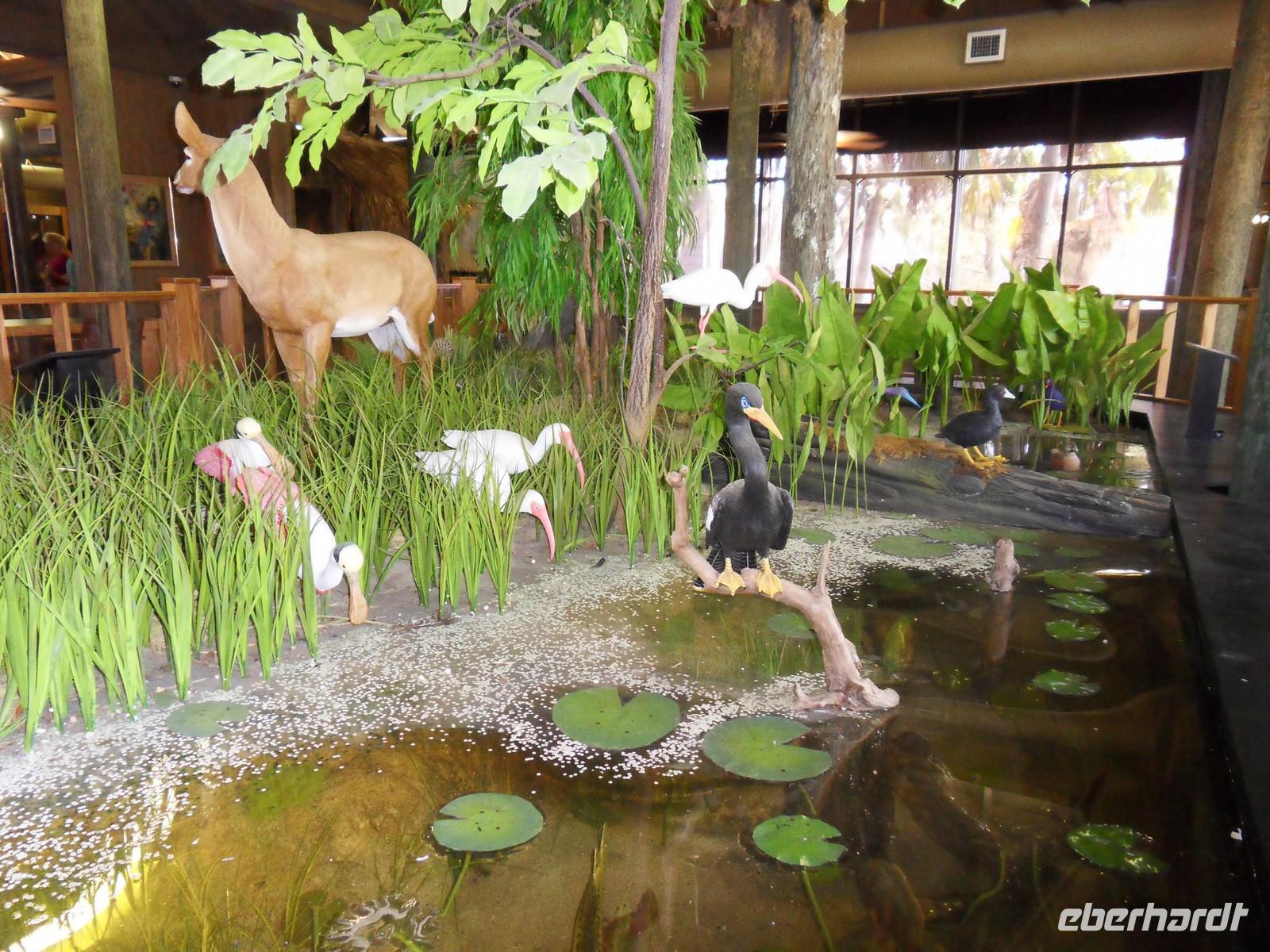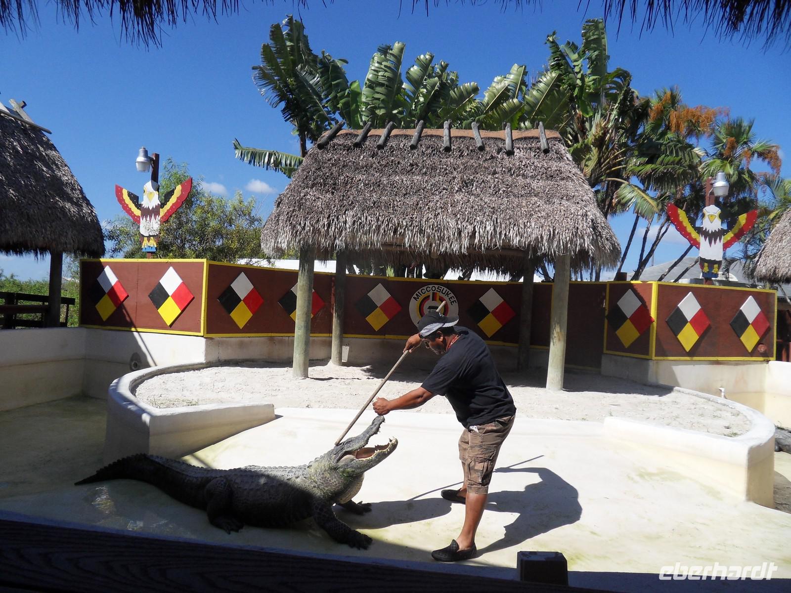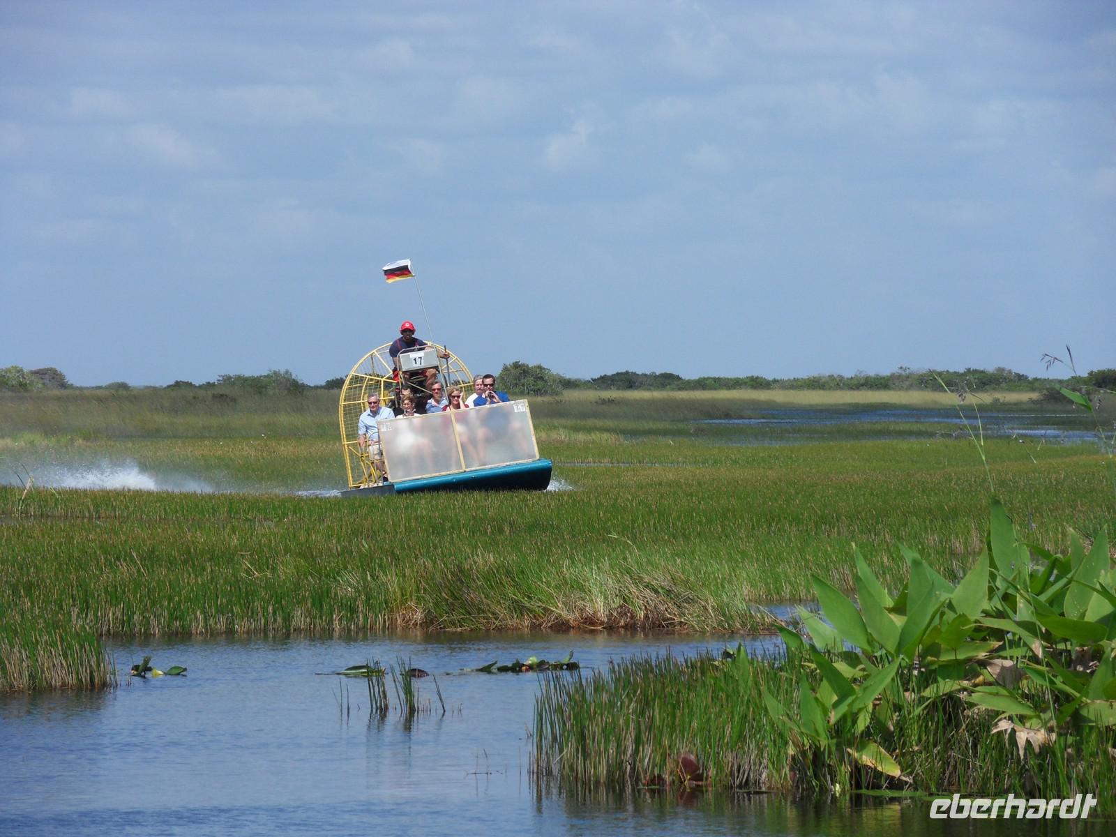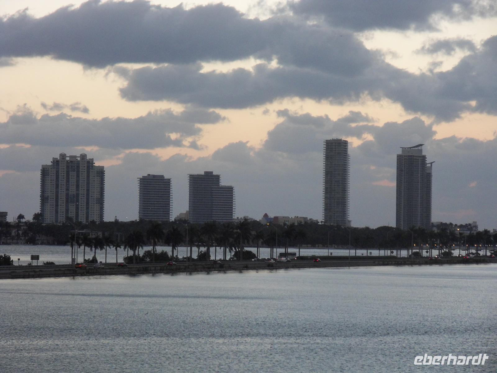Der Tag der Ausschiffung begann früh, dann schon kurz nach 8 Uhr waren wir dran - wir durften das Schiff verlassen. Nachdem wir im Gewühl unsere Koffer ergattert hatten, ging es durch die Zollkontrolle. Schließlich reisten wir ja wieder in die USA ein. Nachdem wir uns wieder getroffen hatten, hatte uns auch schon Peter, unser Begleiter für die Everglades, gefunden. So fuhren wir zunächst zum Seaquarium, das einige unserer Mitreisenden heute besuchten, bevor wir in die Everglades aufbrachen. Dass die Everglades eigentlich nur ein sehr langsam fließender Fluss sind, erfuhren wir unterwegs, bevor wir das Dorf der Miccosukee-Indianer erreichten. Nach der individuellen Erkundung des Dorfes mit Museum begann für uns die Alligatorshow. Und ich wette, das keiner von uns mit dem Mann hätte tauschen wollen, der seine Hand in den Mund des Alligators legte oder deren mächtige Kiefer mit seinem Kinn festhielt. Beeindruckt von der Größe und Reaktionsschnelle der Tiere gab es dann die Möglichkeit eines Erinnerungsfotos - mit einem Babyalligator. Danach stand ein weiteres Muss der Everglades auf unserem Programm - ein lauter, aber dennoch lustiger „Airboat Ride". Und auch hier entdeckten wir wieder einen Alligator, wenn auch in freier Wildbahn und etwas kleiner als die 4 Meter langen Exemplare, die wir schon gesehen hatten. Aber das machte ihn nicht weniger gefährlich, wie er da so um das Boot schlich. Wieder zurück in Miami fuhren wir nach „Little Havanna", ins Herzstück des kubanischen Miamis. Hier genehmigten wir uns ein leckeres kubanisches Sandwich zum Mittag, und wer wollte, konnte nebenan eine von einem Kubaner gedrehte Zigarre aus kubanischem Tabak erstehen. Nur im Ganzen importiert kriegt man die in den USA nicht. ;) Am Nachmittag erreichen wir unser Hotel am Hafen. Nachdem wir die Zimmer bezogen haben, bleibt uns bis zum Abendessen Zeit, um die Gegend und das gegenüberliegende Bayside Center zu erkunden. Unser letztes Abendessen in Amerika nehmen wir im Hotel ein. Das Essen war sehr lecker, doch leider war bei Weitem zu wenig Personal da, so dass wir zwischen den einzelnen Gängen lange warten mussten.
