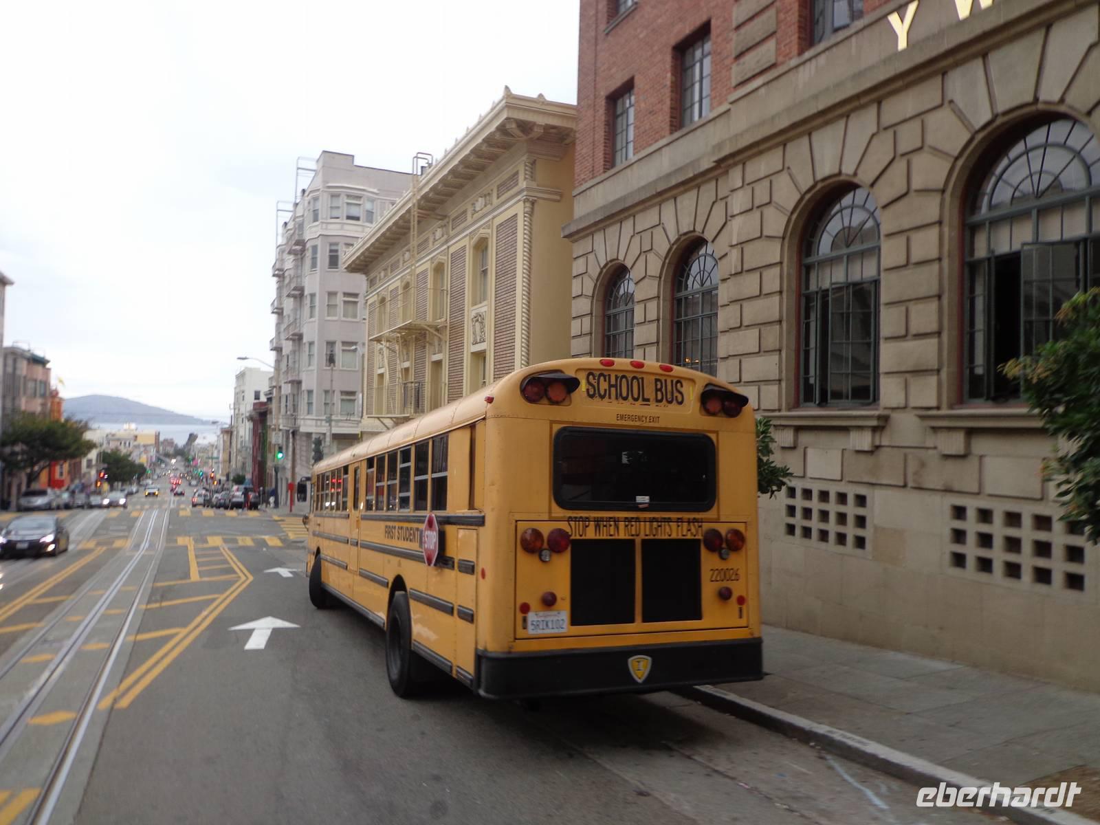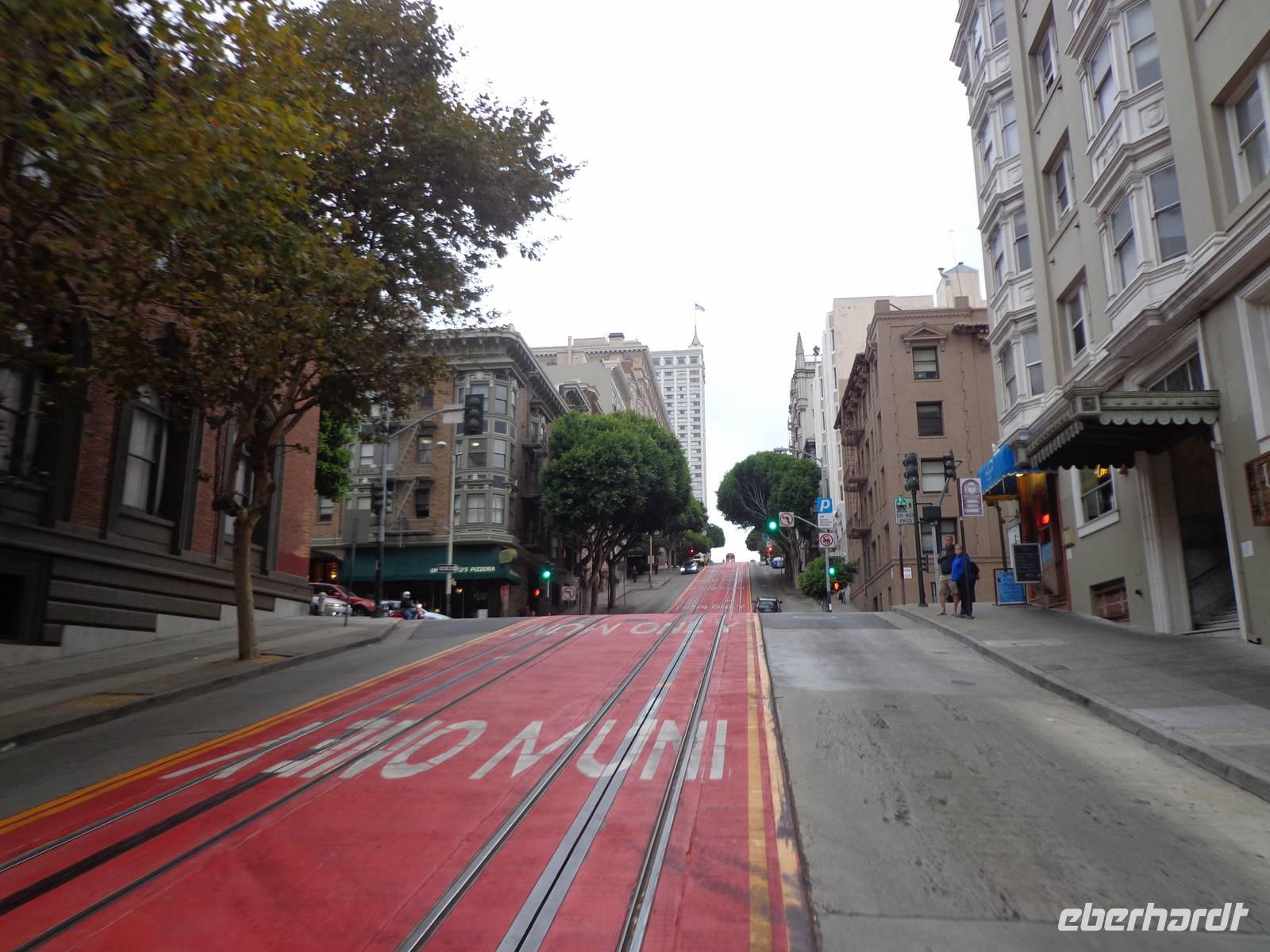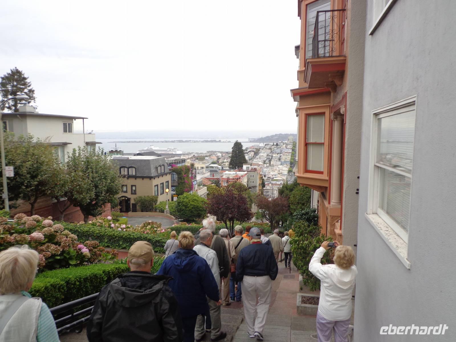 Nach dem Frühstück starteten wir unser Abenteuer mit einer Fahrt in der Cable Car. Es war sehr lustig mit der Bahn den Hügel hoch und unter zu fahren und dabei die verschiedenen Viertel der Stadt, wie zum Beispiel China Town, Russian Hill und Union Square, kennen zu lernen.