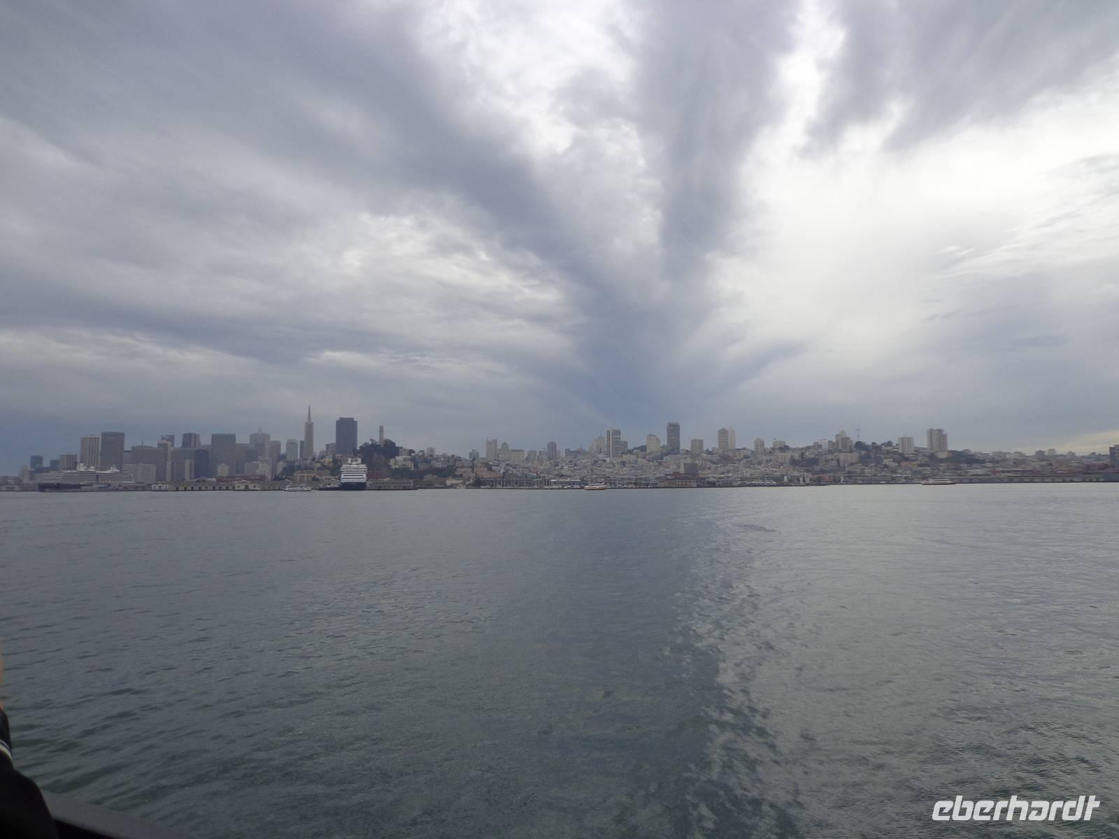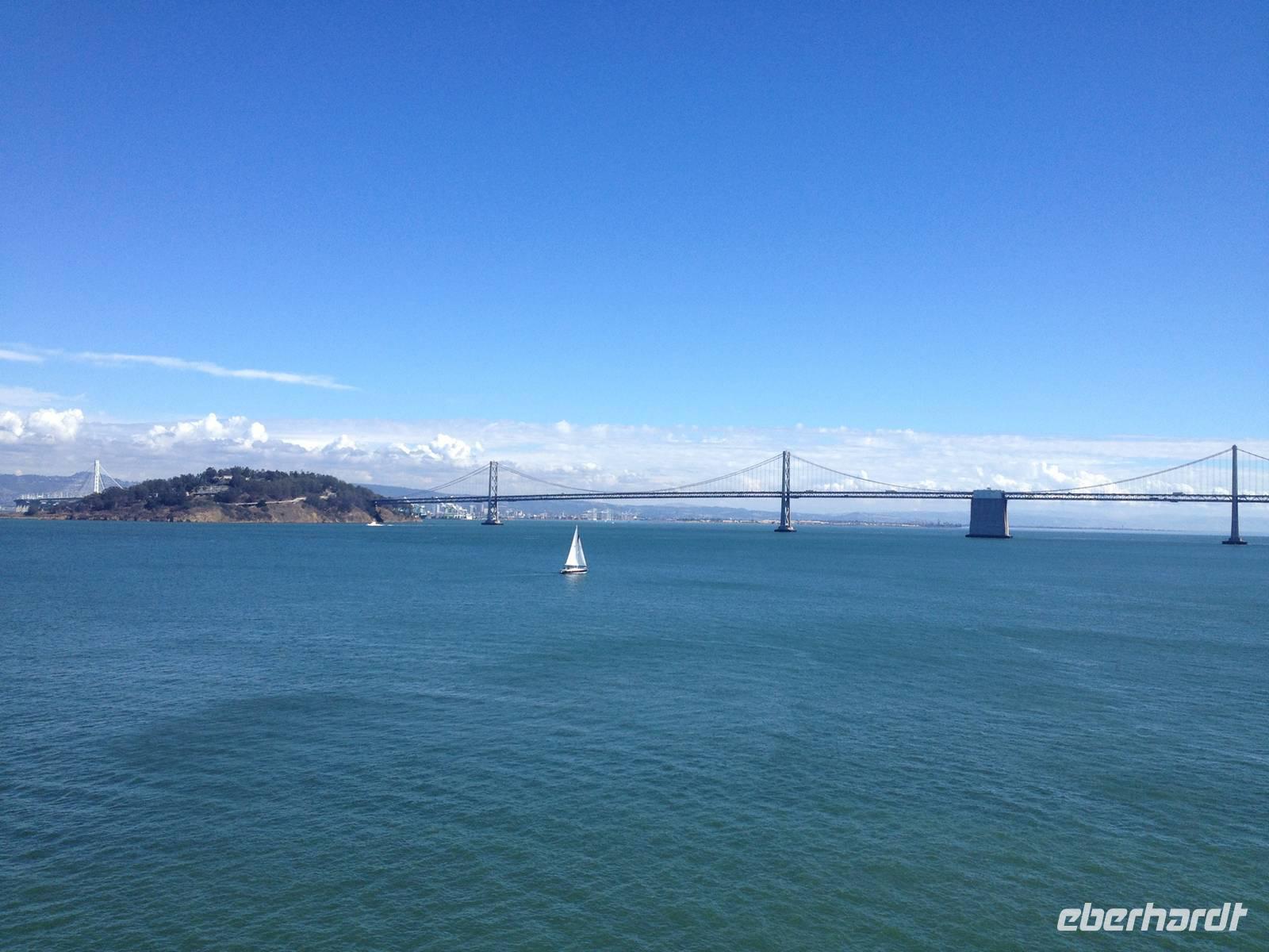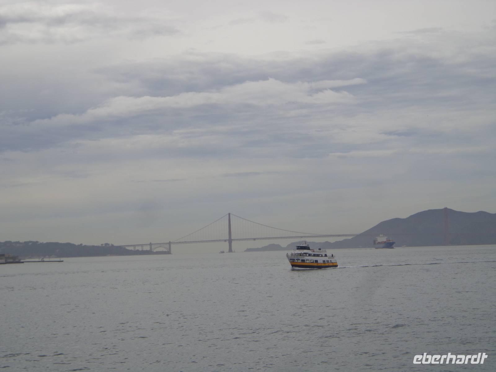 Gegen Ende der Stadtrundfahrt sahen wir noch die Bay Bridge und stiegen schließlich am Pier 39 aus, um zu Mittag zu essen. Danach liefen wir zum Pier 33, um mit dem Schiff nach Alcatraz zu fahren.