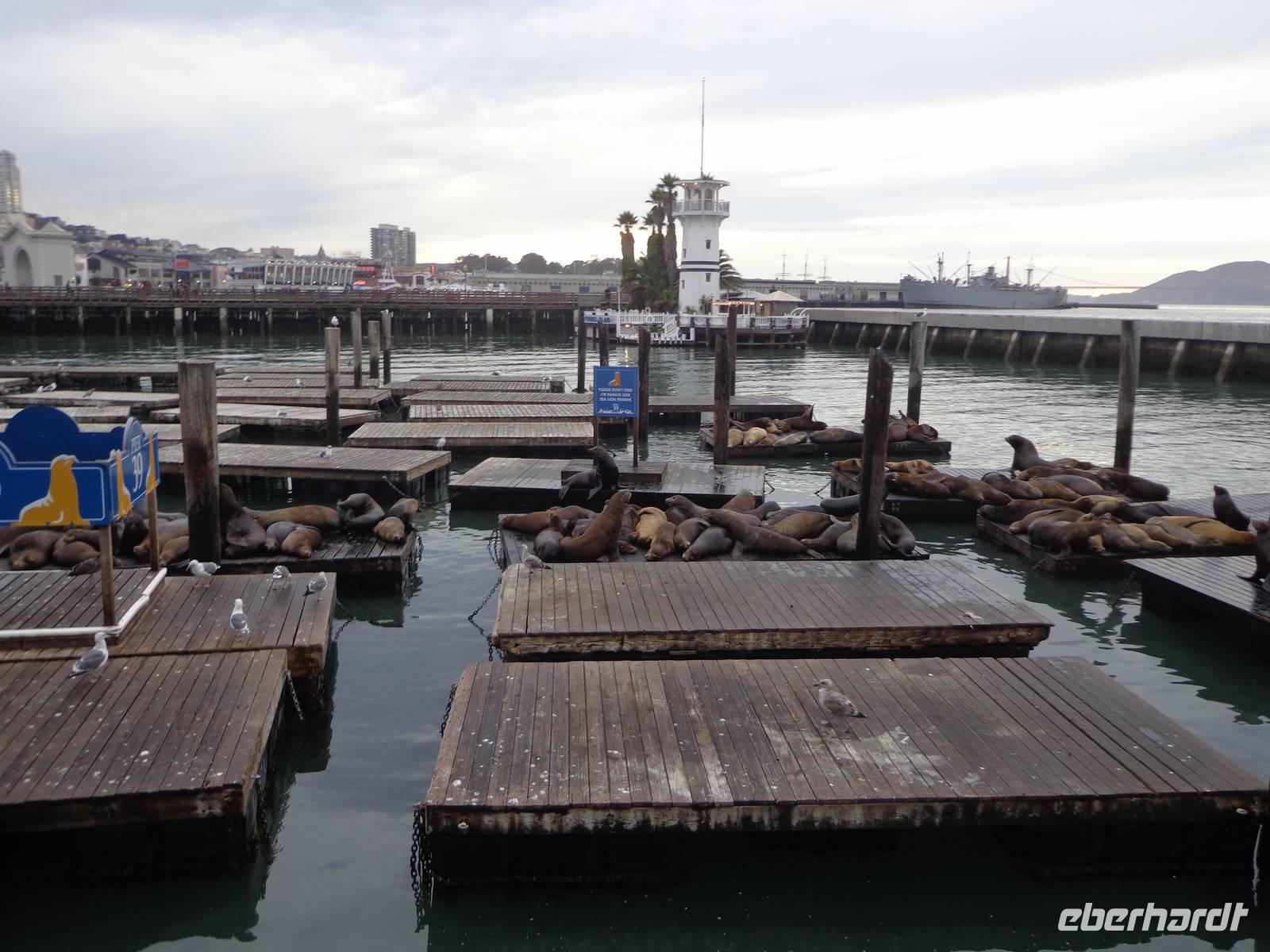 Zurück in San Francisco, haben wir im Restaurant Hana Zen gegessen, wo wir ein typisches amerikanisches Steak, Thunfisch oder Lachs probieren konnten. Alles mit schönem Ausblick auf den Bucht und neben uns unsere Kollegen die Seelöwen.