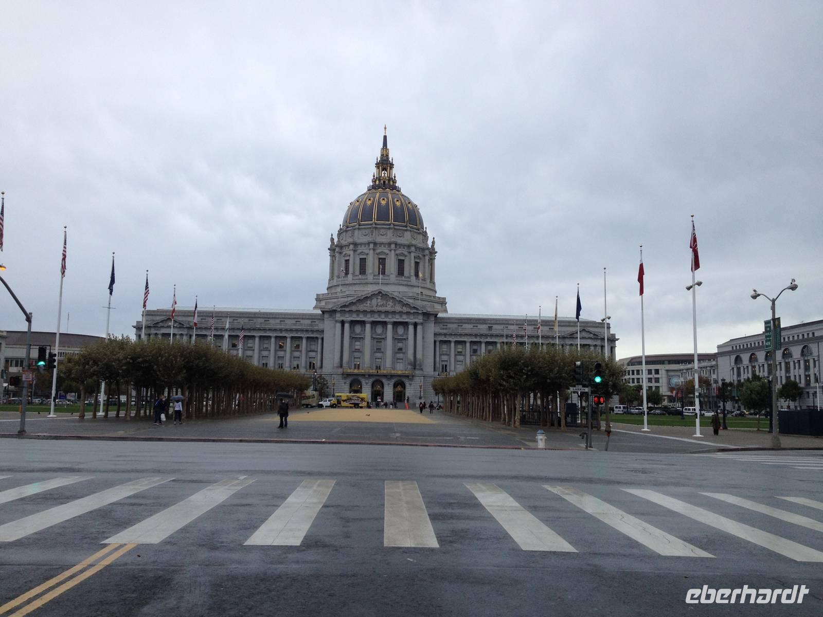 An der Lombard Street ausgestiegen, liefen wir auf den Hügel neben der bekannten "Crookedest Street". Anschließend stiegen wir in unseren Bus und machten eine kleine Stadtrundfahrt, die uns als erstes durch die Van Ness Avenue bis zum Civic Center führte. Dort machten wir zum ersten Mal Halt. Von da aus konnte man das Rathaus, das Chinesische Museum und das Theater und die Oper erblicken.