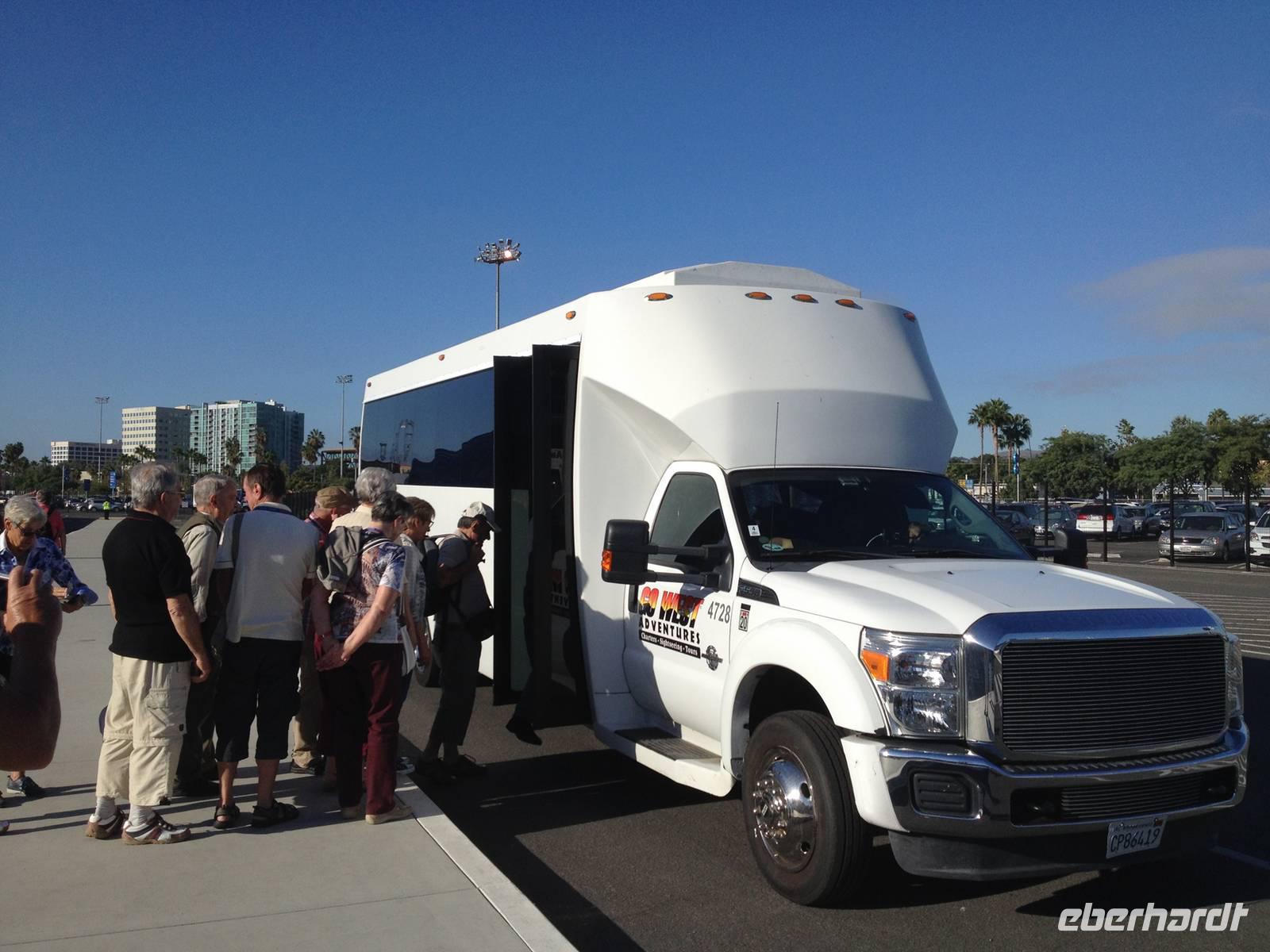 Uns erwartete ein schöner Tag mit besten Temperaturen in Los Angeles! Ausgestiegen am Hafen trafen wir uns mit unserer lustigen Reiseleiterin Verena.