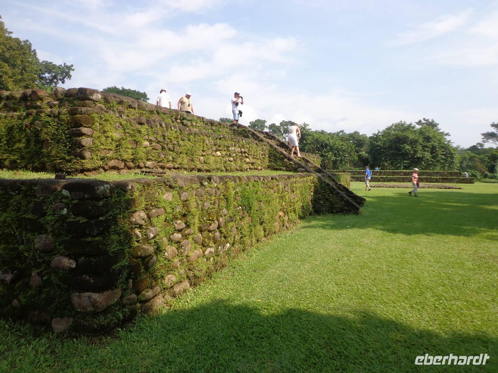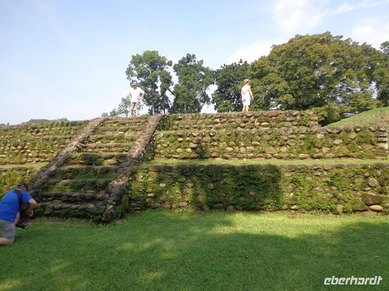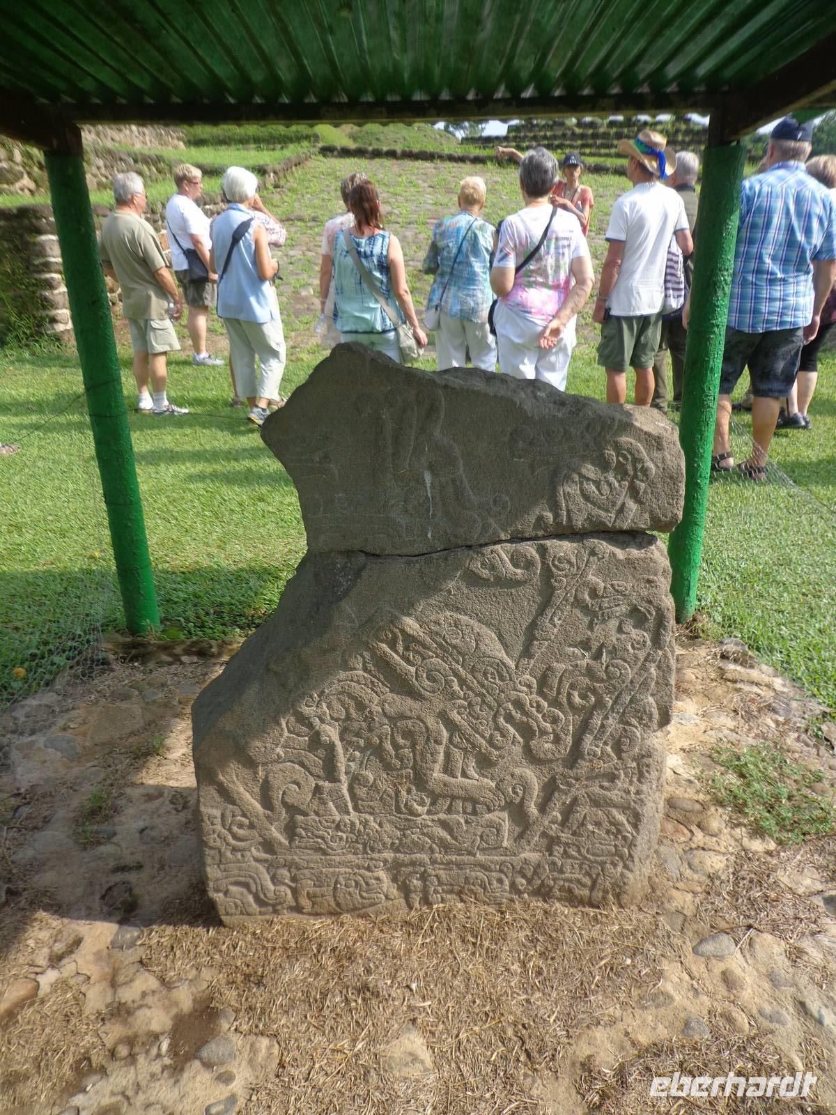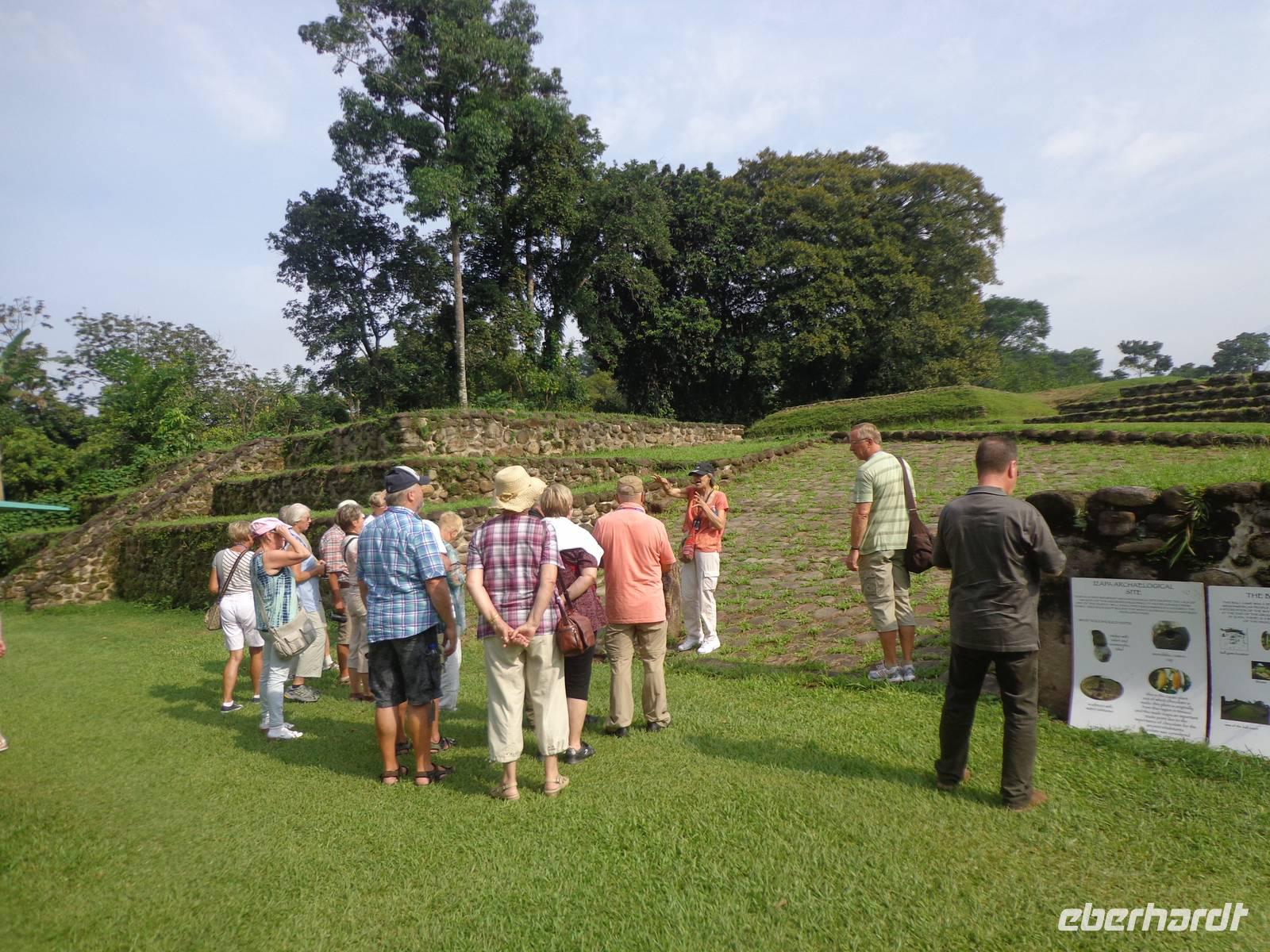 Auf dem Weg zu den Ruinen von Izapa, erzählte uns Rosalia viel Wissenswertes über die hiesige Industrie Nestle, Plantagen von Kakao, Mango, Mais und Zückerrohr und über die Geschichte Olmeyas, Mayas und Mocayas, dessen Traditionen und Kulturen noch heute an die damaligen Zeiten erinnern.