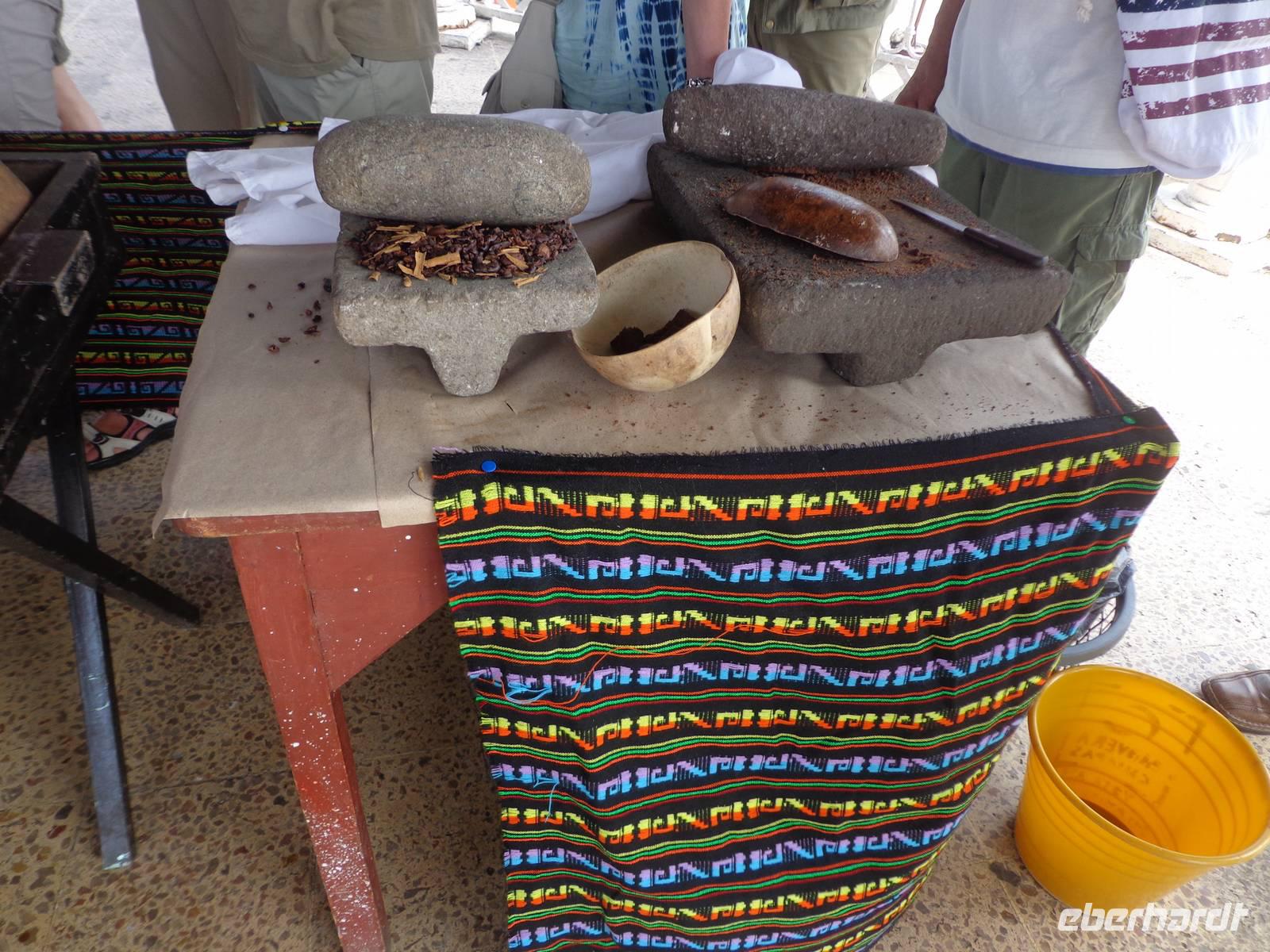 Nach einer Führung durch diesen Garten, haben wir die typischen Tortillas gegessen und Wasser von der Jamaica Blume getrunken.