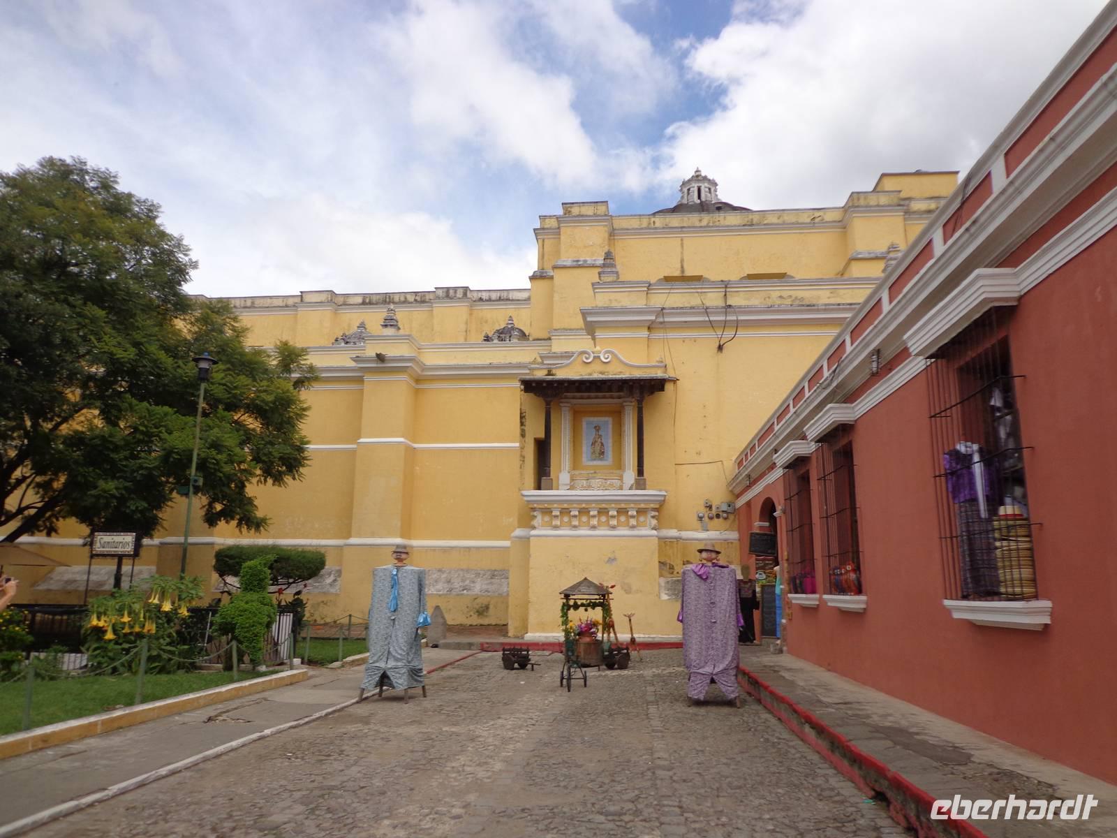 In Antigua angekommen, besuchten wir die Kirche La Merced. Wir liefen durch die Straßen Antiguas und bewunderten die verschiedenen Gebäude mit Kolonialkunst und schönen Innenhöfen. Wir besichtigten die Kathedrale und besuchten die Ruinen der ältesten Kathedrale. Im „Haus der Träume" gab es ein leckeres Mahl und kühles Bier, bis es abschließend ins Jade Museum ging.