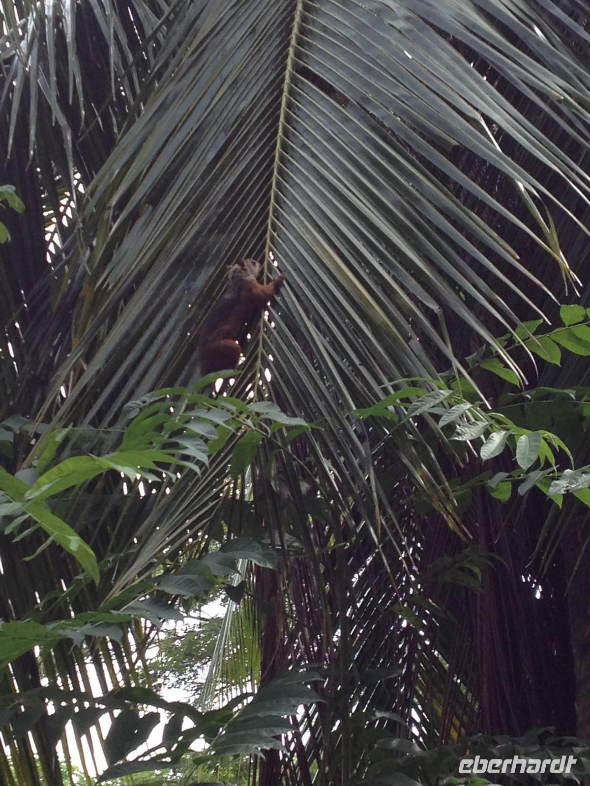 Bevor wir unsere Wanderung in den Nationalpark starteten, erfrischten wir uns mit Kokosmilch. Wir überquerten eine Brücke und sahen die Krokodile im Fluss. So startete unsere Route in den National Park: Wir sahen den Nationalbaum Guanacaste, verschiedene Arten von Physcus, viele einheimische Bäume, Vögel wie zum Beispiel Kolibris, Trogon und Aras. Leider konnten wir nicht alle 114 verschiedene Arten sehen, aber 10 waren es mindestens. Außerdem sahen wir Klammeraffen, die normalerweise sehr schwer zu finden sind und unterschliedliche Ameisenkolonien und Frösche.