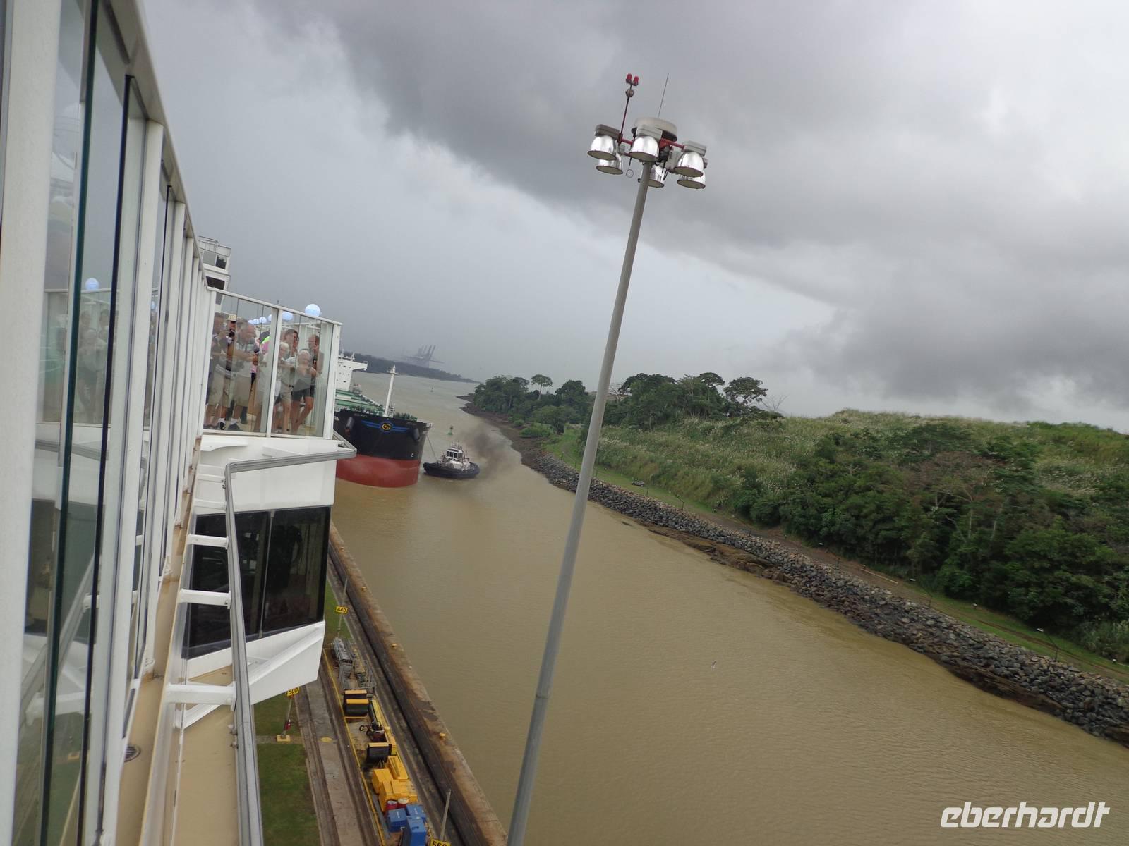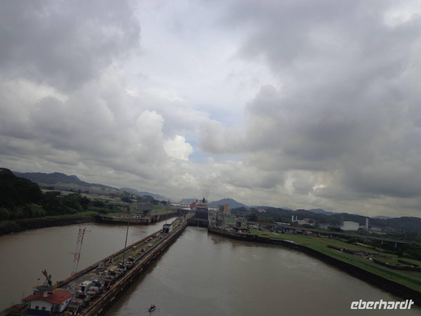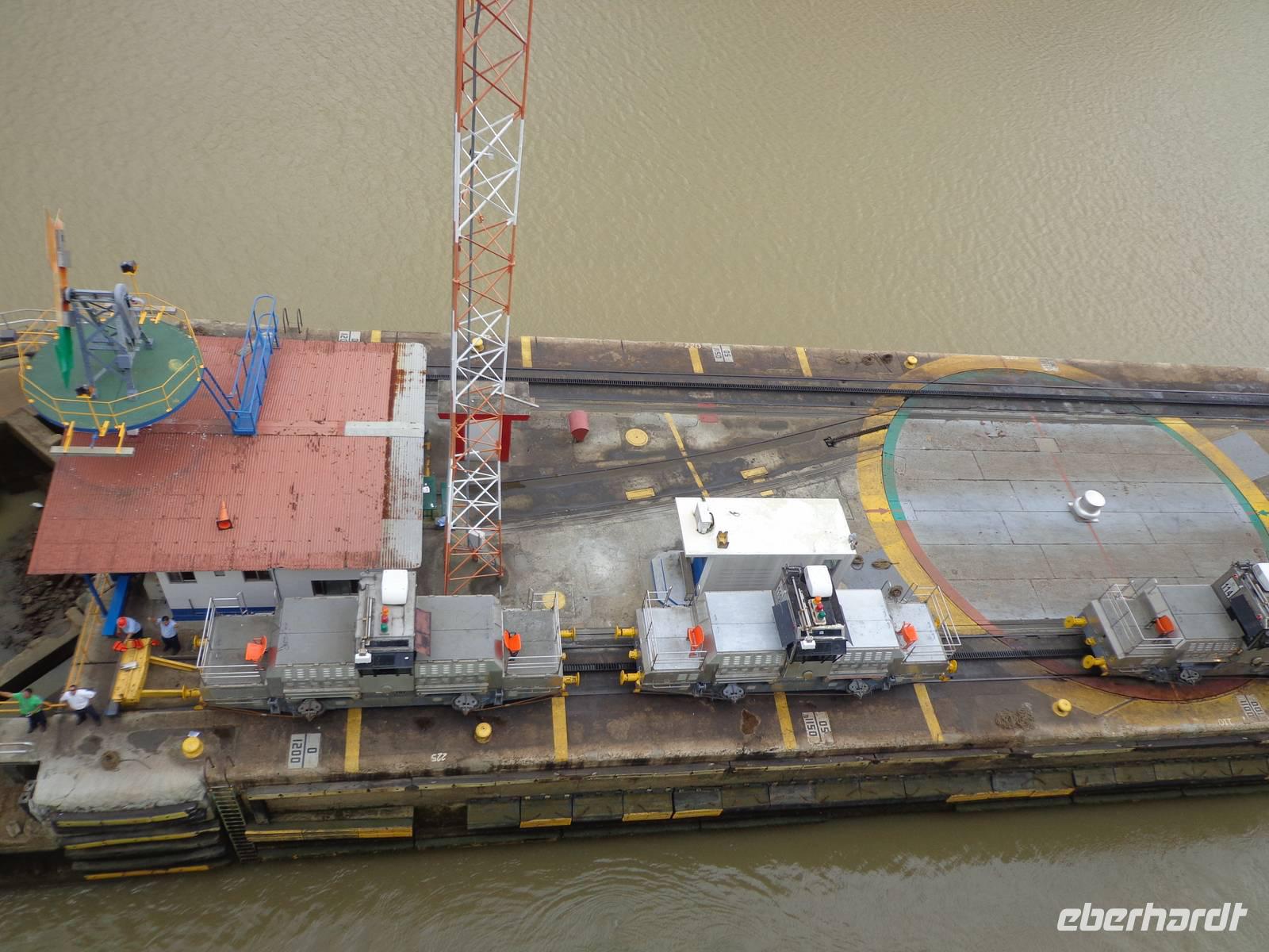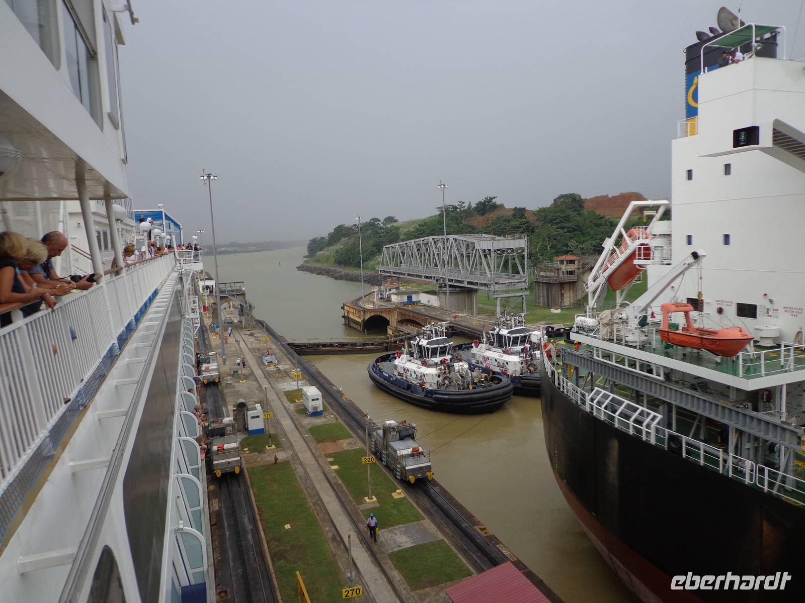 In jedem Schleusenabschnitt bekamen wir Hilfe von 8 Lokomotoren, da unser Schiff sehr groß war und die Tore relativ eng.