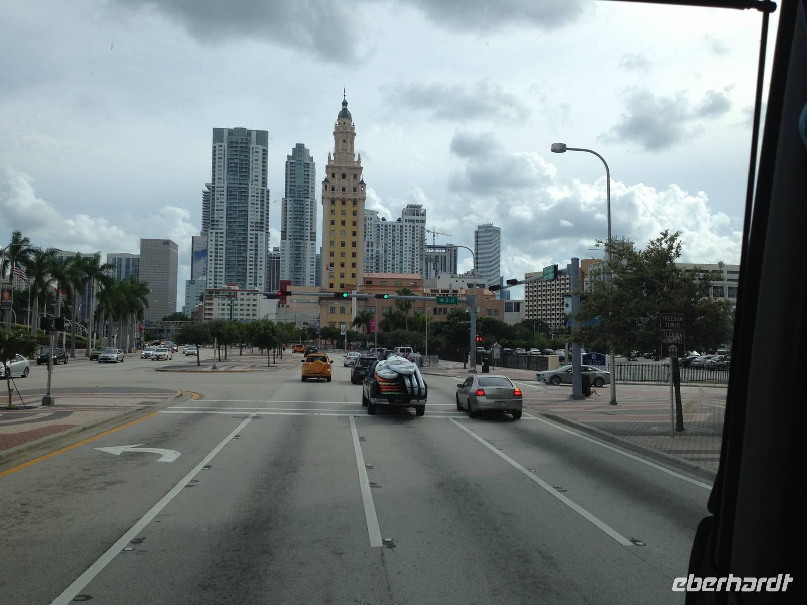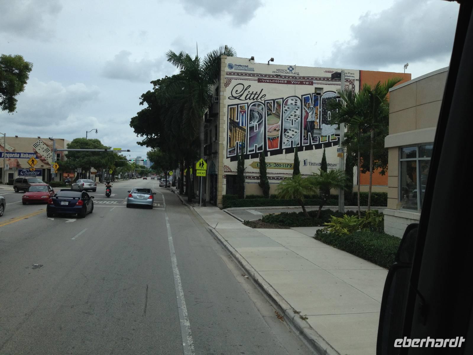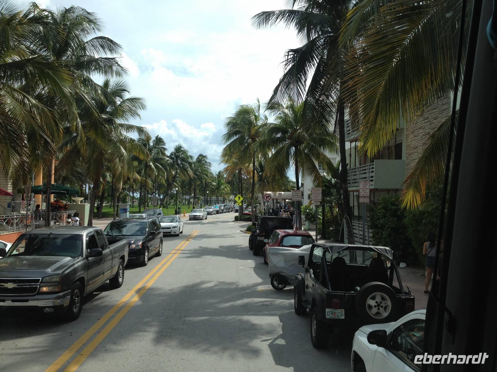 Zurück in Miami machten wir eine kleine Mittagspause, bis es dann weiter ging: wir fuhren durch die Collins Avenue, der Hauptstraße neben der Strandpromenade zum Ocean Drive und sahen das Art Deco Viertel mit seinen wunderschönen Hotels. Weiter geht es entlang am Meer an der Straße US 1, die nach New York und Kanada führt. Als nächstes fuhren wir durch das Finanz- Viertel, Brickell Avenue genannt, und kamen anschließend in ein schönes Viertel mit teuren Autos und Häusern. Danach fuhren wir durch die Calle 8, das kleine Havanna, wo wir viele kubanische Restaurants sahen und Gärten, wo Leute Domino spielten, Tabak rauchten oder Kaffee tranken.